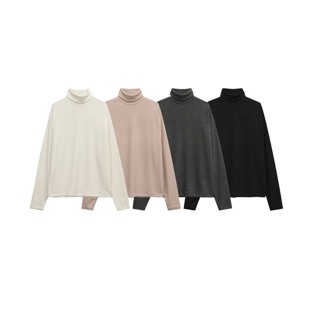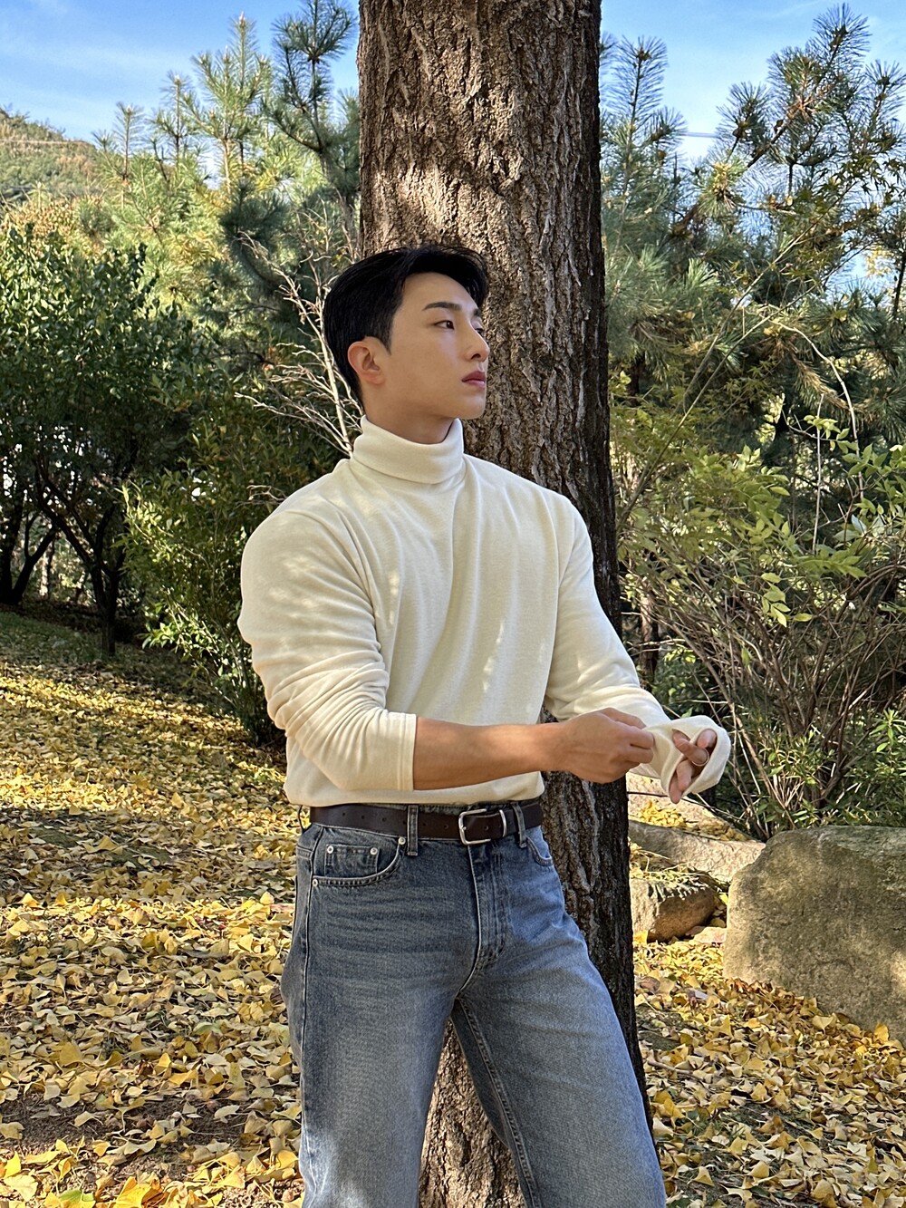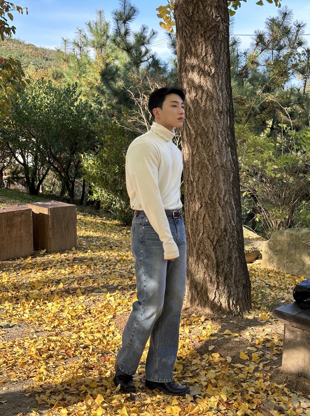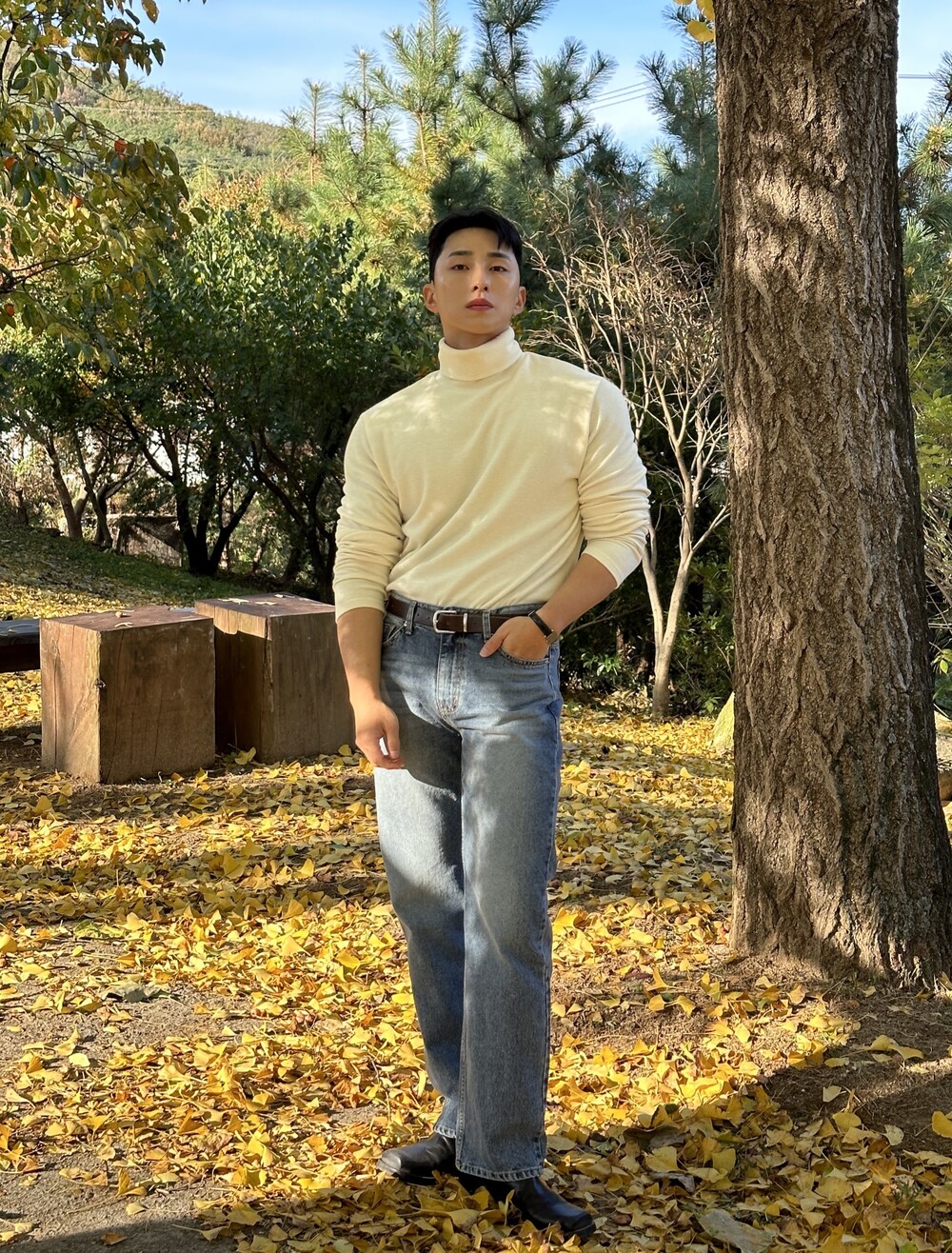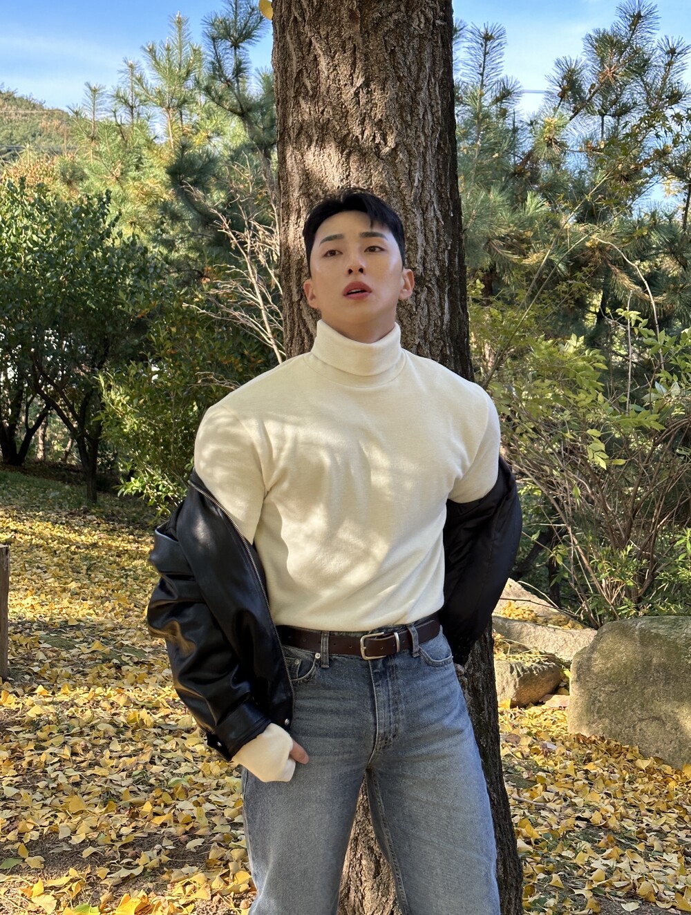 -긴 목폴라로 주름 잡히게 연출하여 캐쥬얼한 무드를, 반으로 접어 연출하여 포멀한 무드를