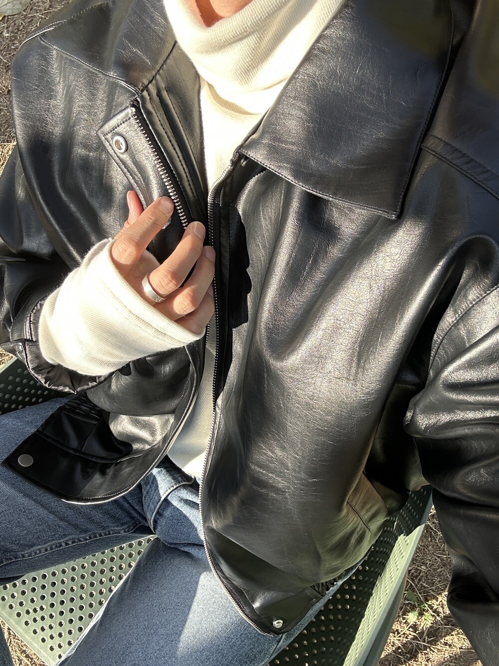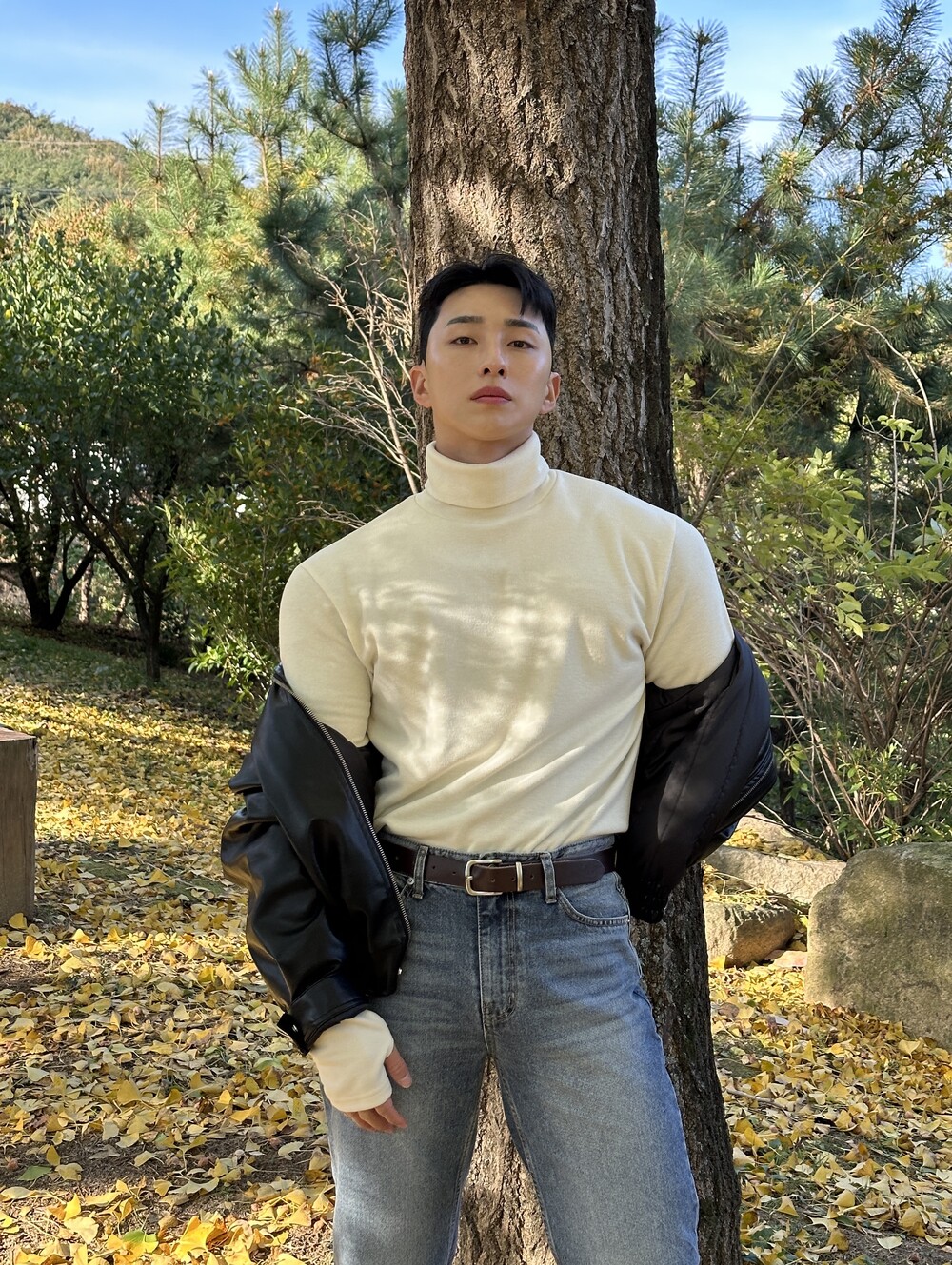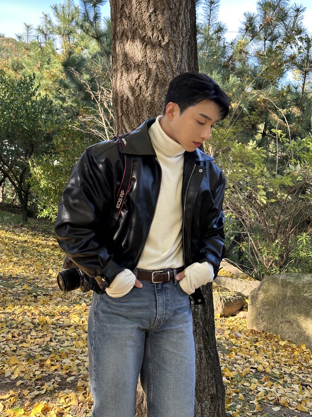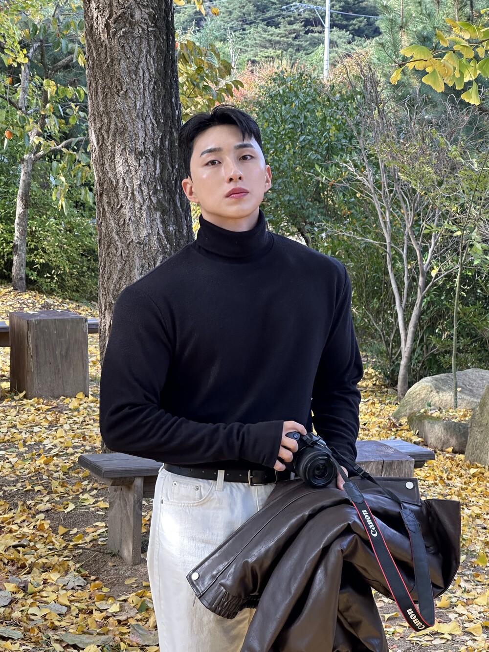 -긴 목폴라로 주름 잡히게 연출하여 캐쥬얼한 무드를, 반으로 접어 연출하여 포멀한 무드를
