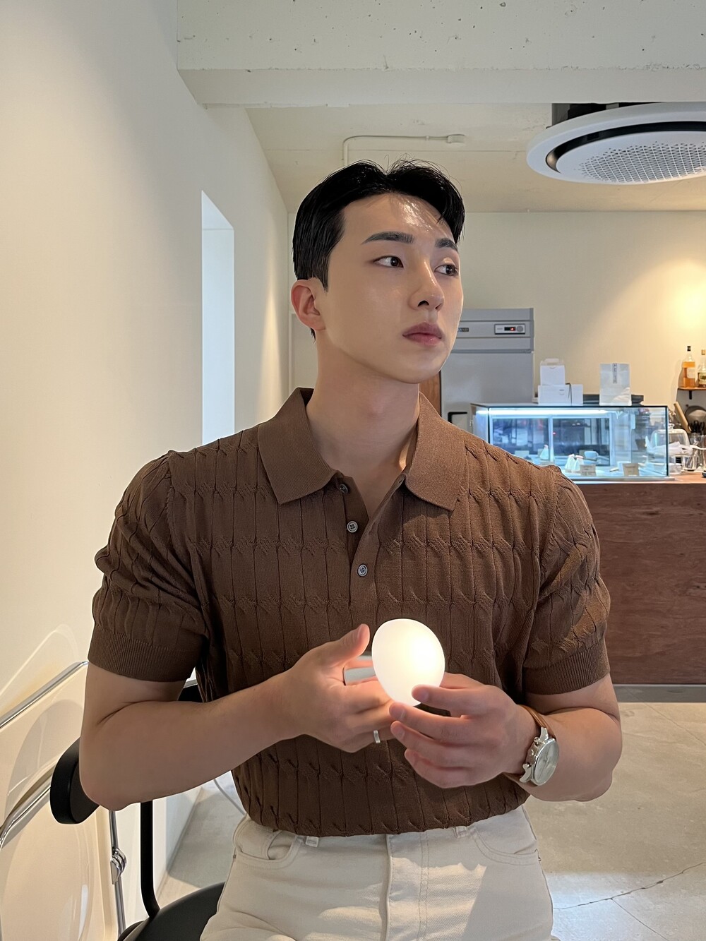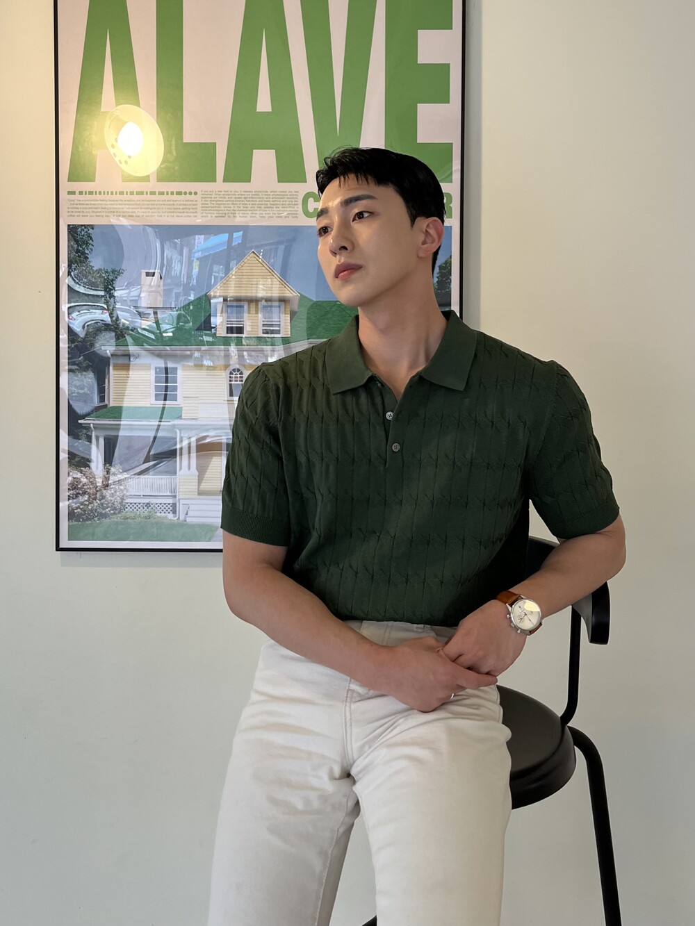 -고급 원단으로 제작된 프리미엄 니트 카라 반팔