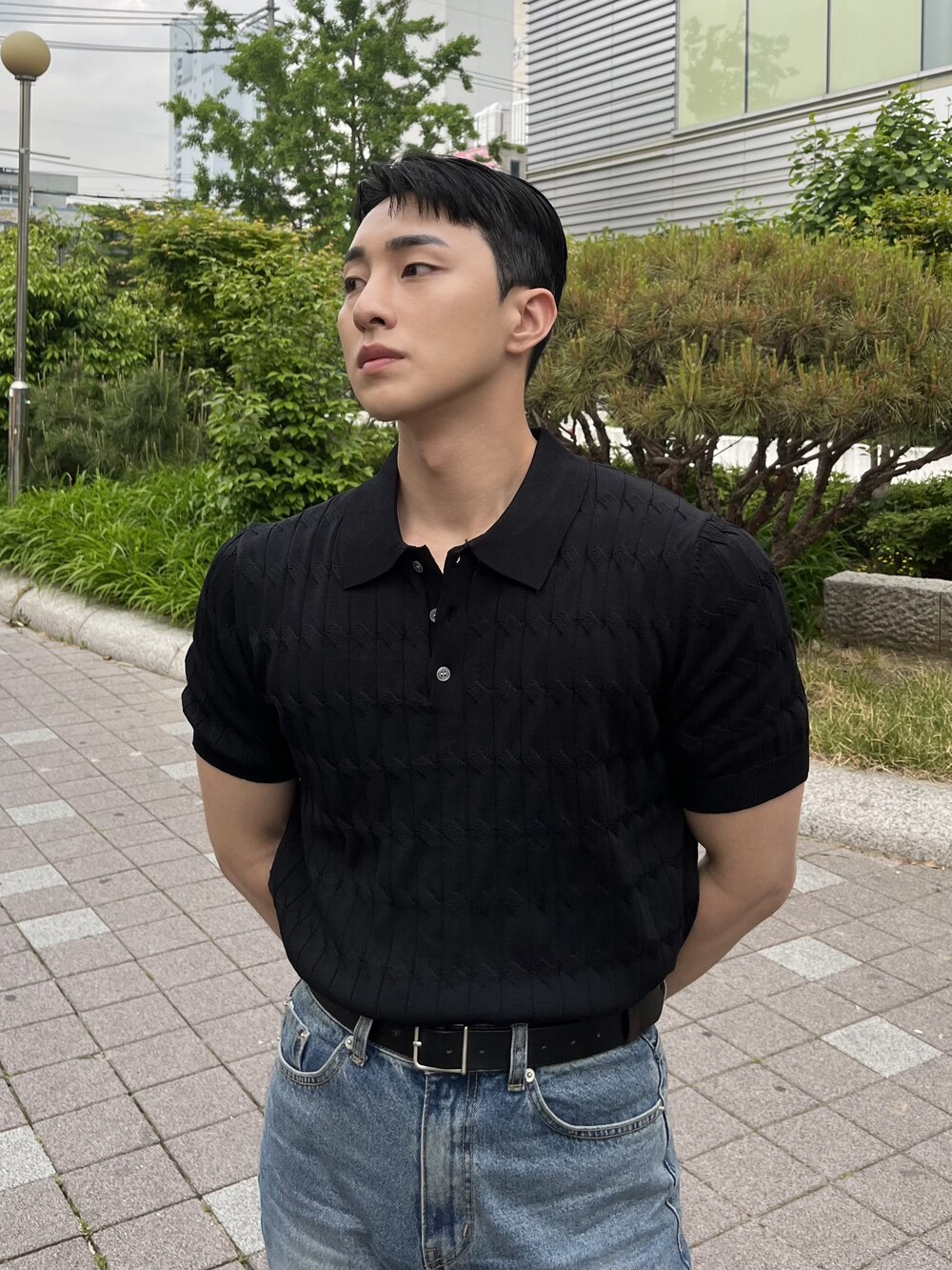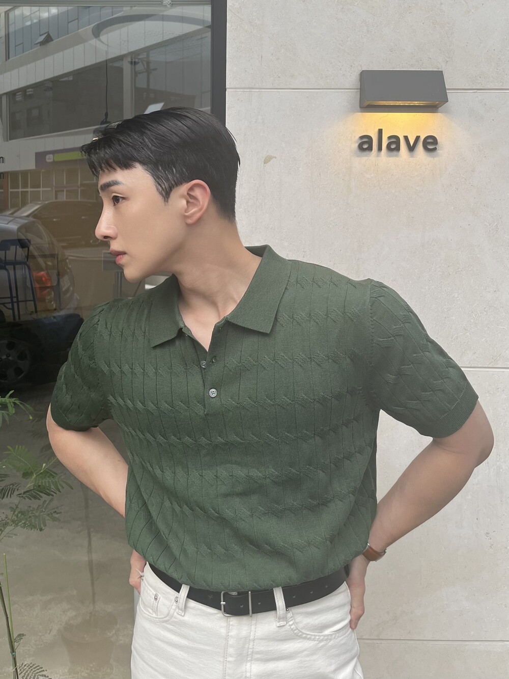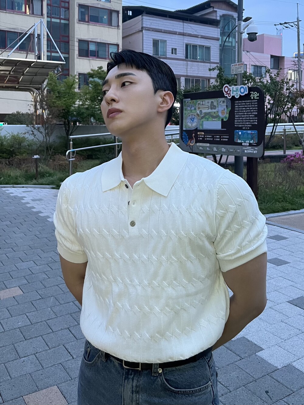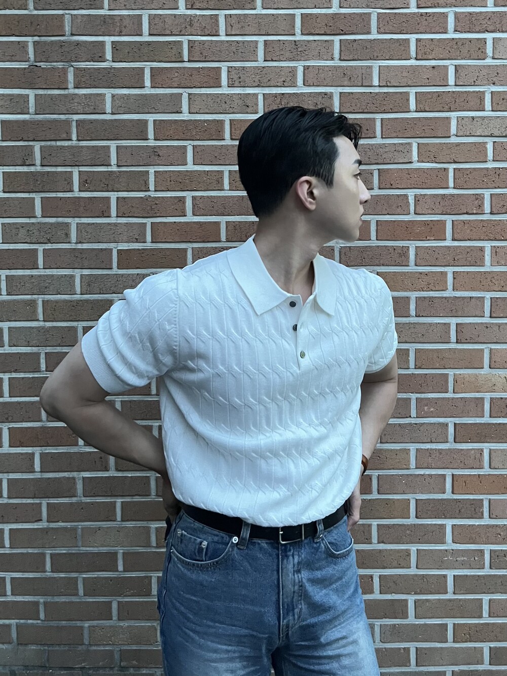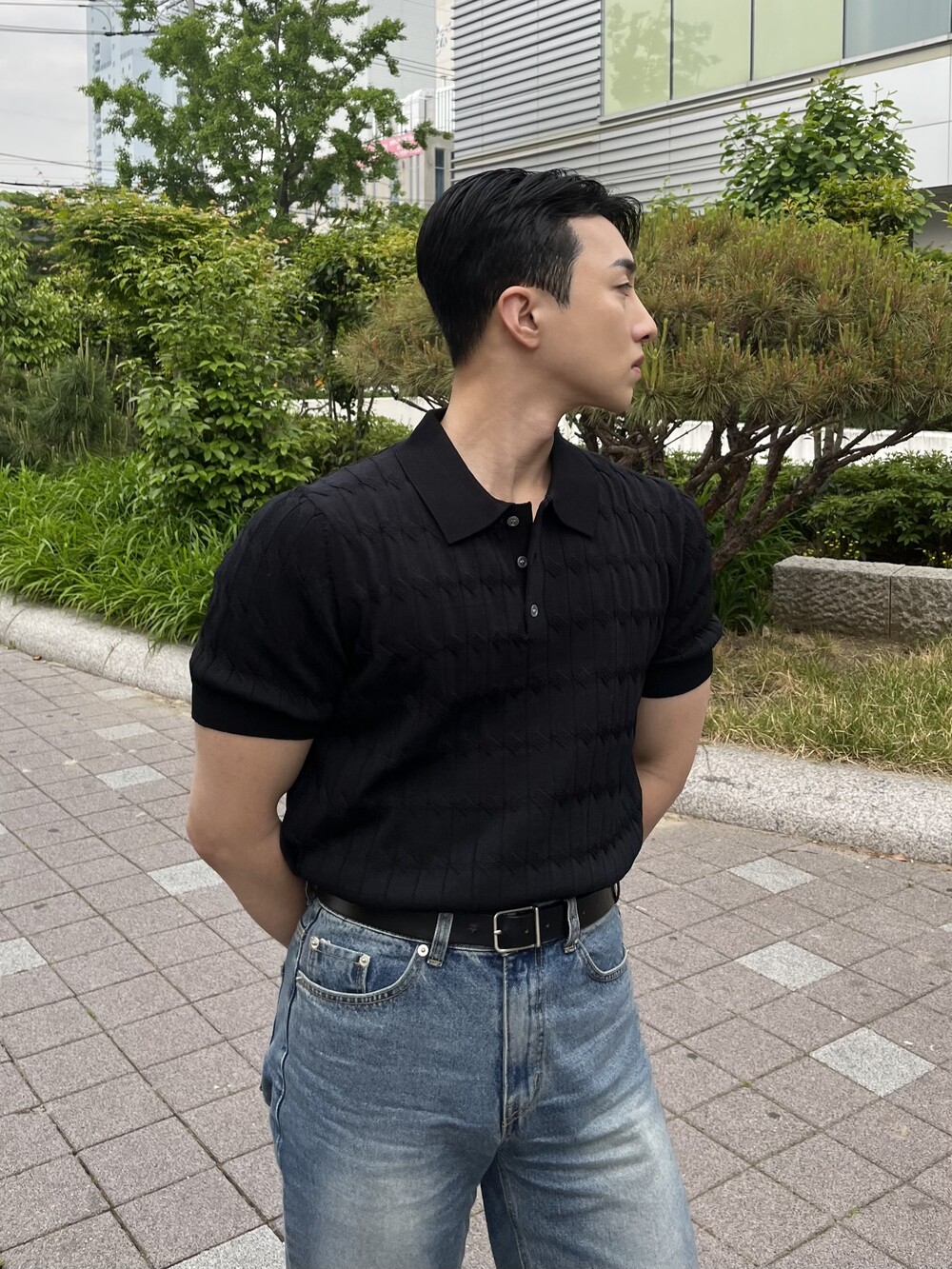 폴 케이블 니트 카라 반팔 (머슬핏)