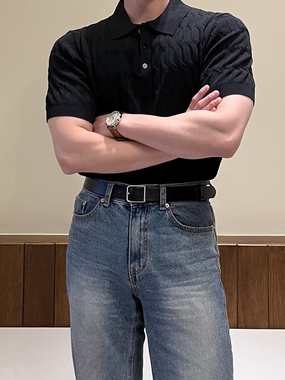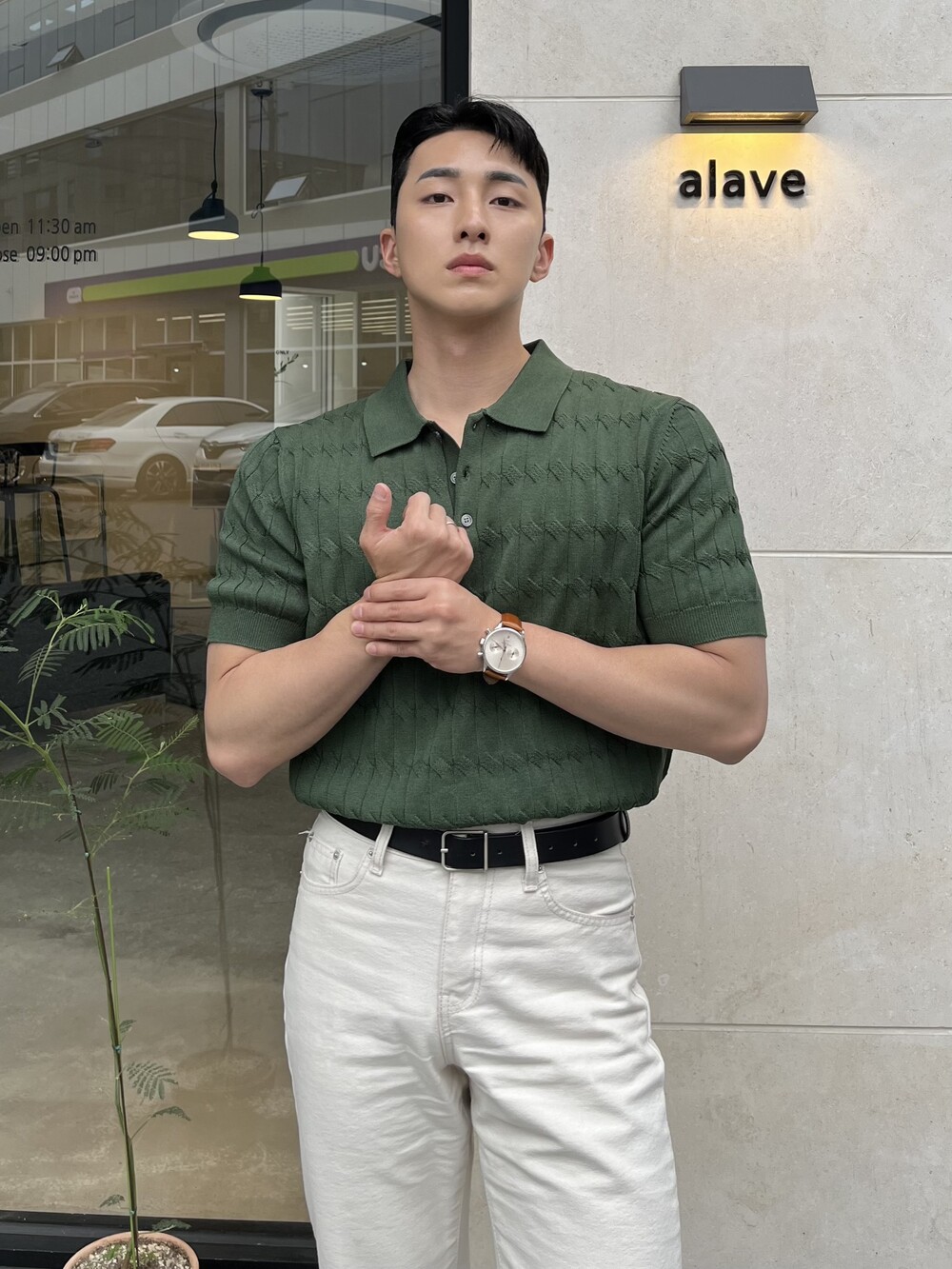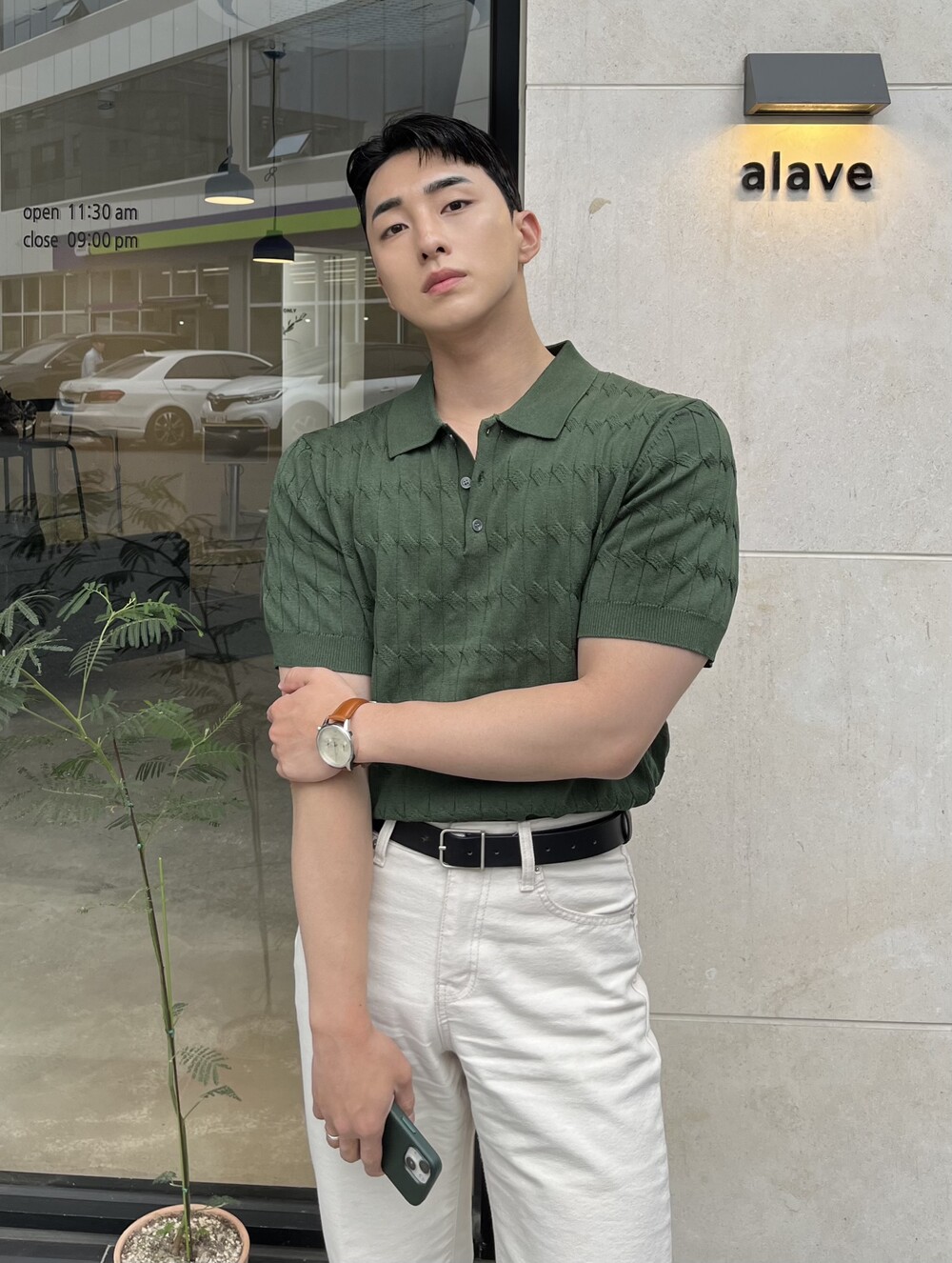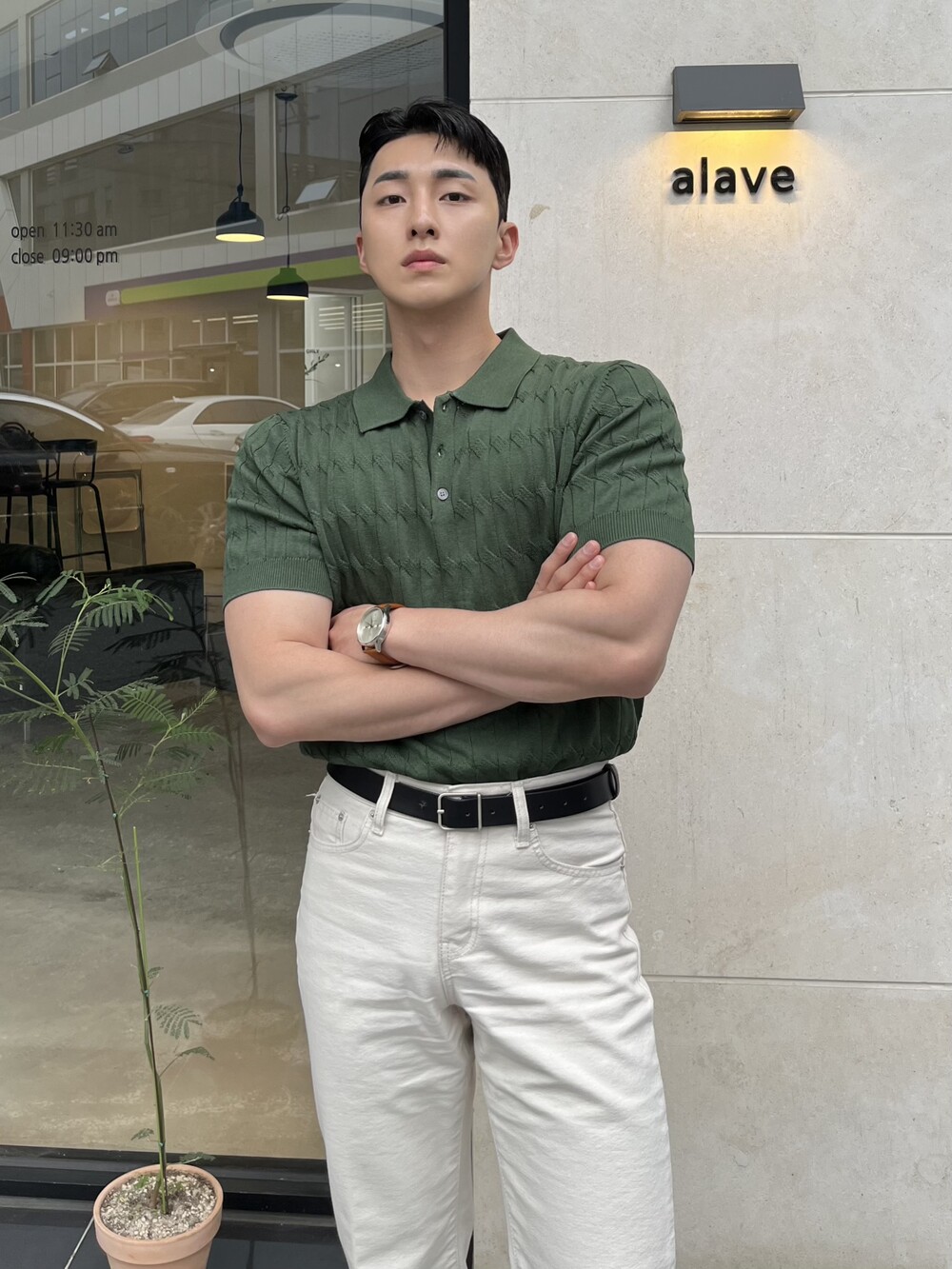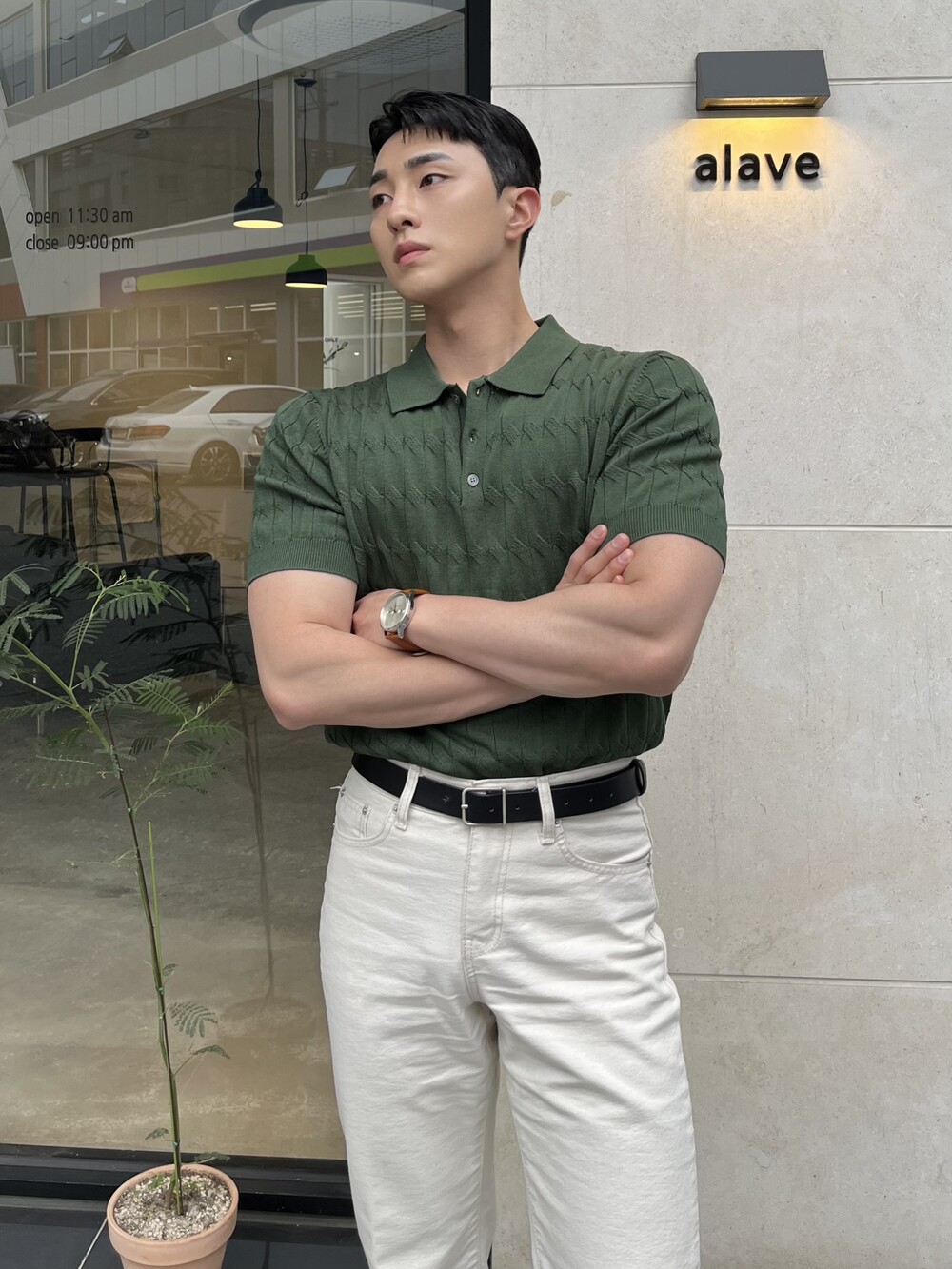 폴 케이블 니트 카라 반팔 (머슬핏)