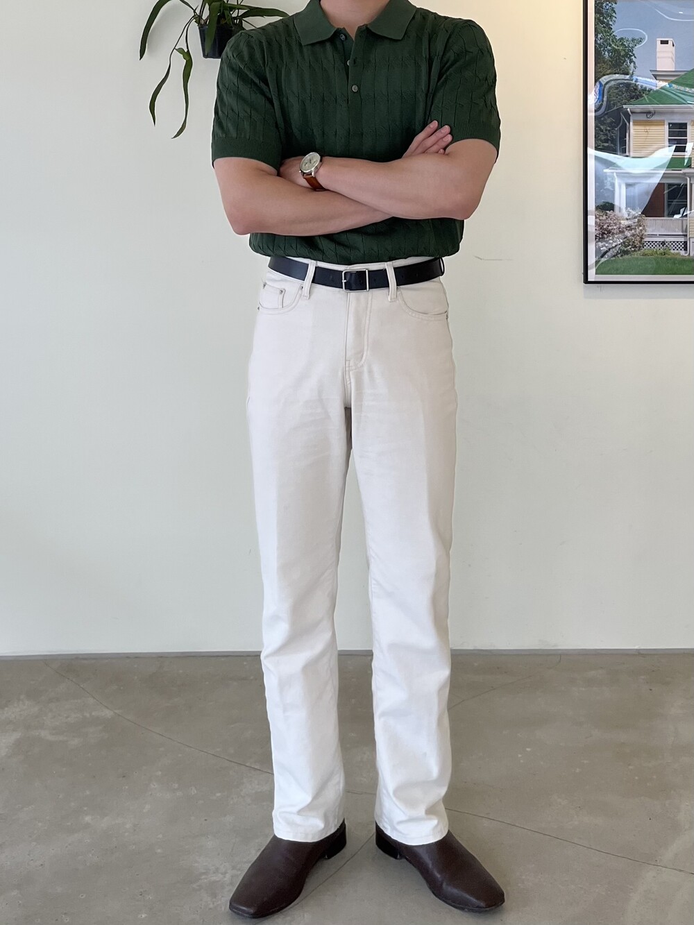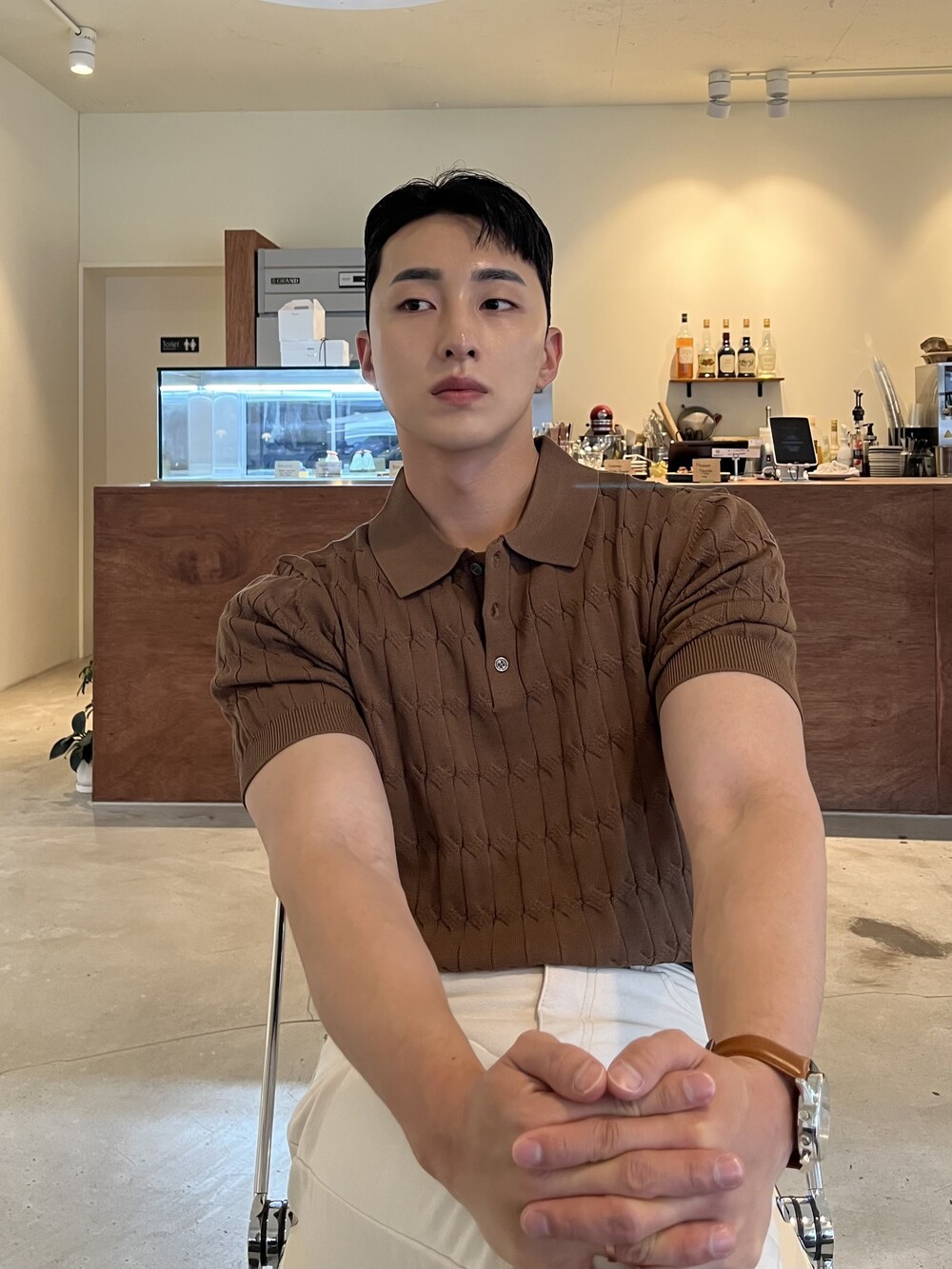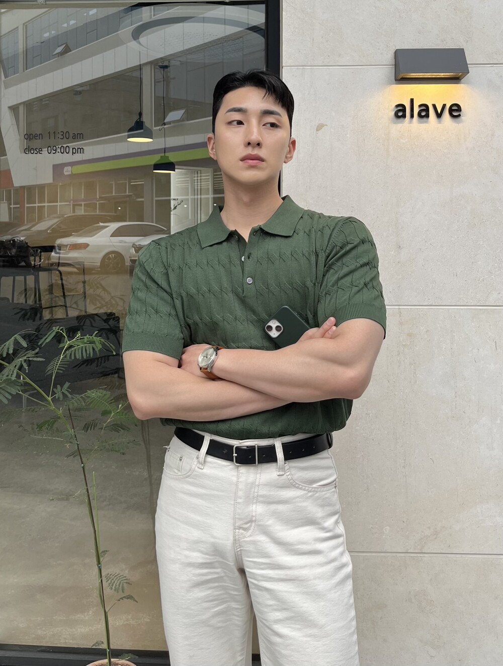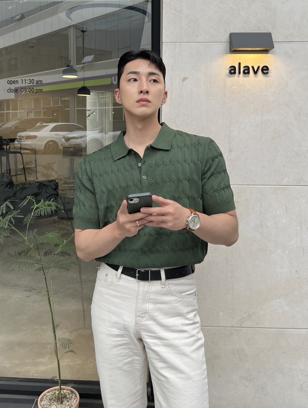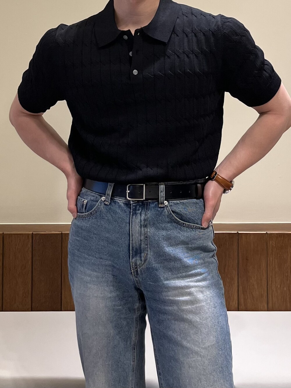 폴 케이블 니트 카라 반팔 (머슬핏)