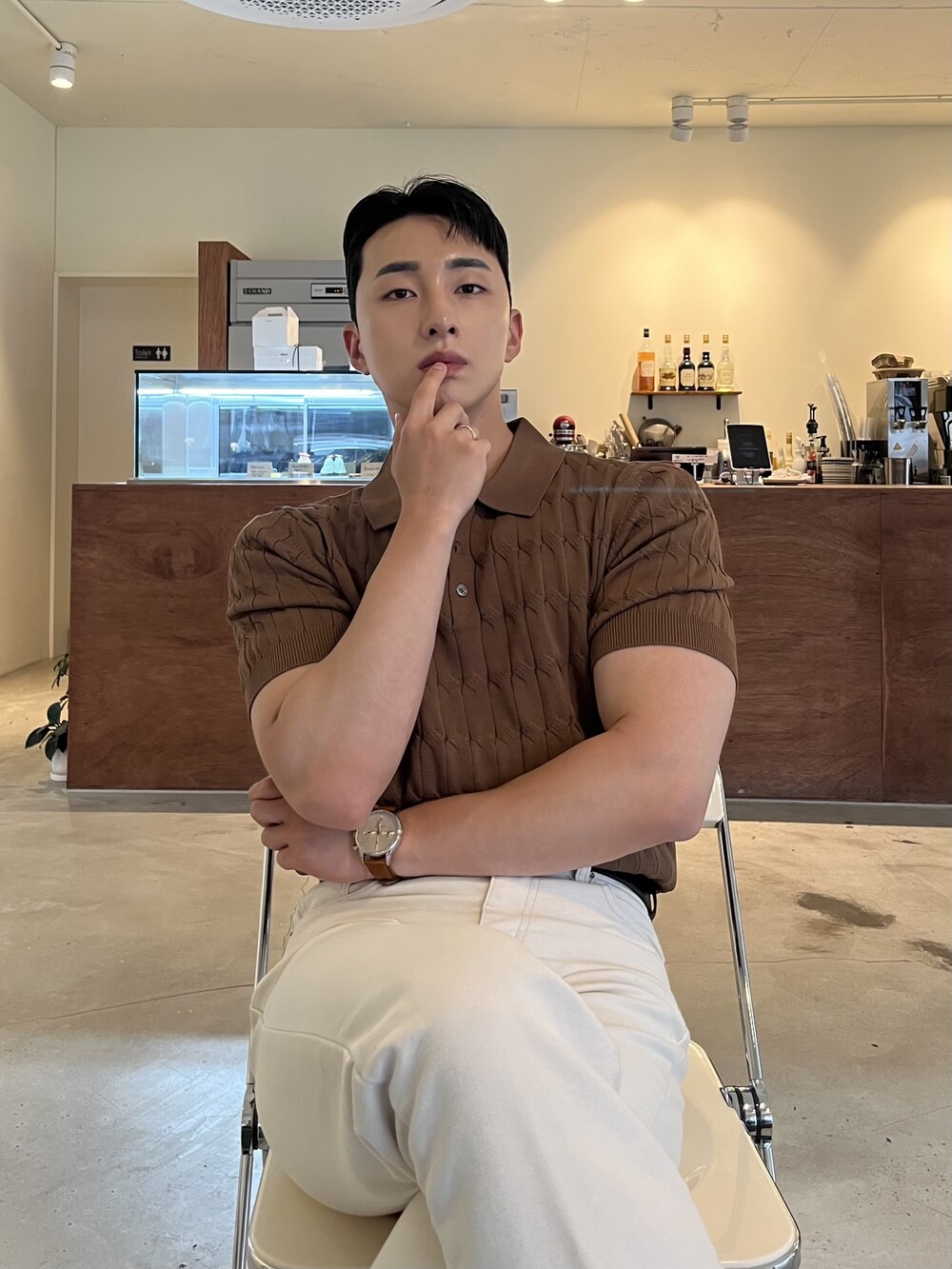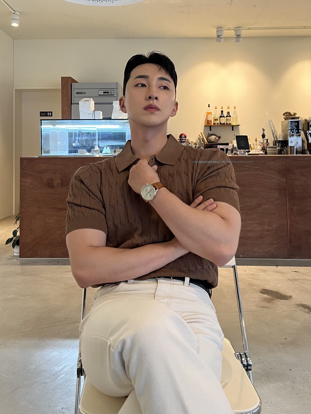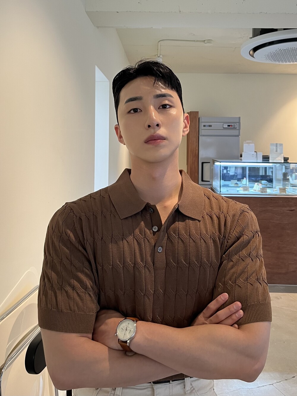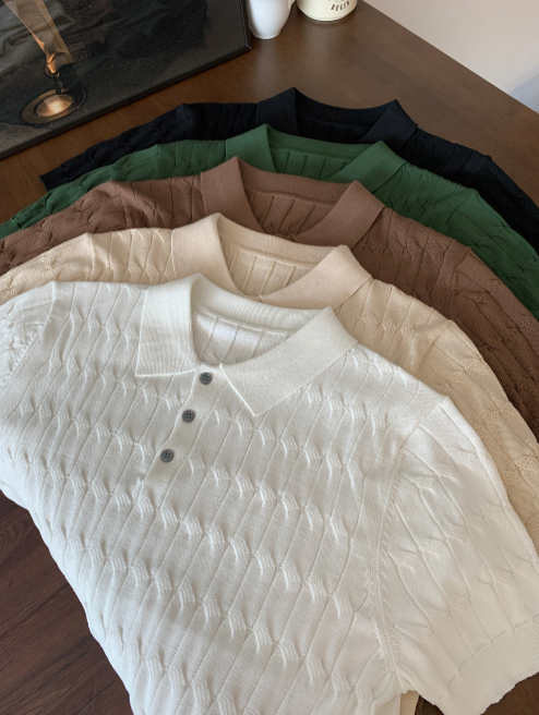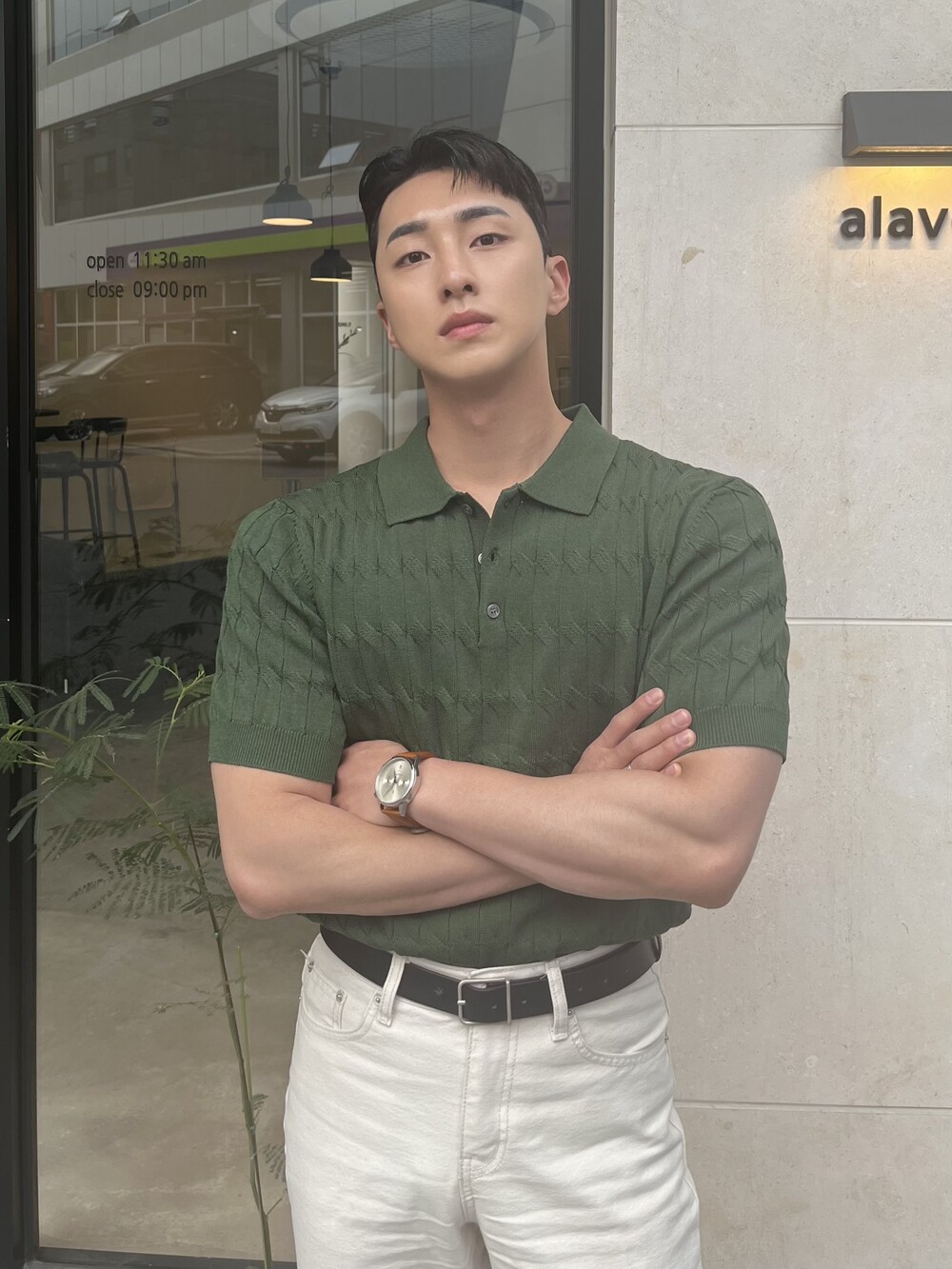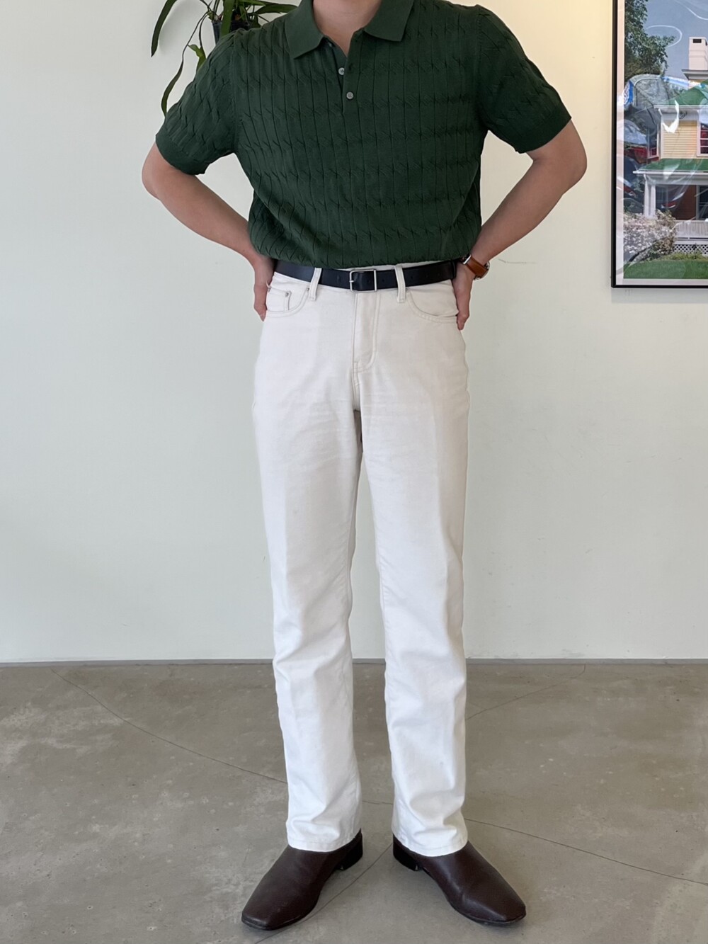 폴 케이블 니트 카라 반팔 (머슬핏)