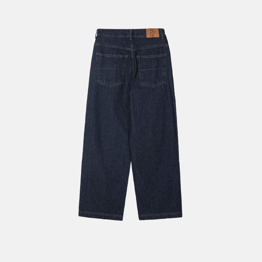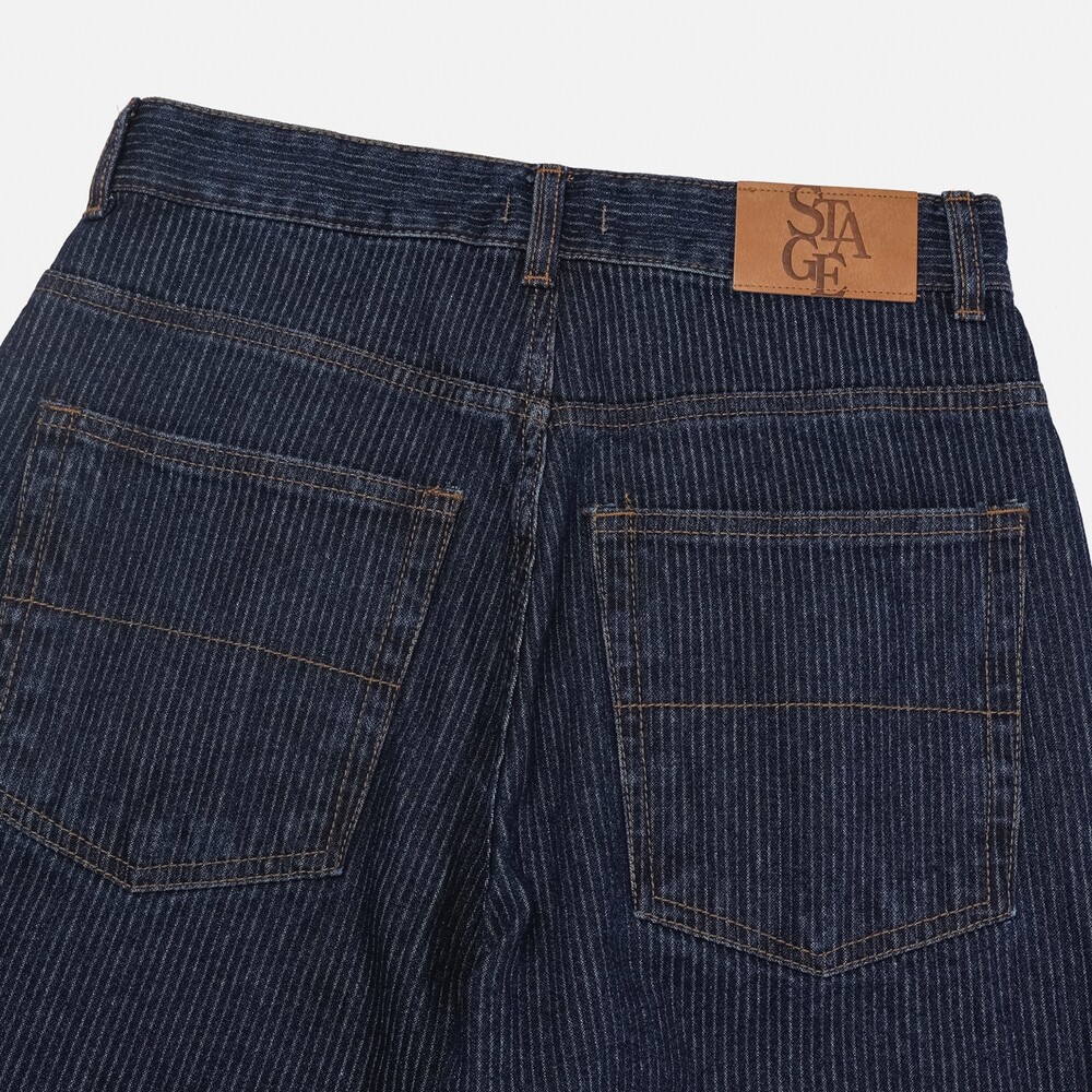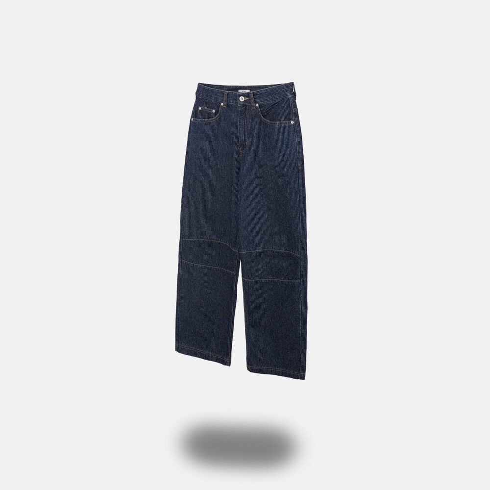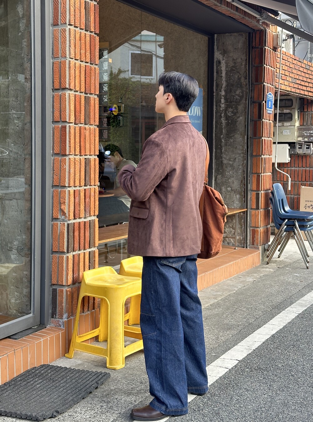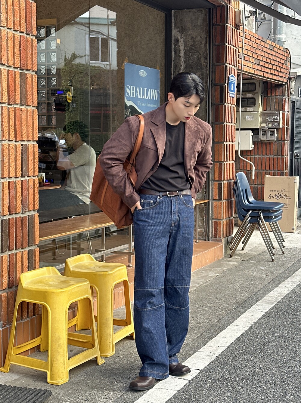 -레트로톤 진청과 진브라운 배색 스티치로 디자인 포인트