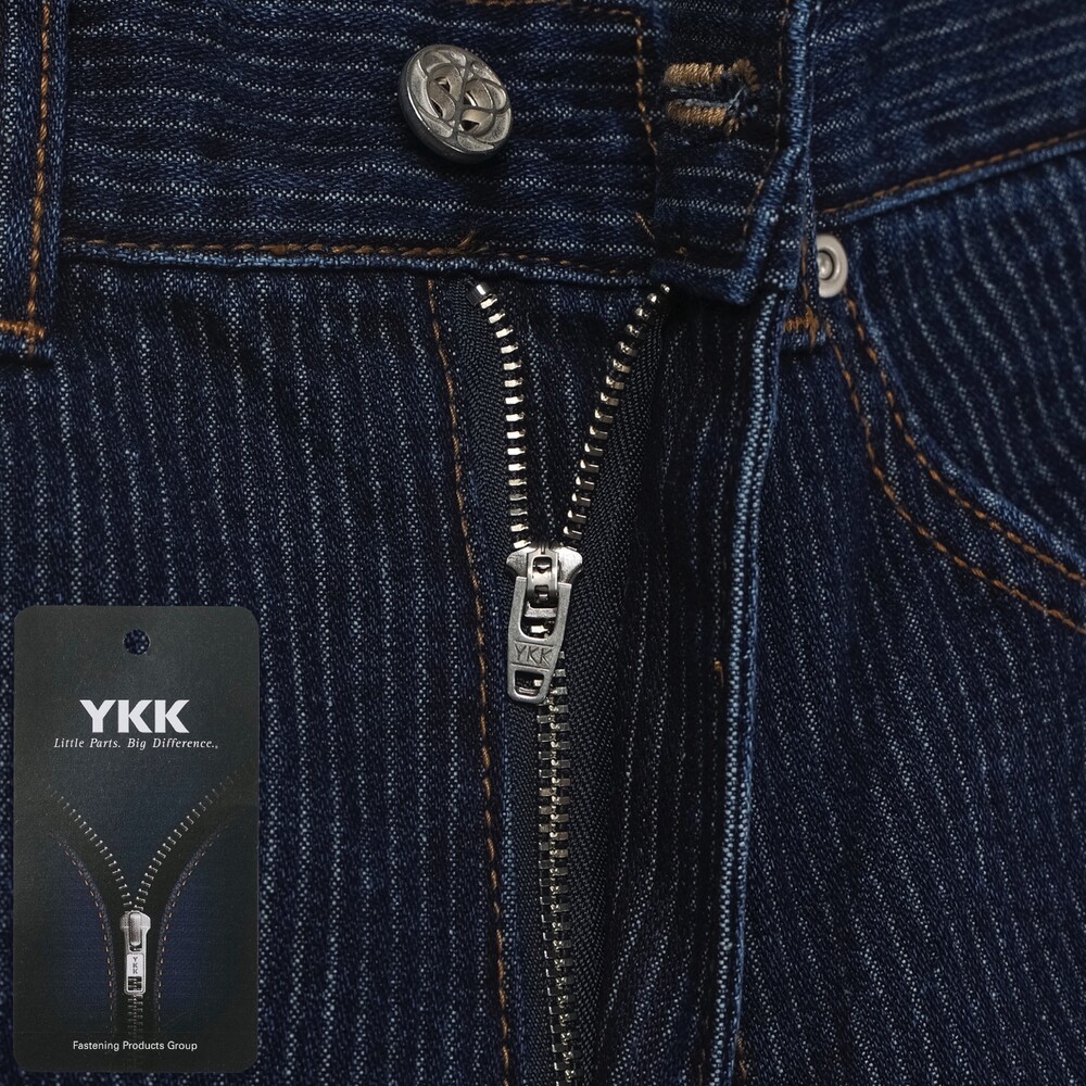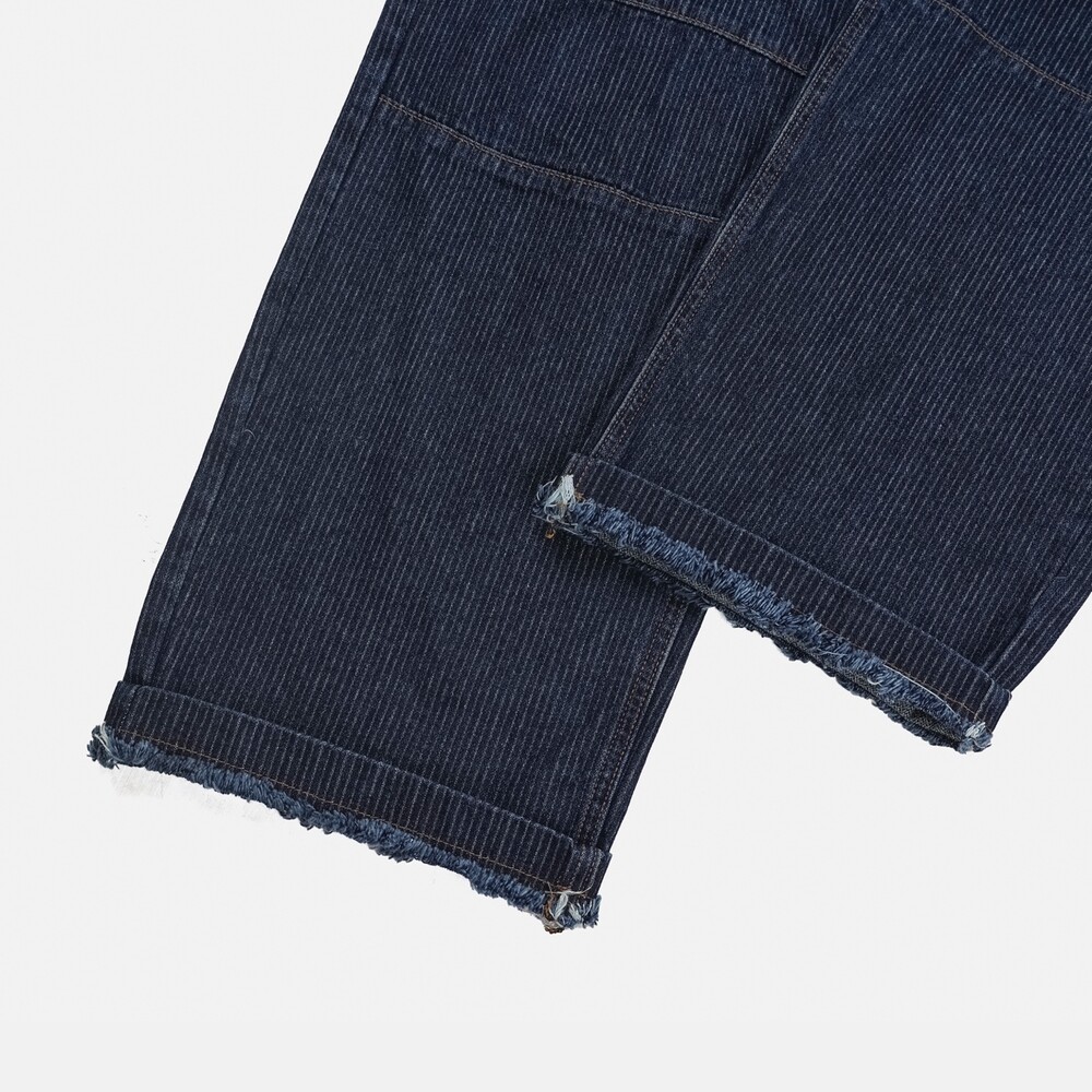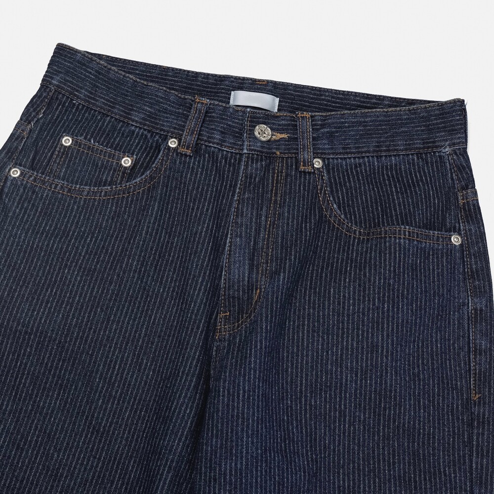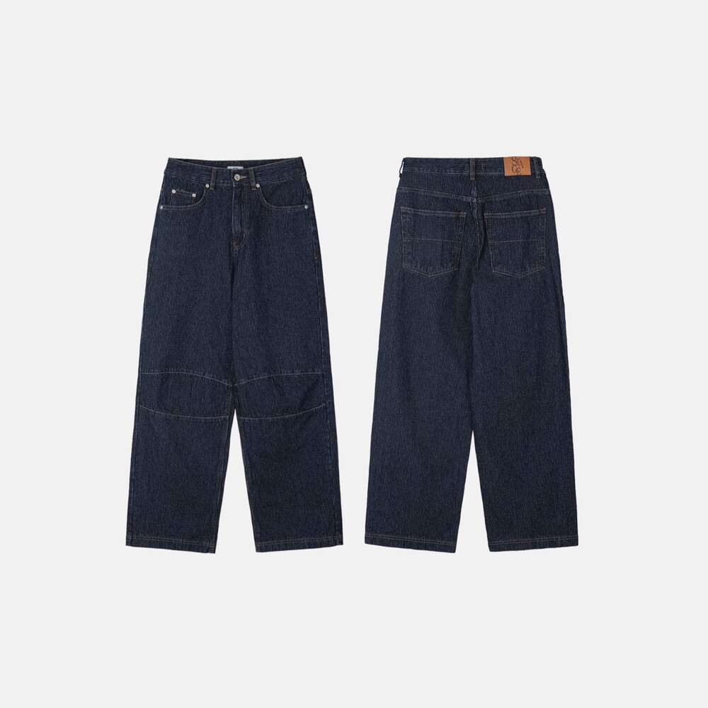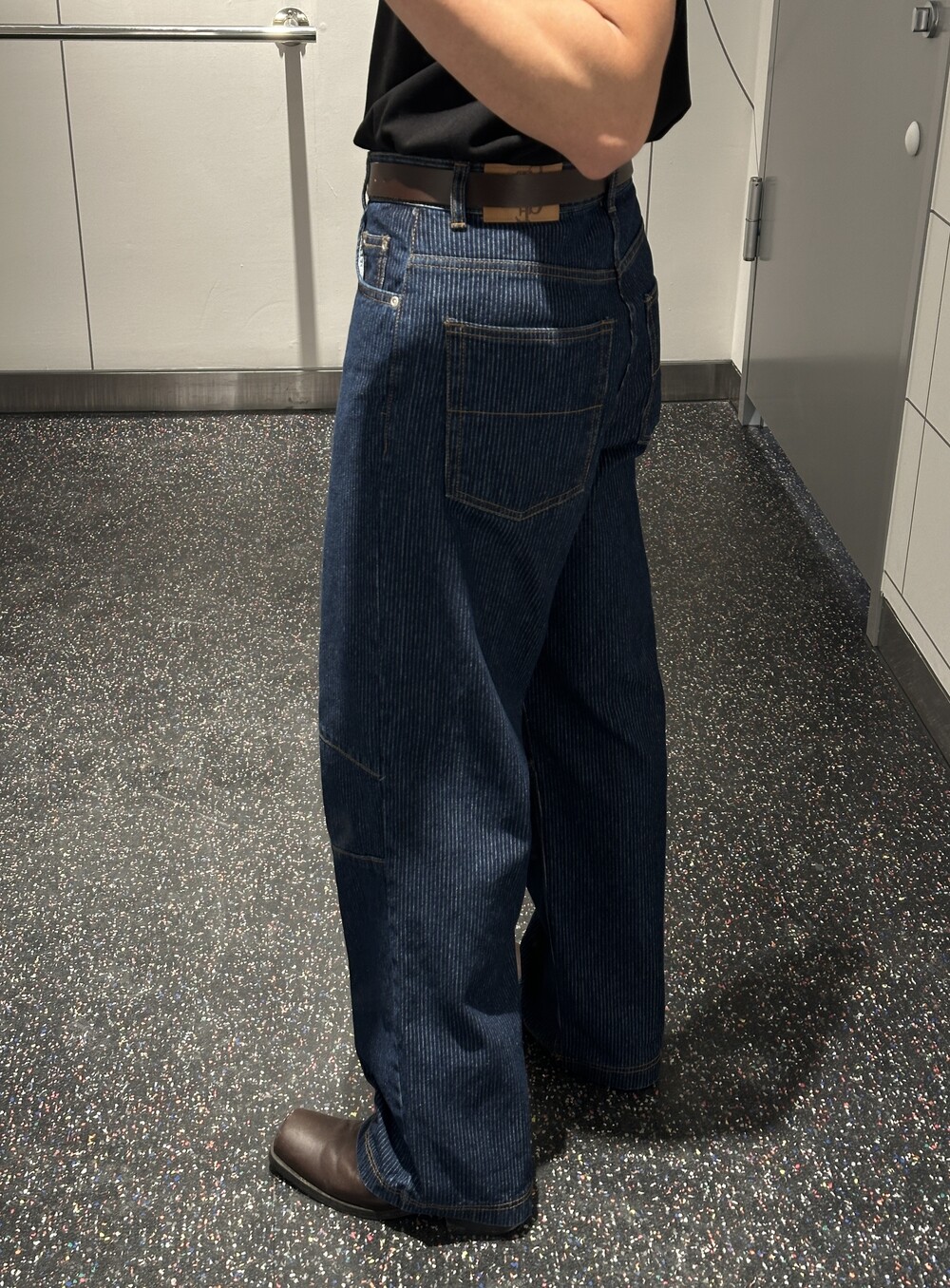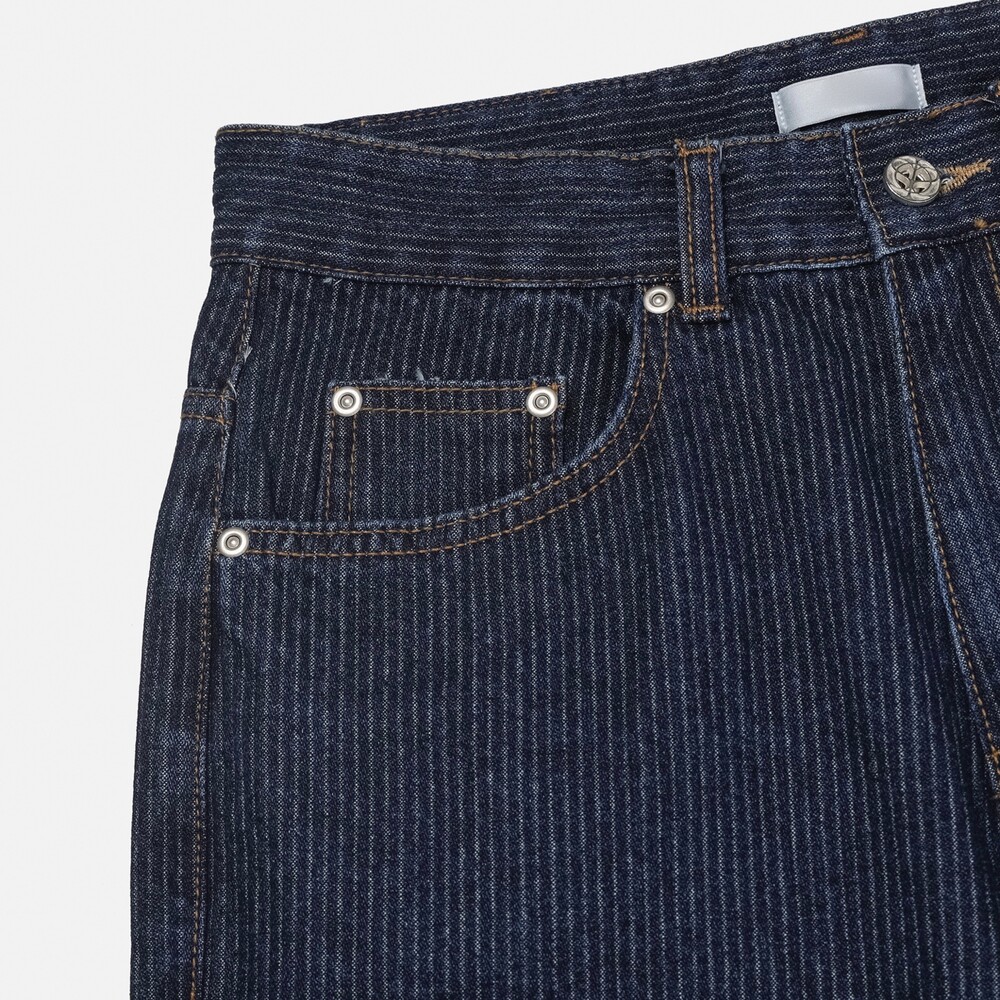 -레트로톤 진청과 진브라운 배색 스티치로 디자인 포인트