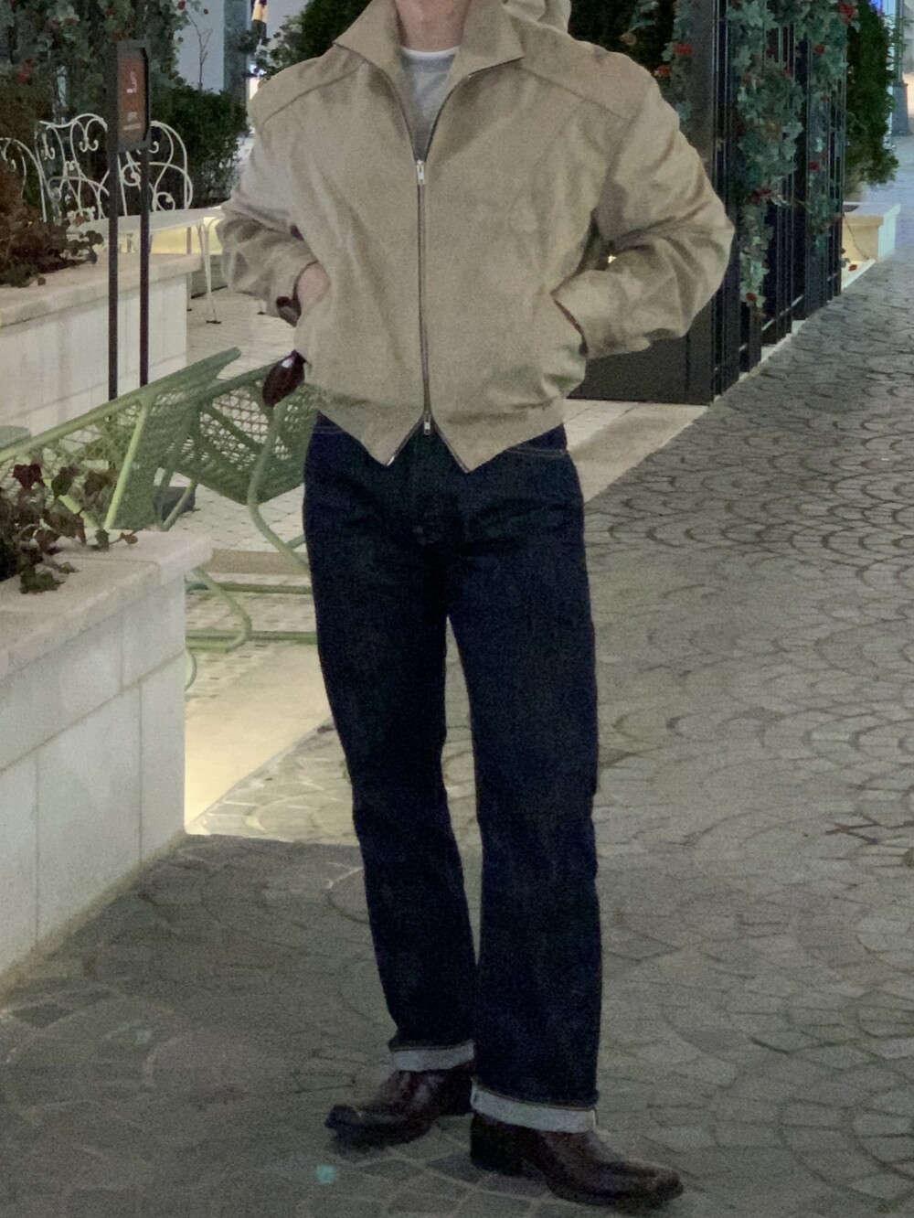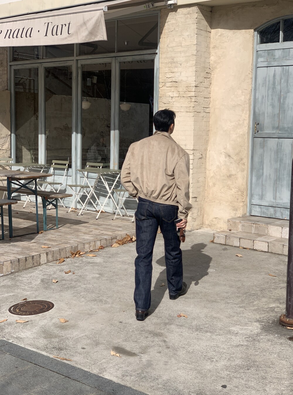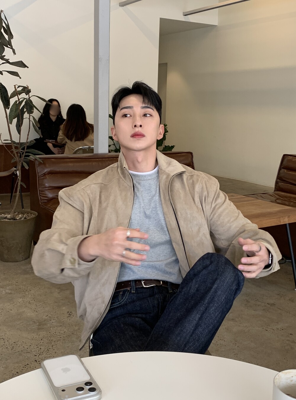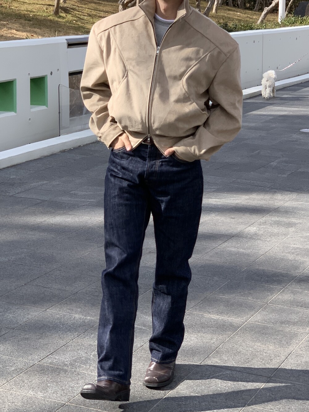 넓은 어깨라인과 크롭한 기장감으로 길어보이는 다리까지