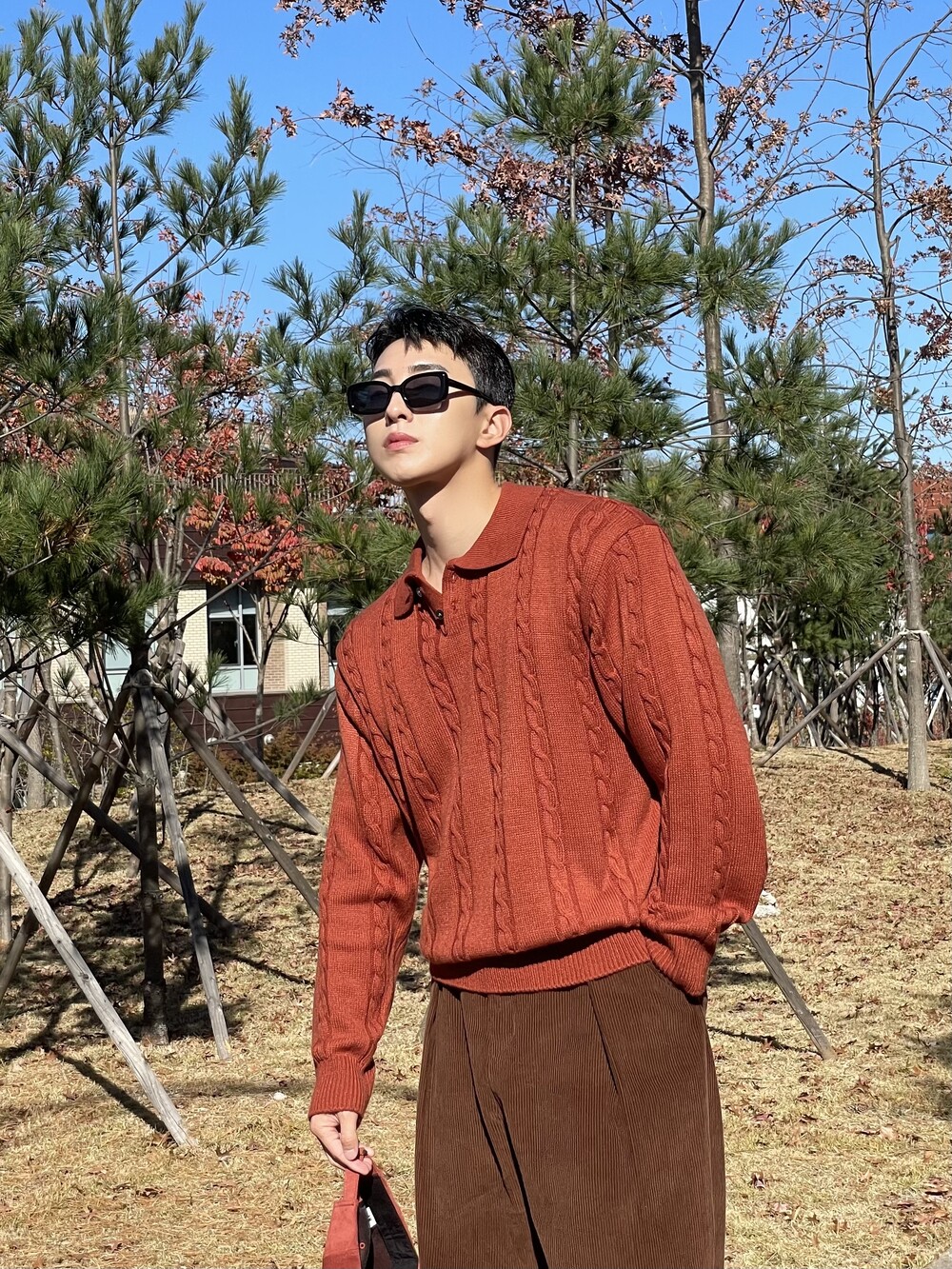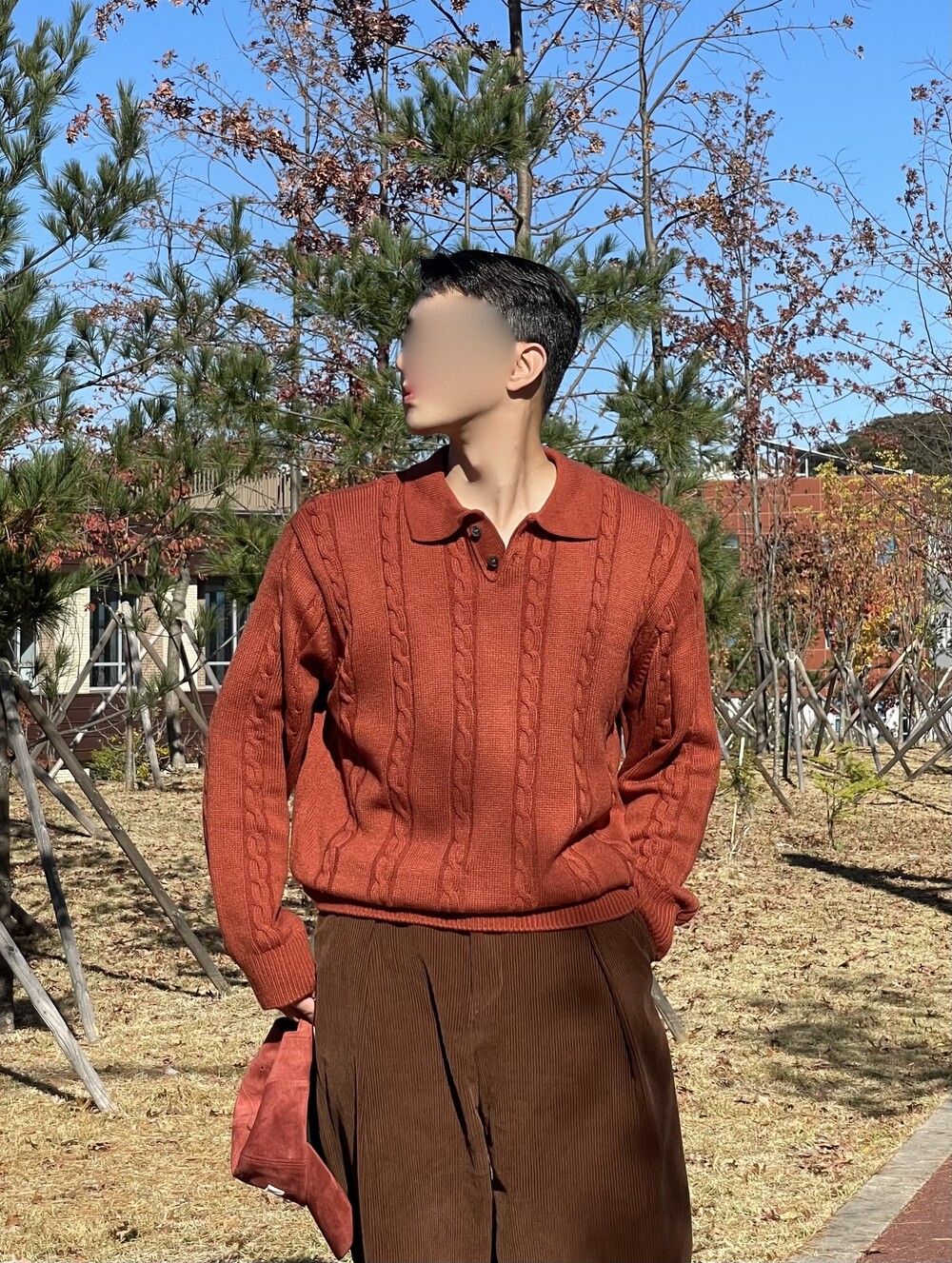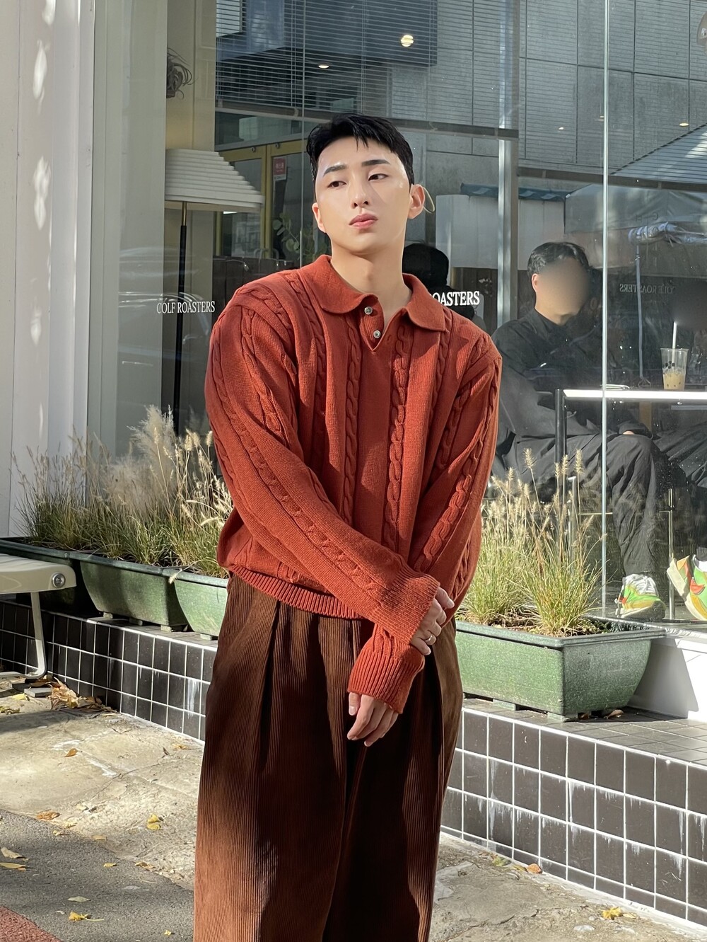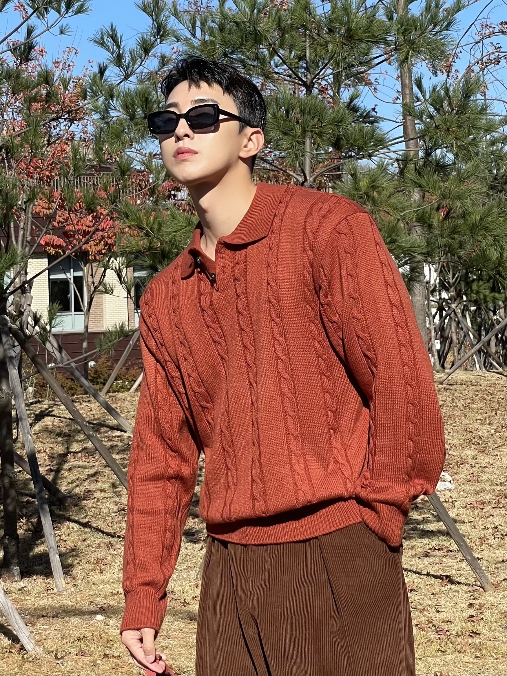 -꽈배기 케이블에 오픈 카라 니트는 시중에서 찾기 힘든 디자인으로 유니크함 확실