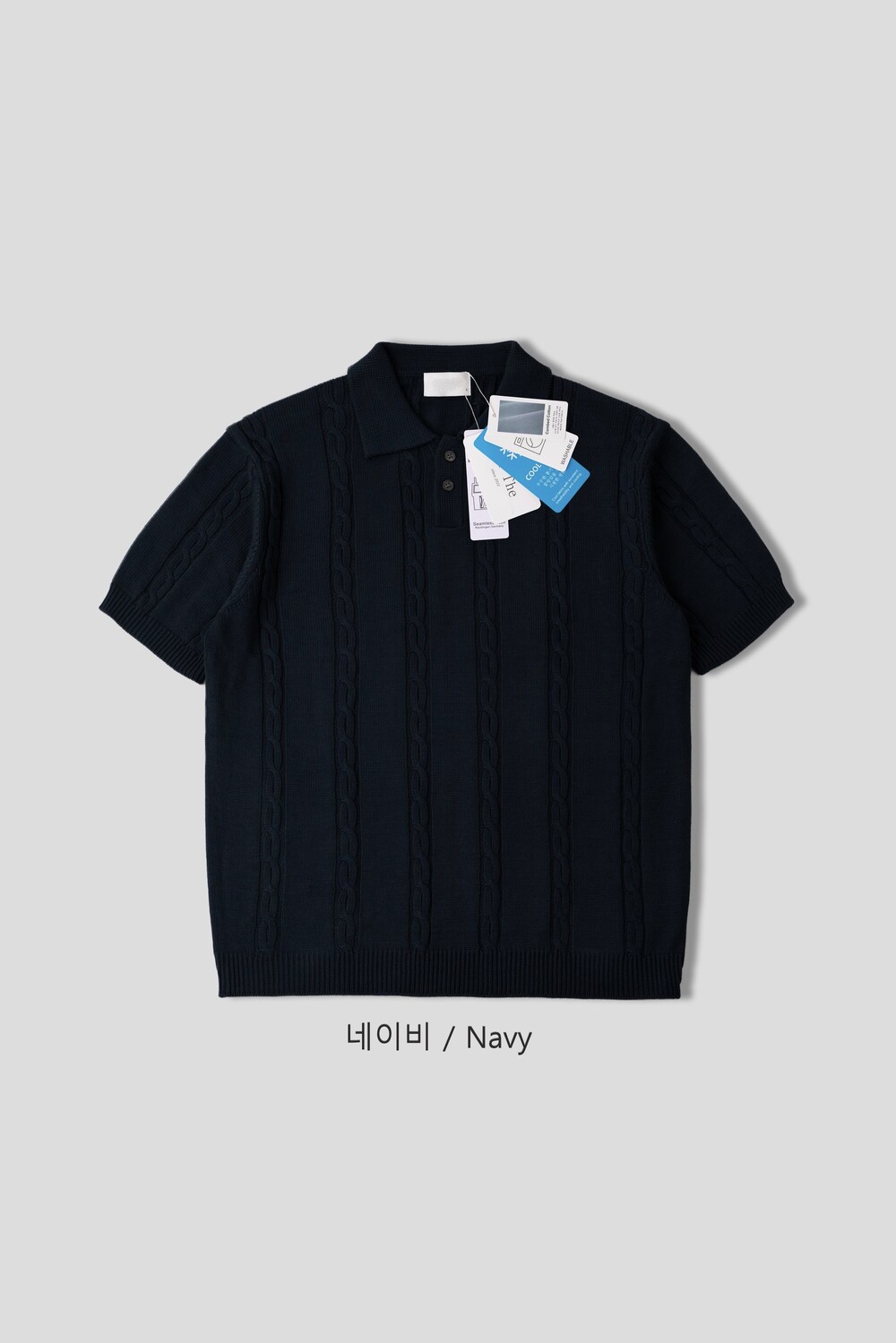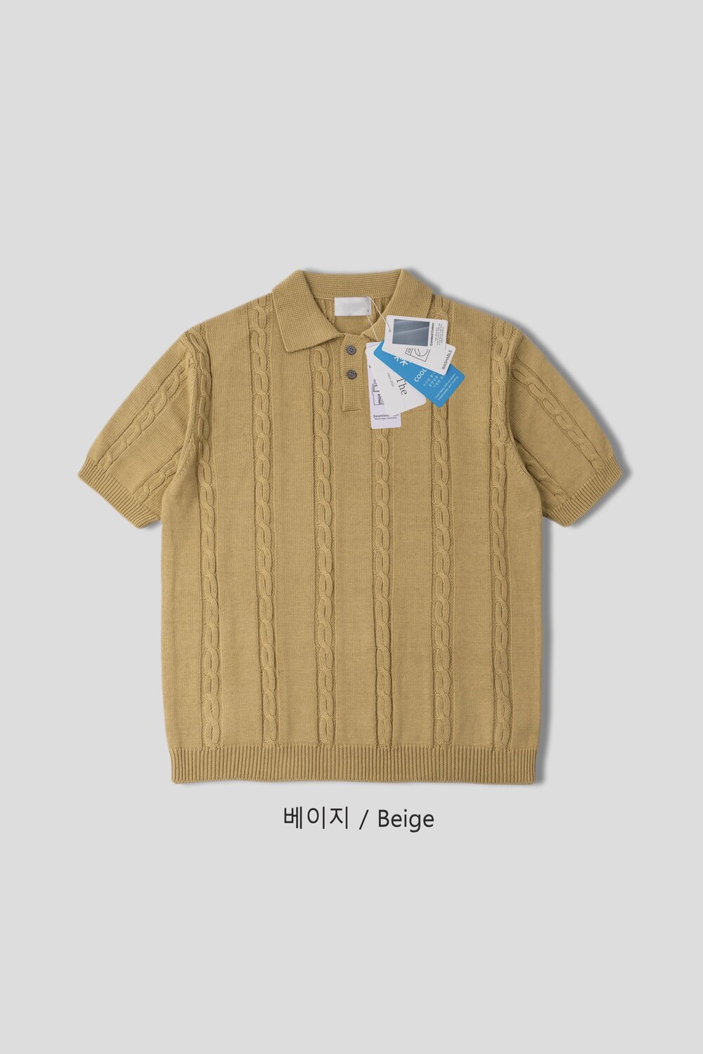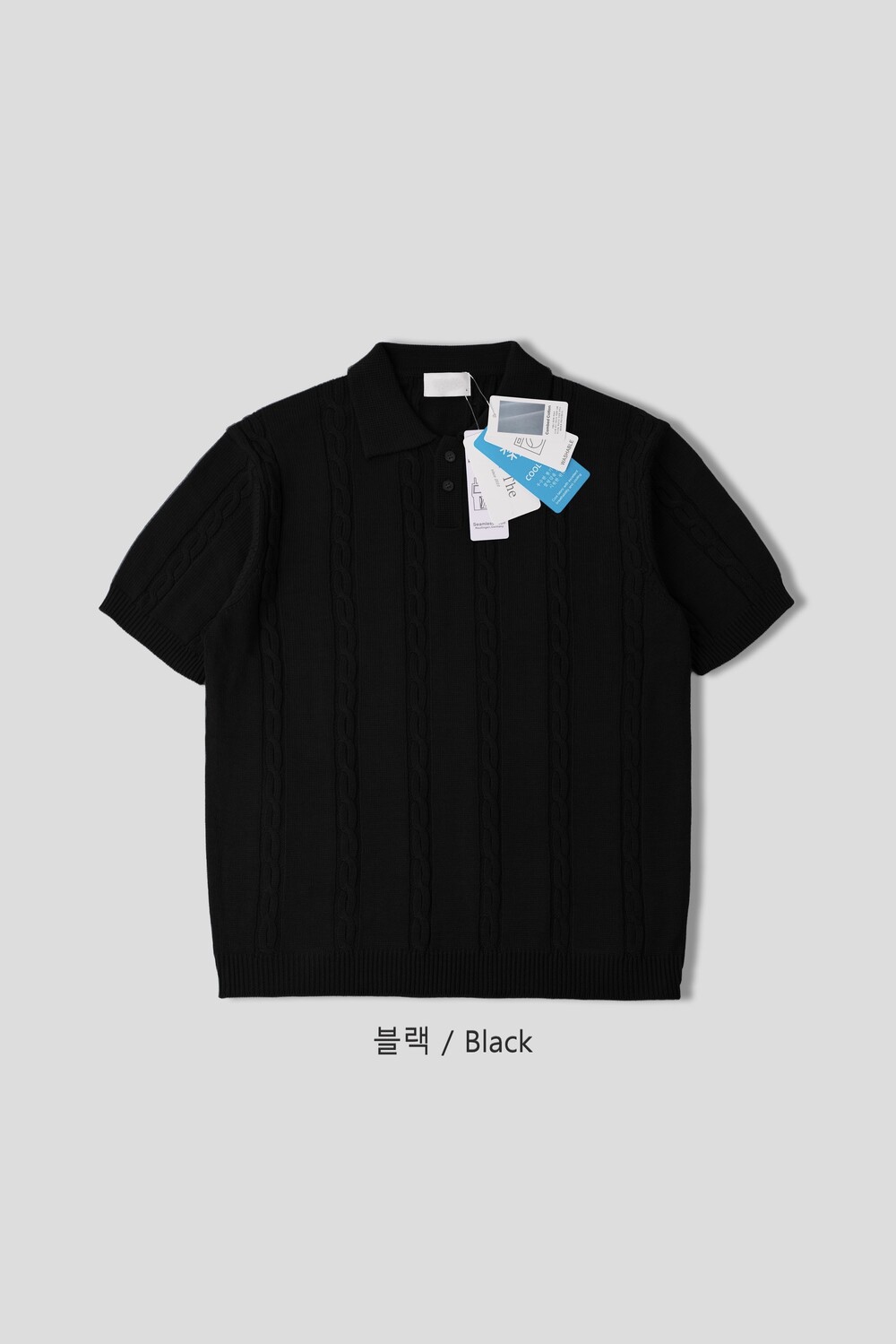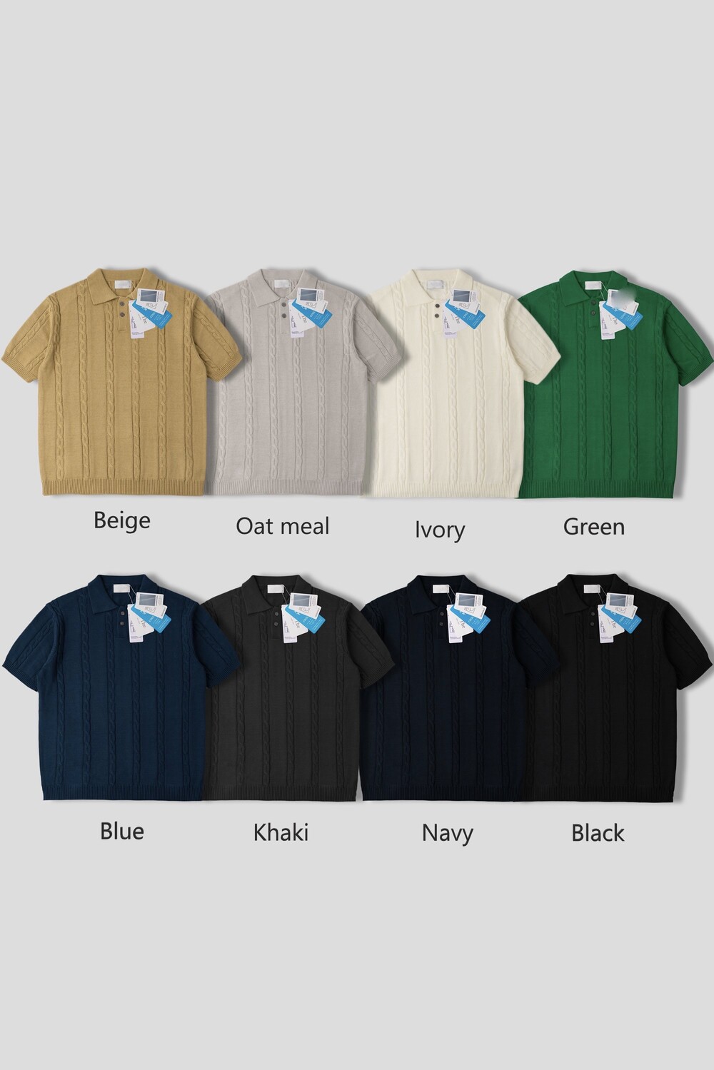 머슬핏 꽈배기 카라 니트 반팔 (8 color)