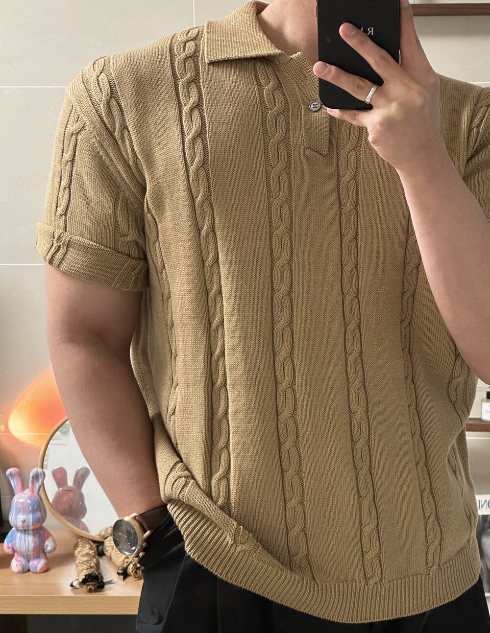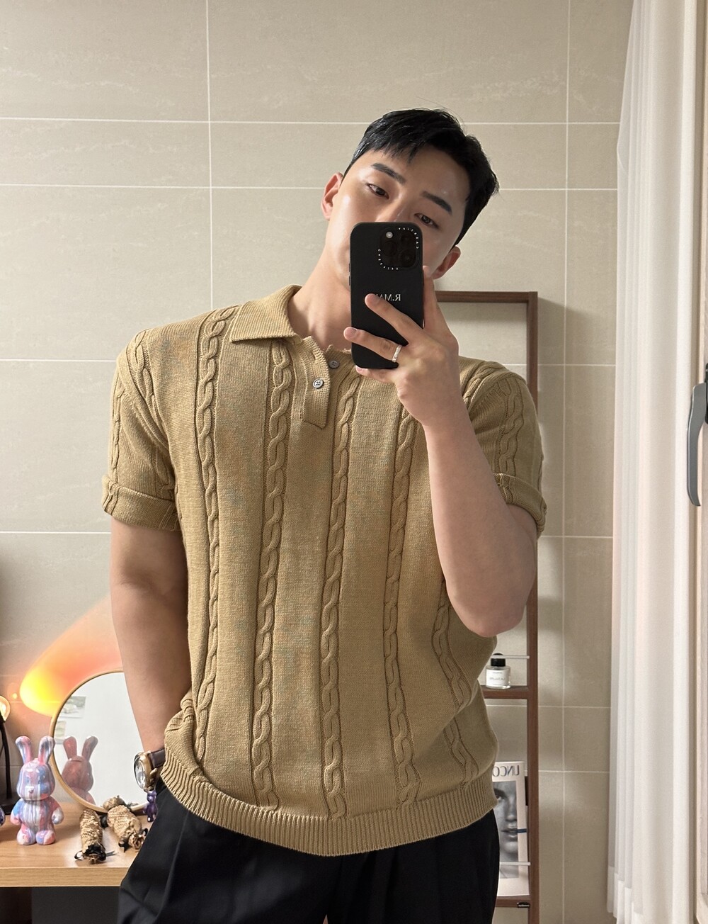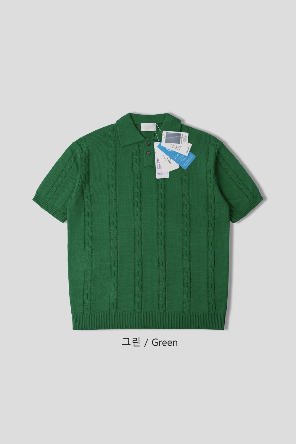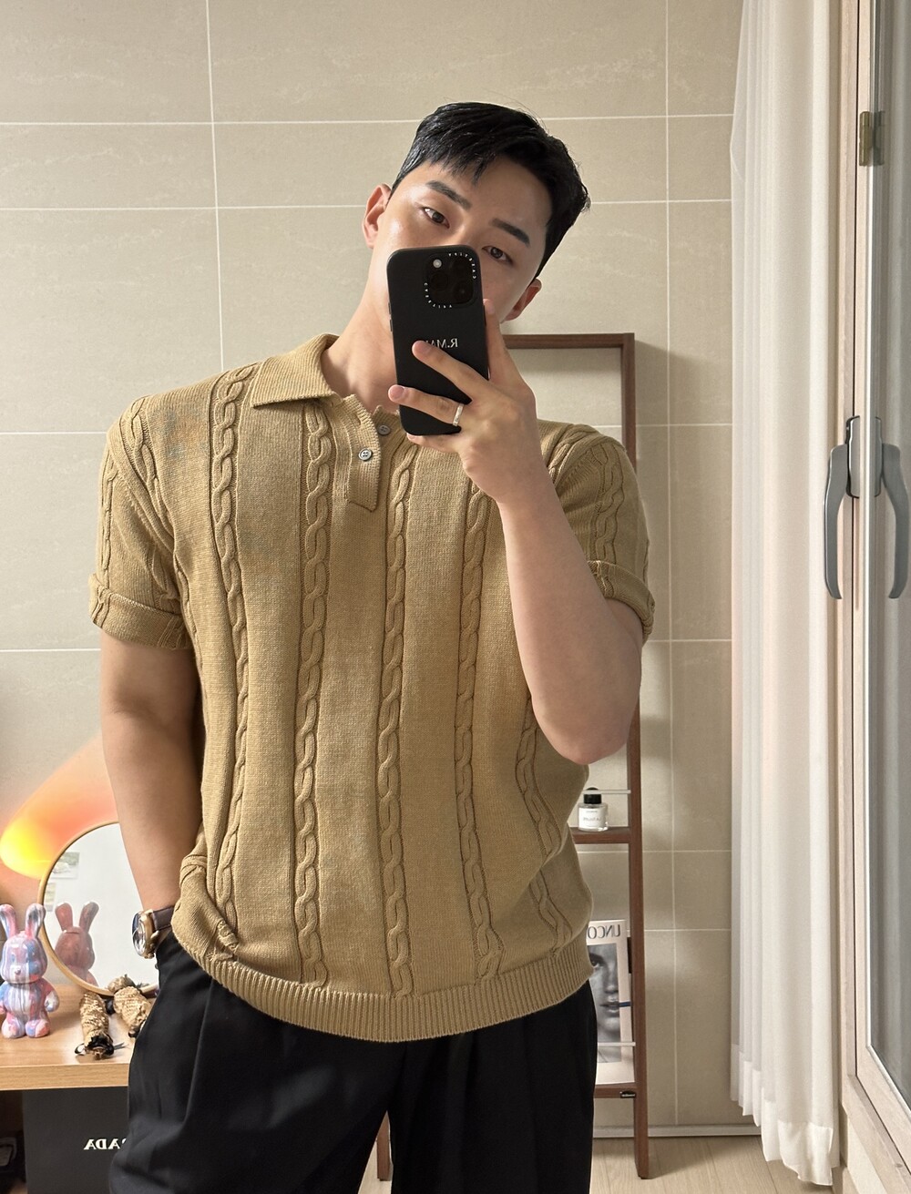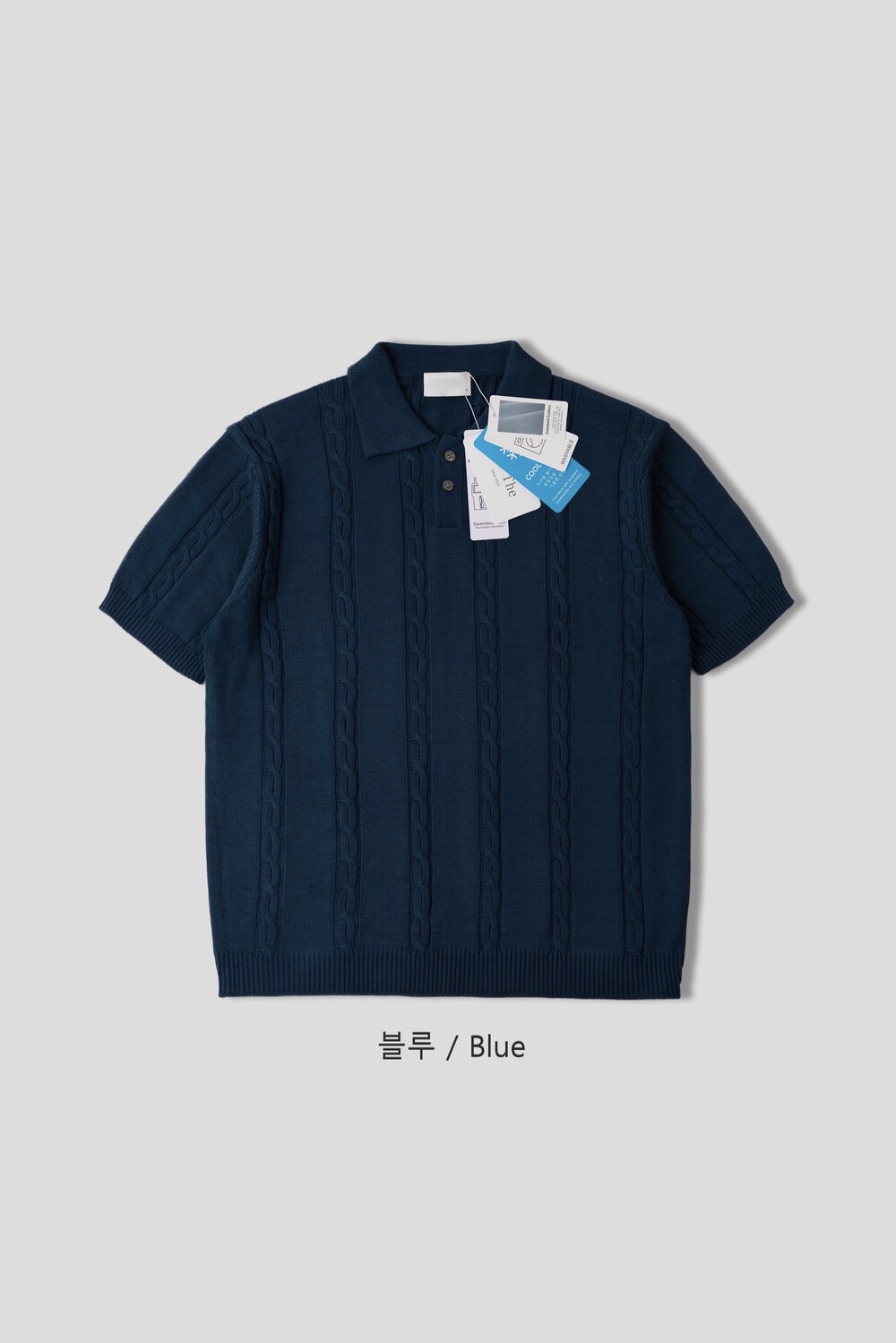머슬핏 꽈배기 카라 니트 반팔 (8 color)