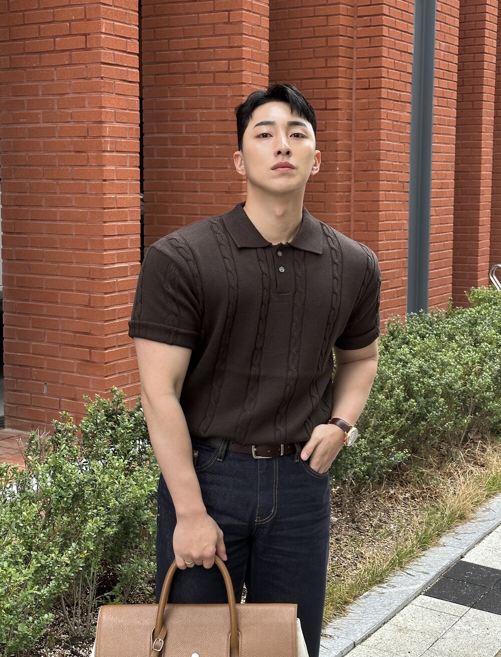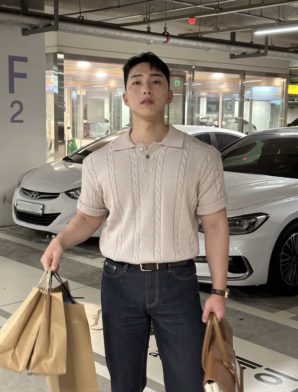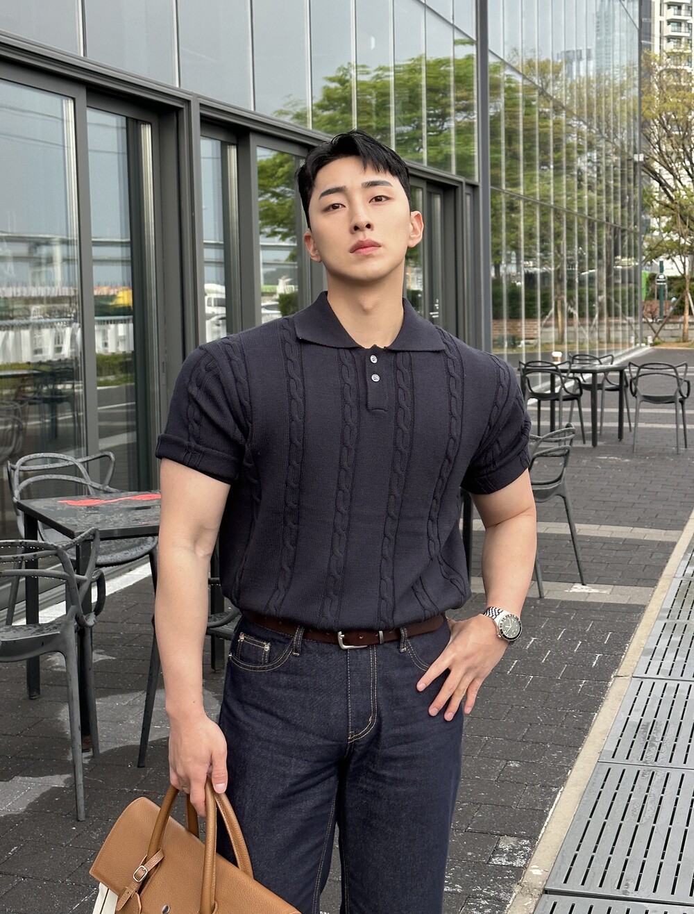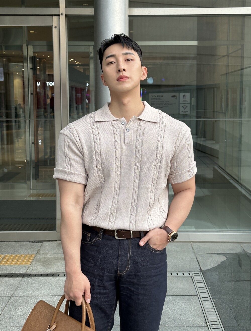 머슬핏 꽈배기 카라 니트 반팔 (8 color)
