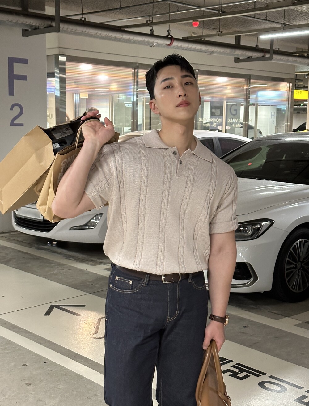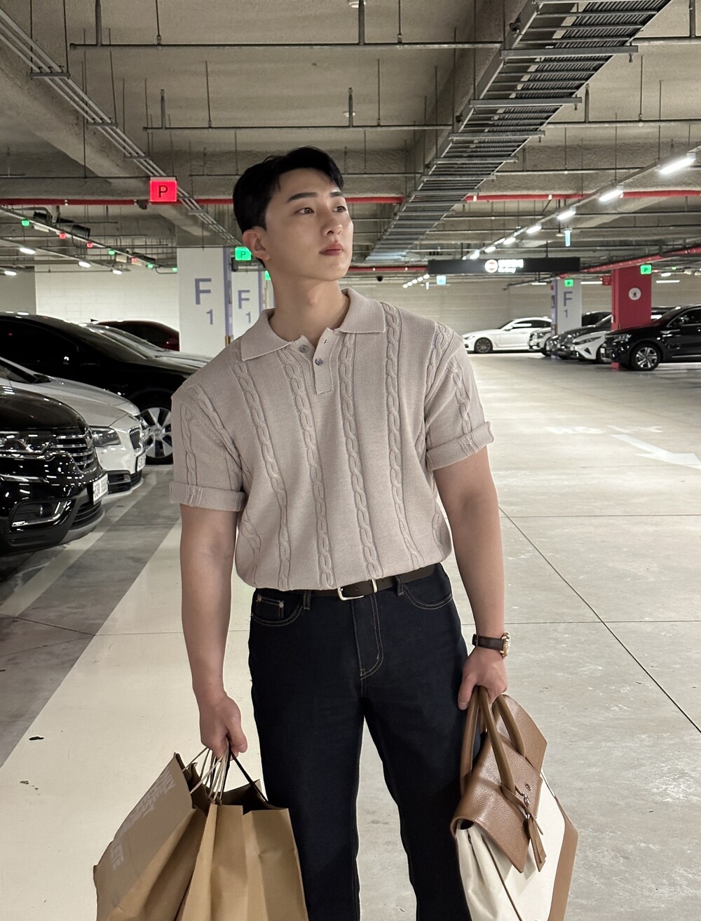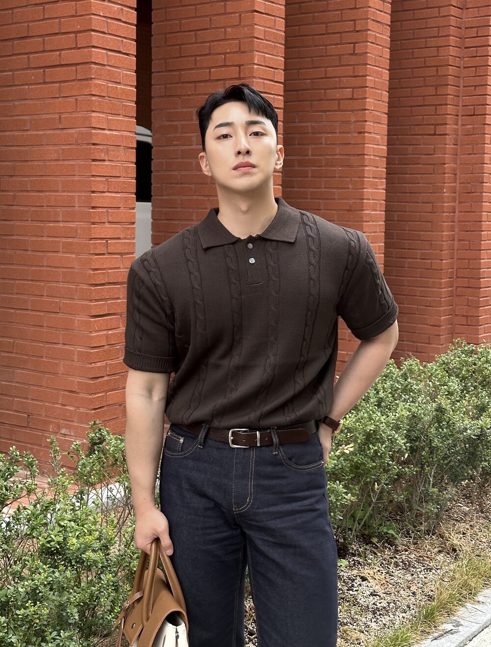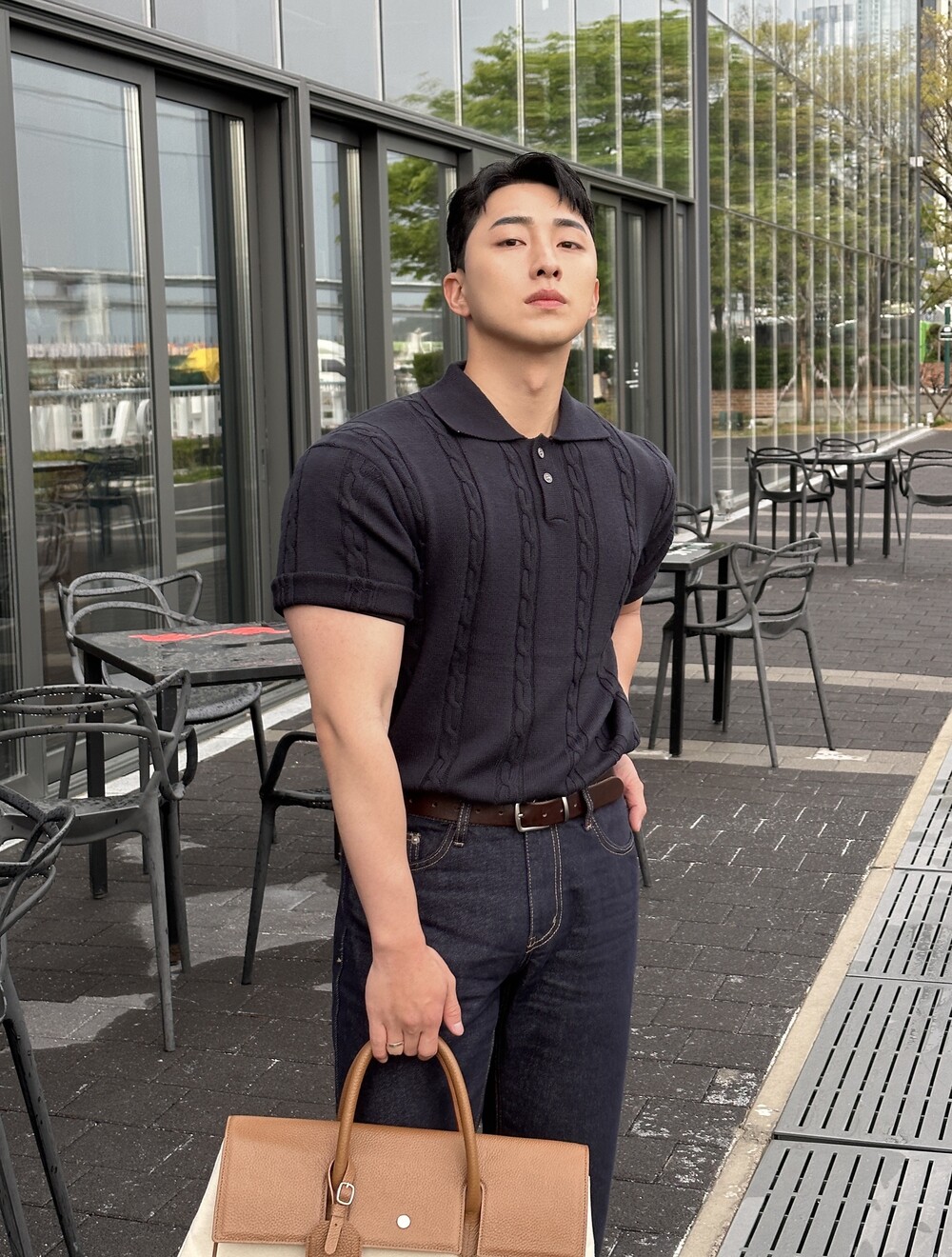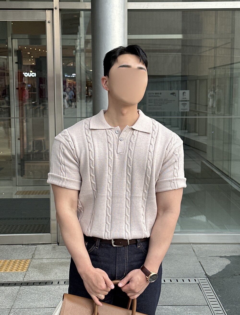 머슬핏 꽈배기 카라 니트 반팔 (8 color)