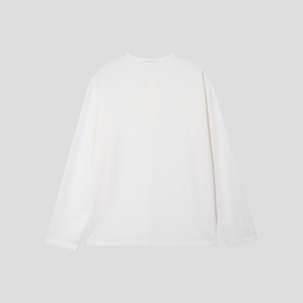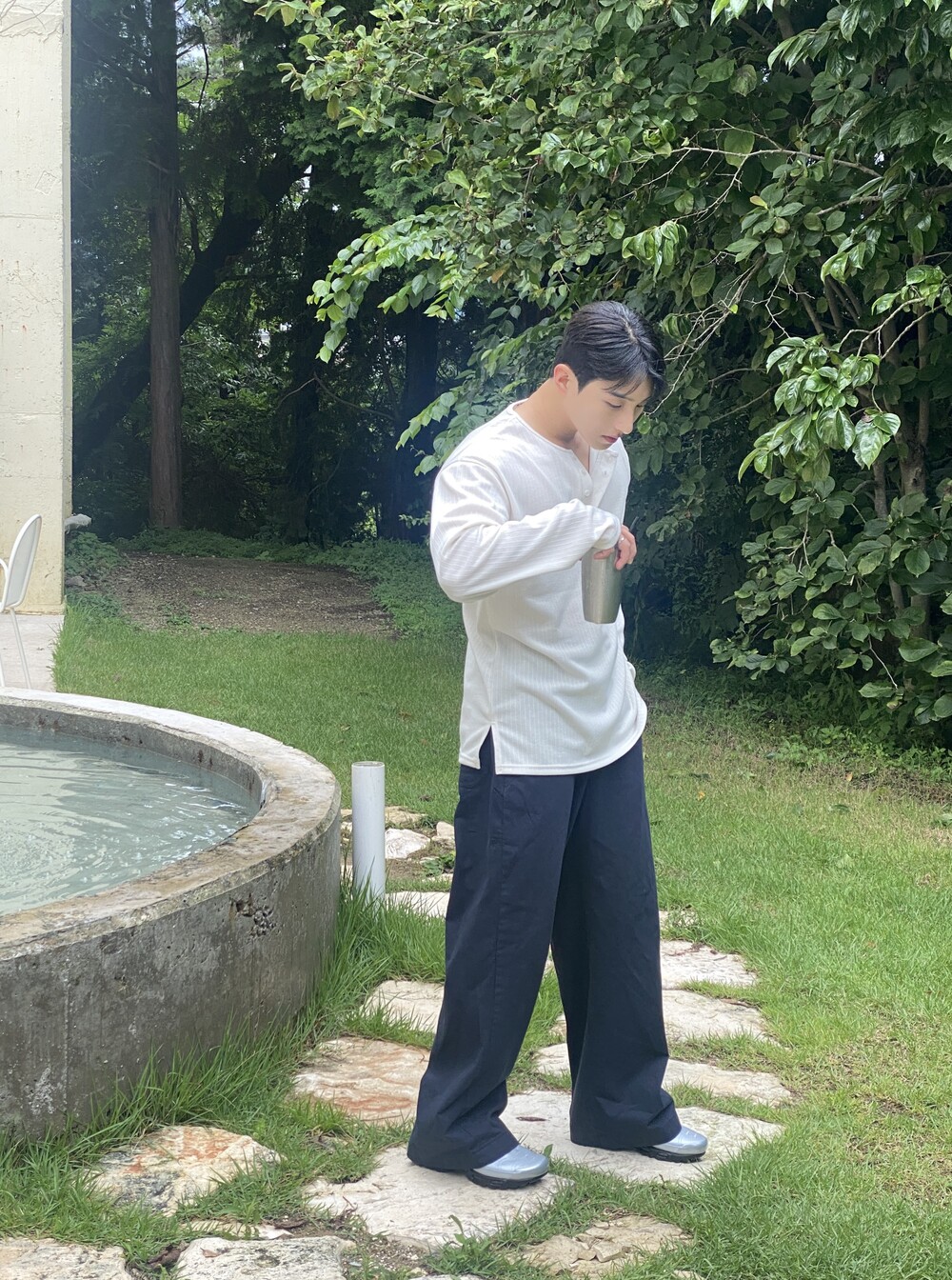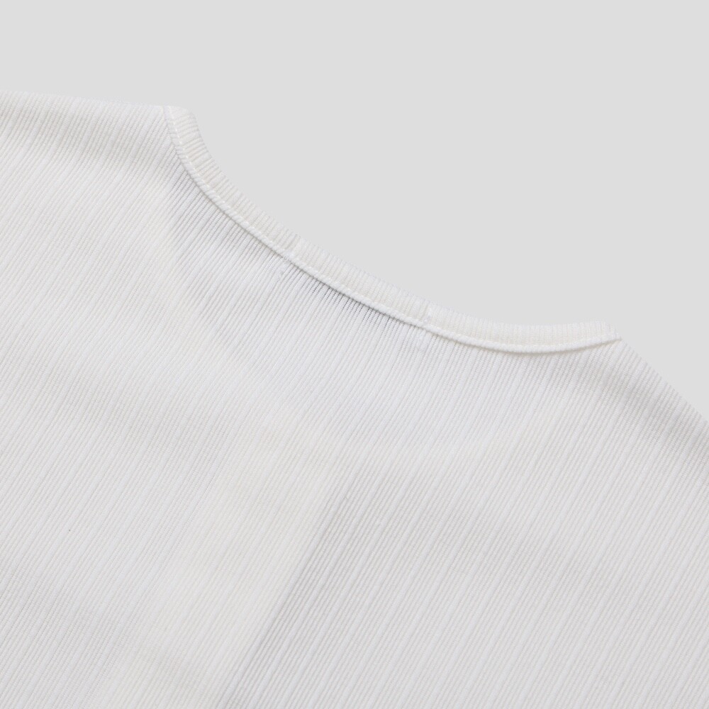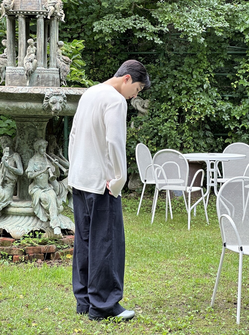 -탄탄하고 텐션 좋은 원단감에 잔잔한 골지 텍스쳐가 포인트