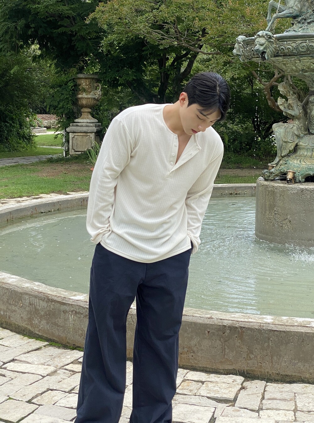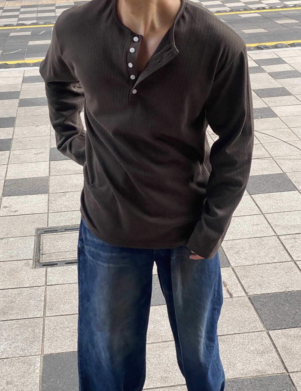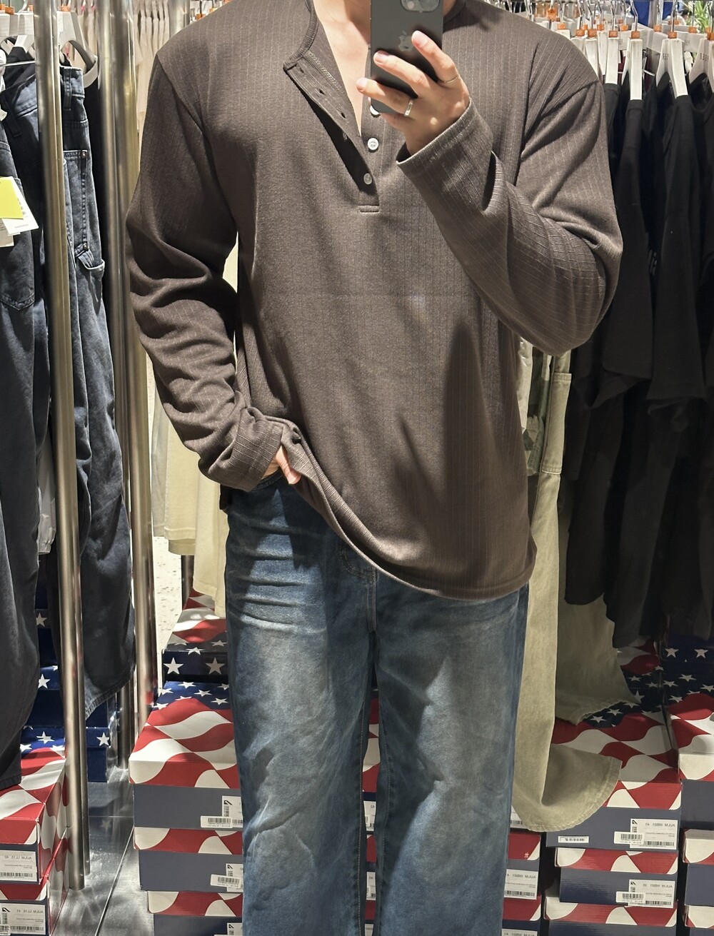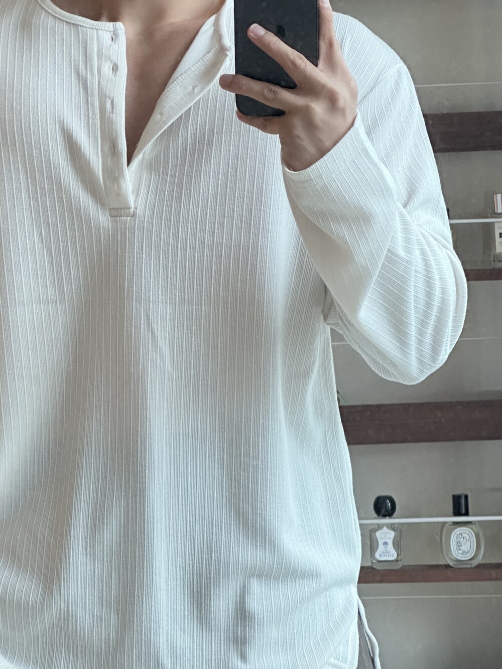 -코지하면서 데일리로 즐기기 좋은 무드의 긴팔 헨리넥
