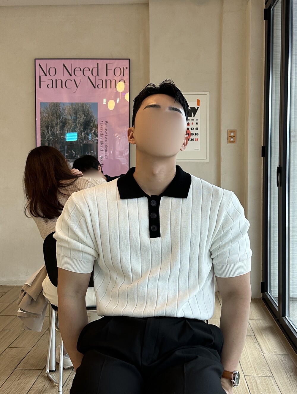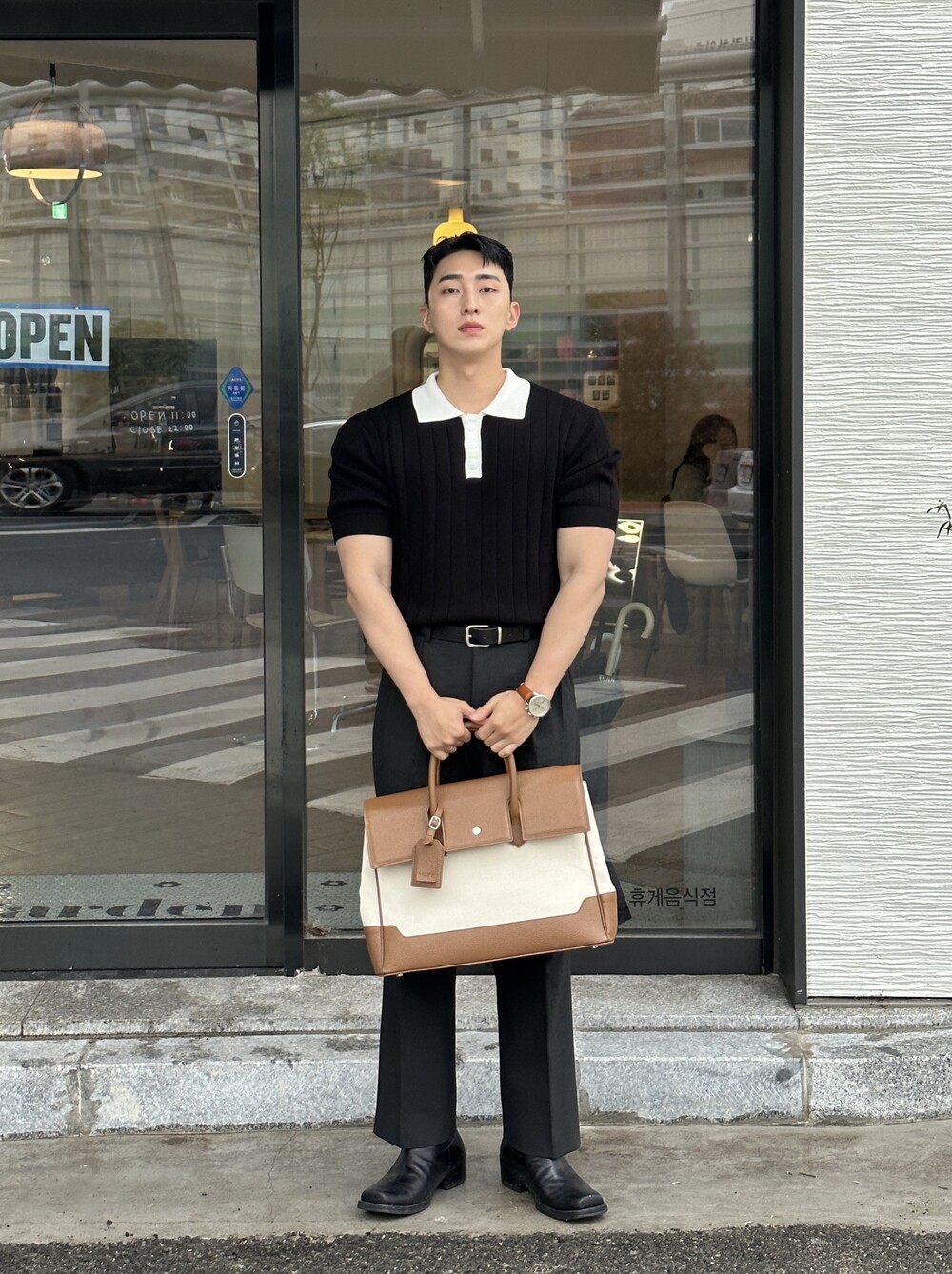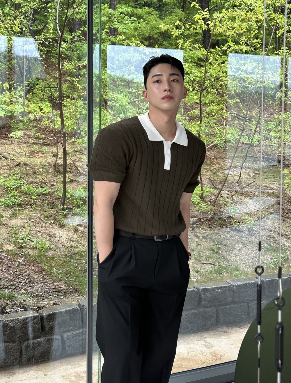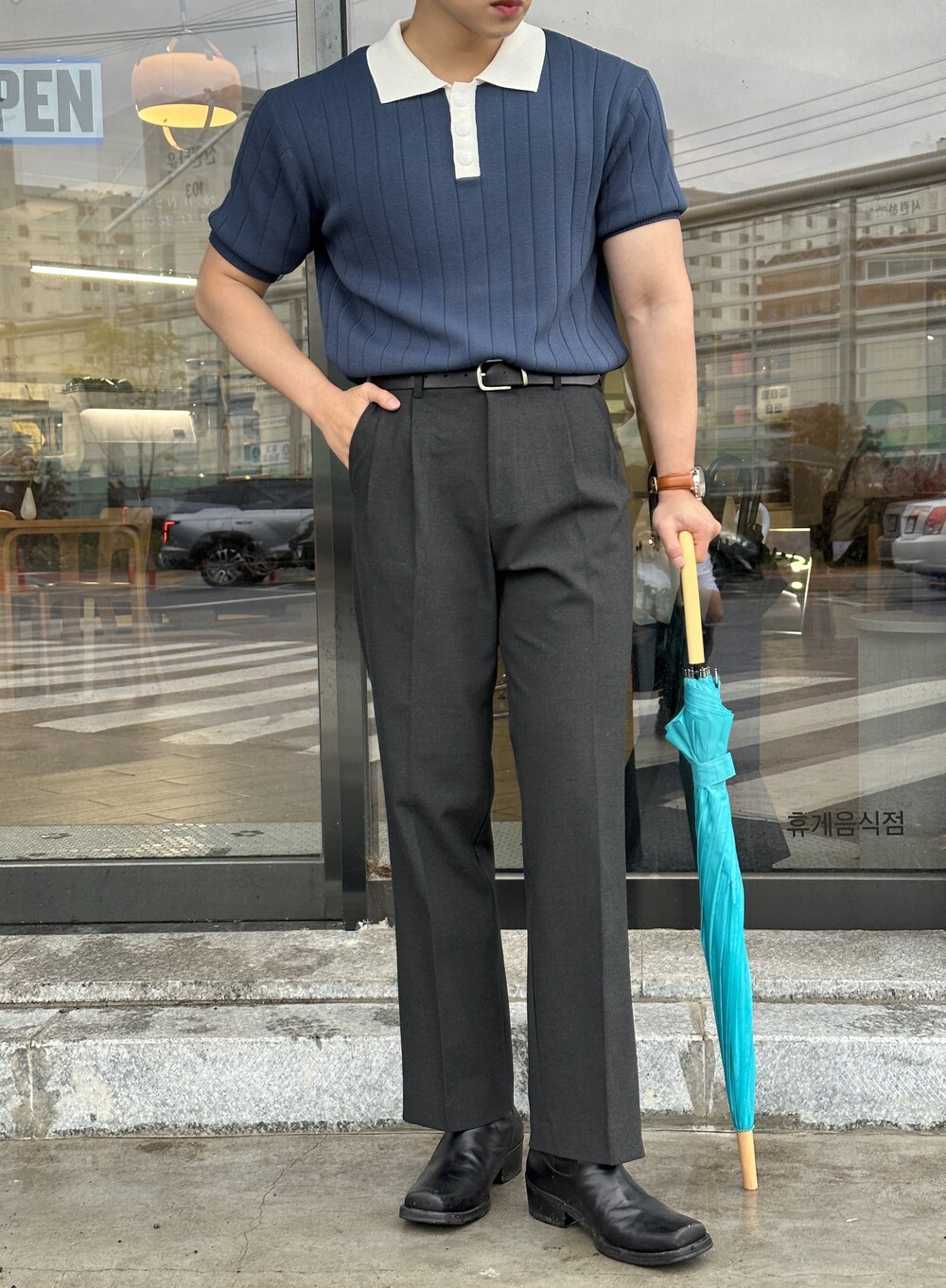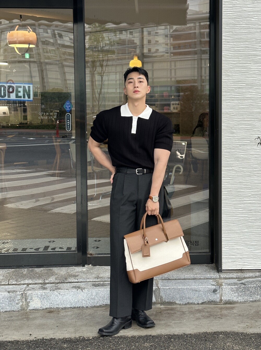 -핏이 이쁘게 떨어지는 세미 머슬핏 반팔 니트