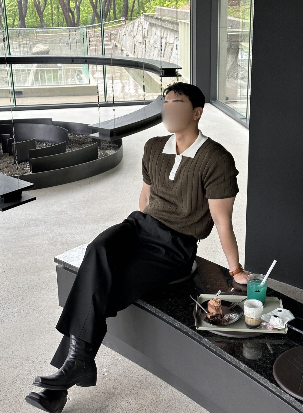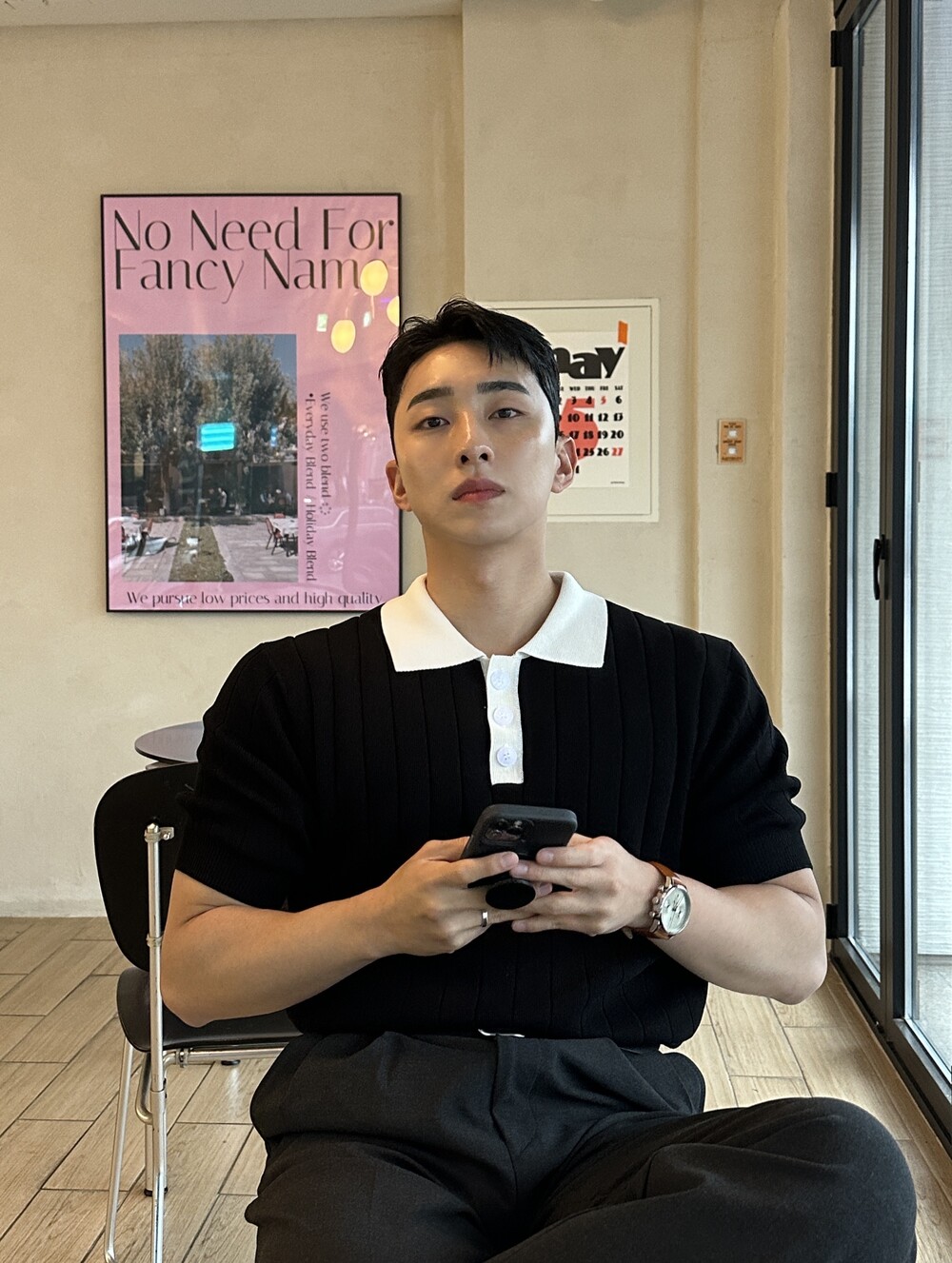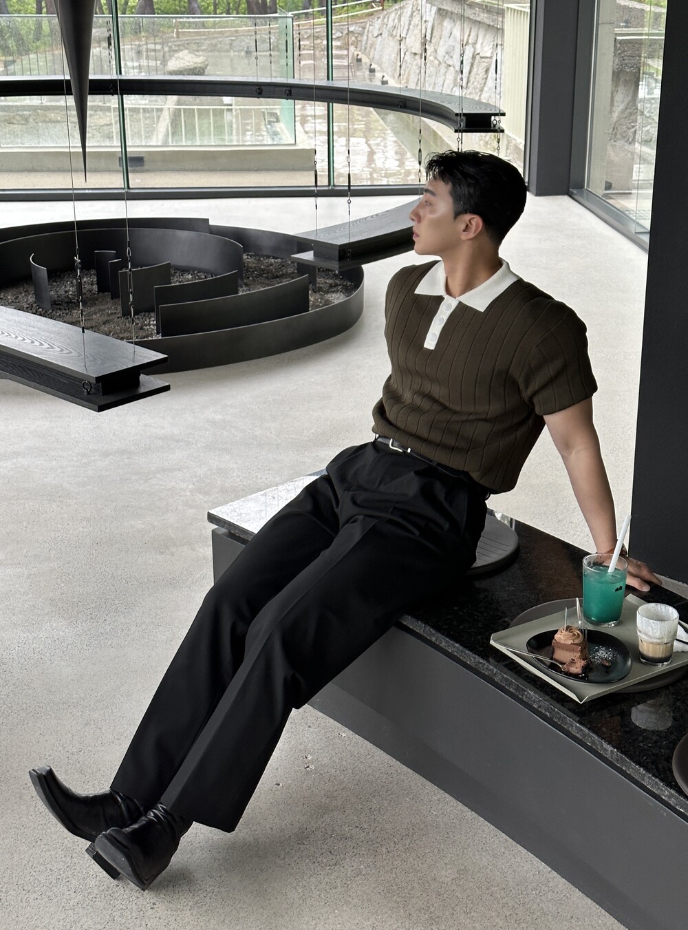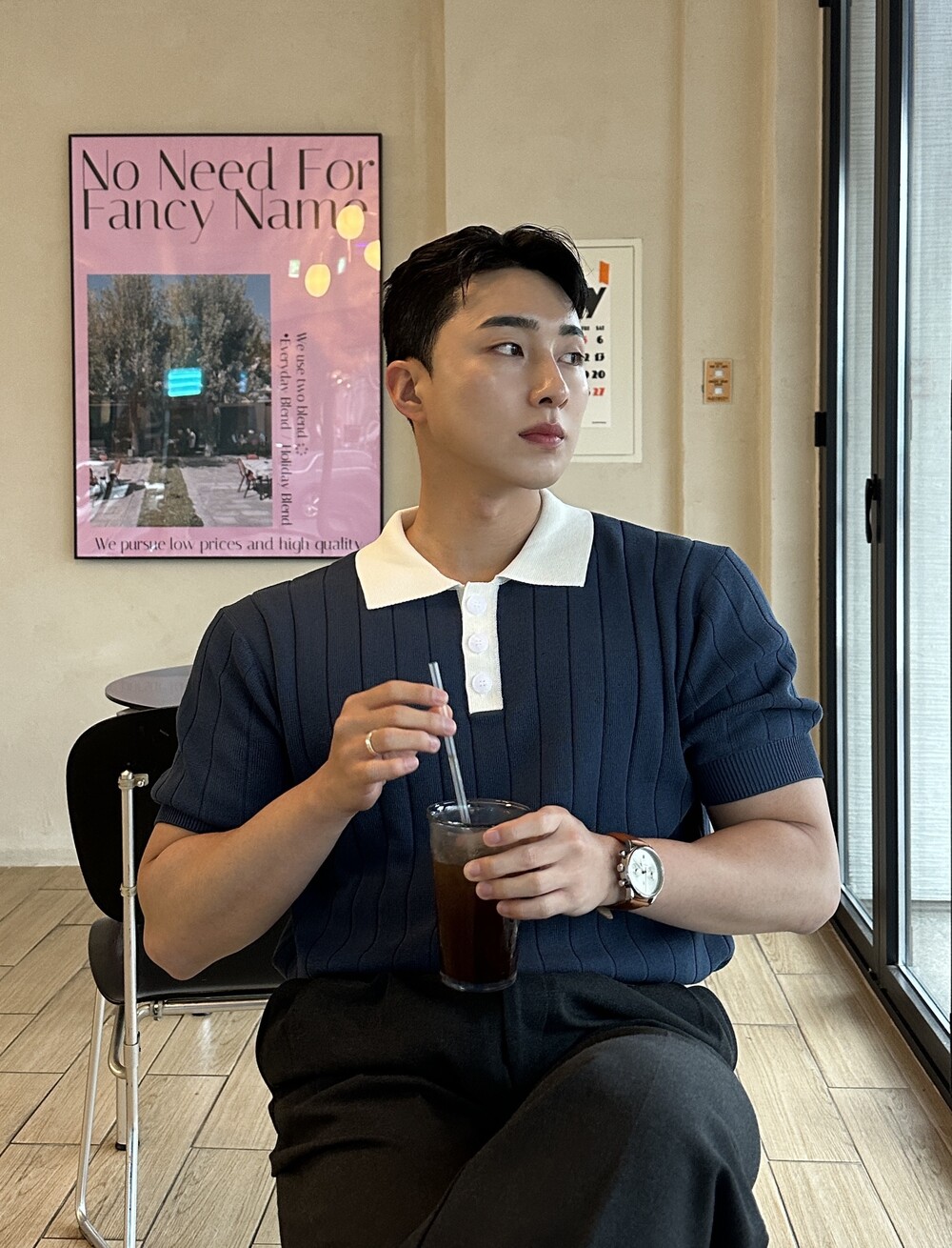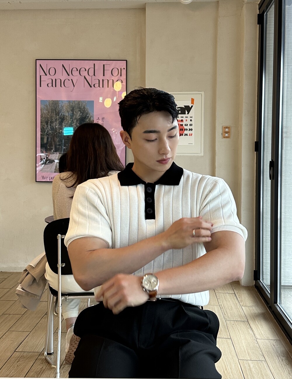 -핏이 이쁘게 떨어지는 세미 머슬핏 반팔 니트