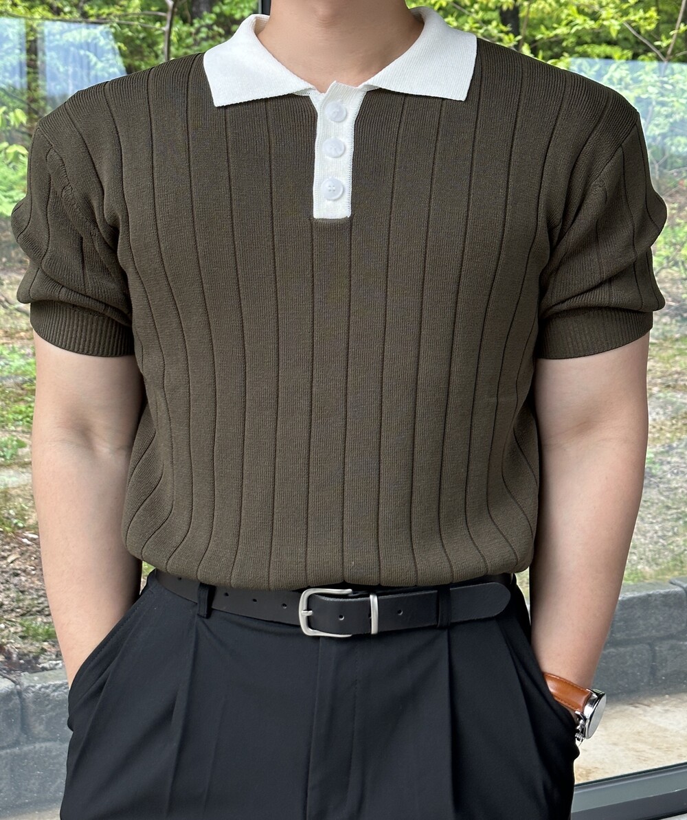 머슬핏 아이스 골지 배색 카라 니트 (4 color)