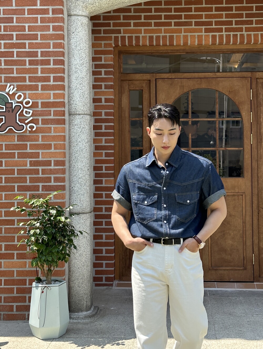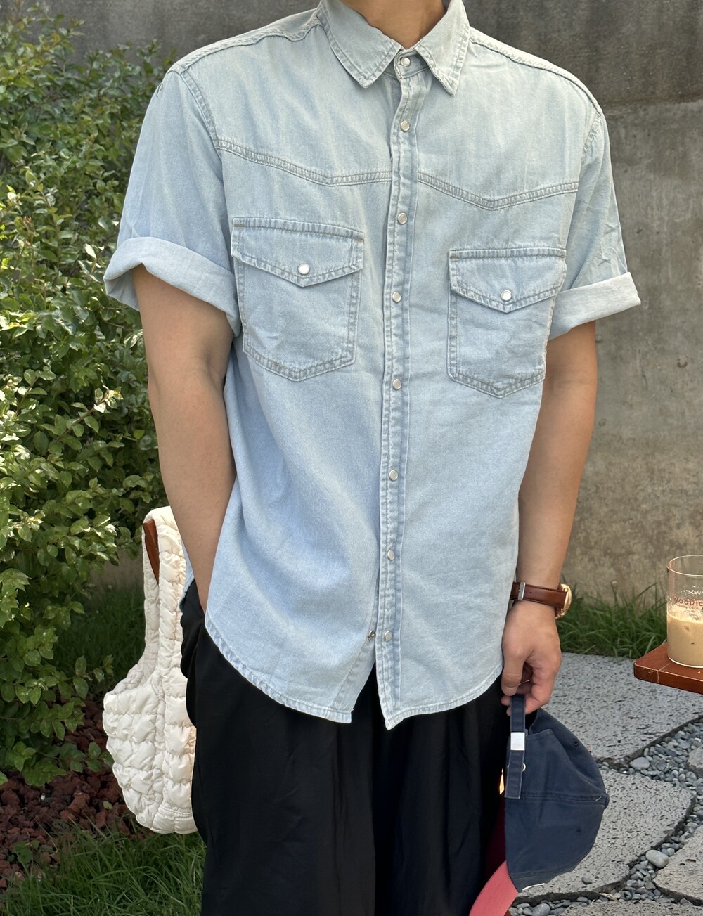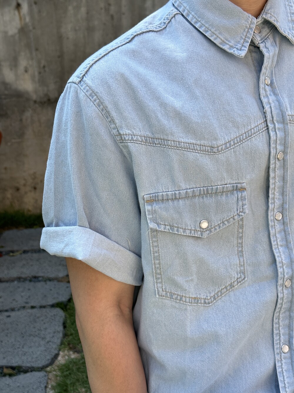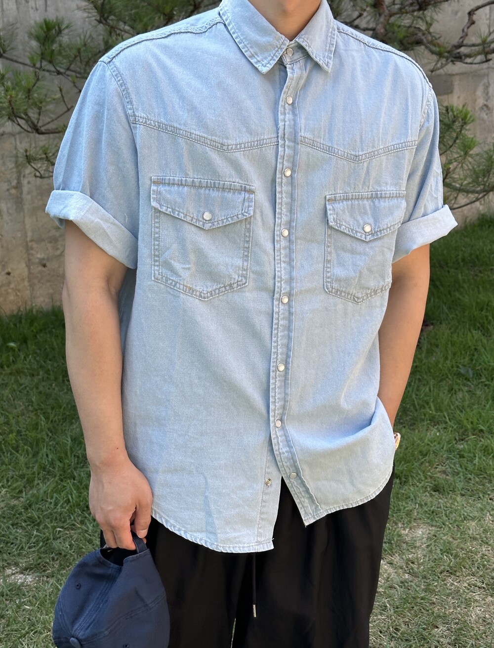 웨스턴 사이드 데님 하프 셔츠 (2 color)