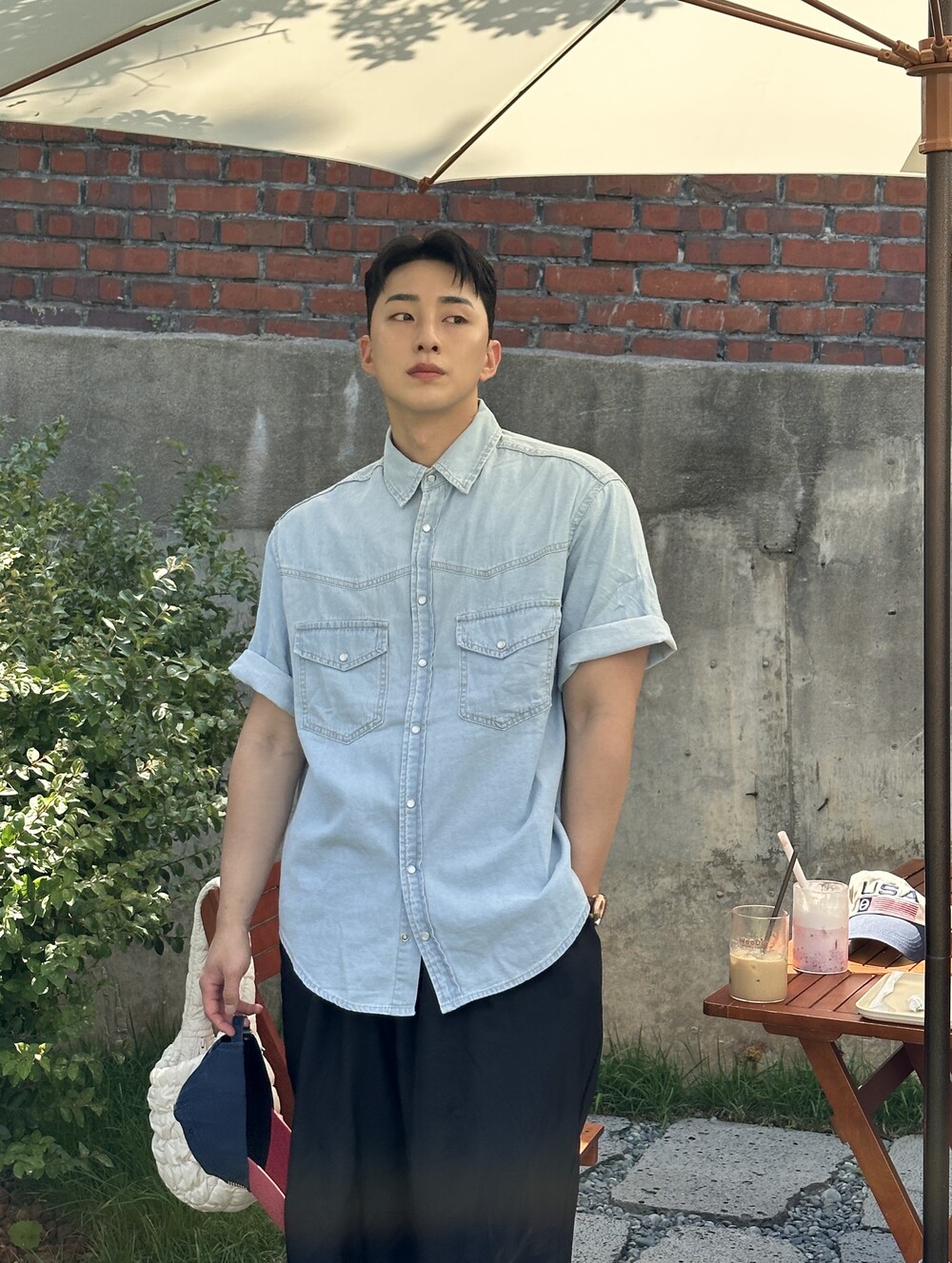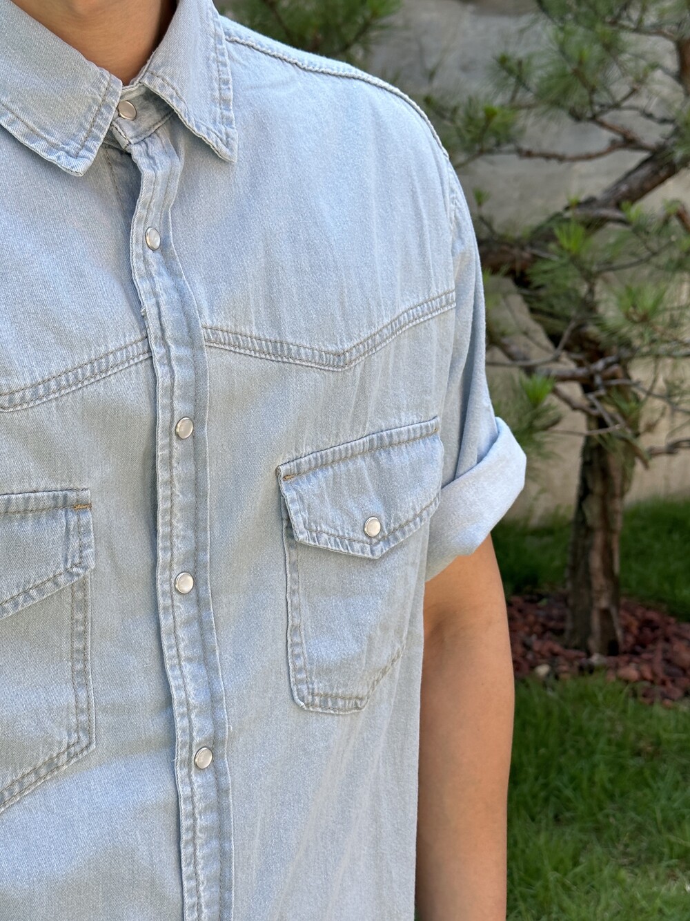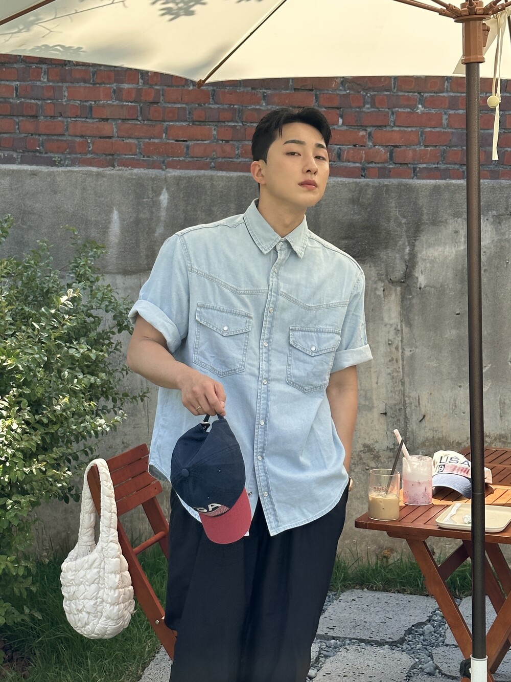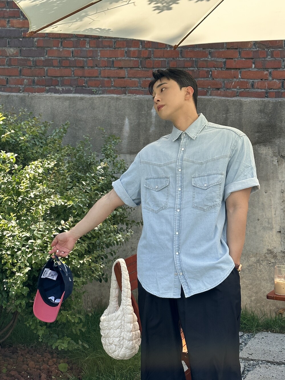 웨스턴 사이드 데님 하프 셔츠 (2 color)