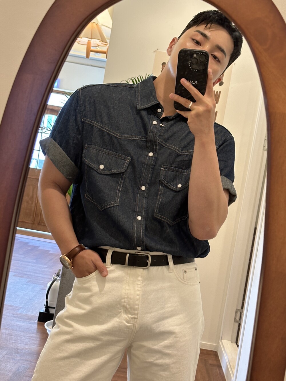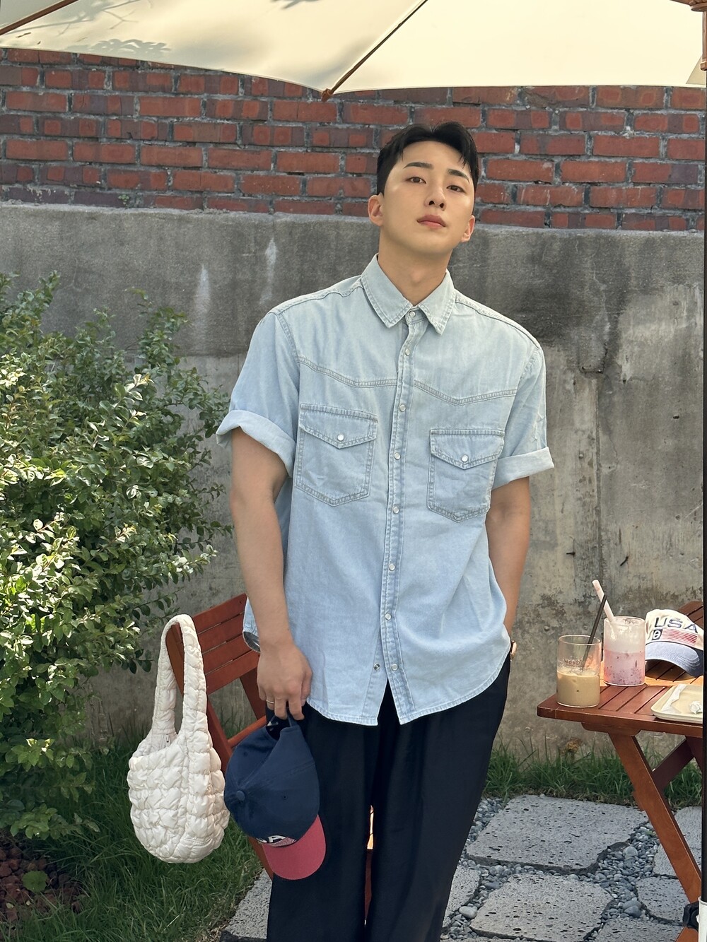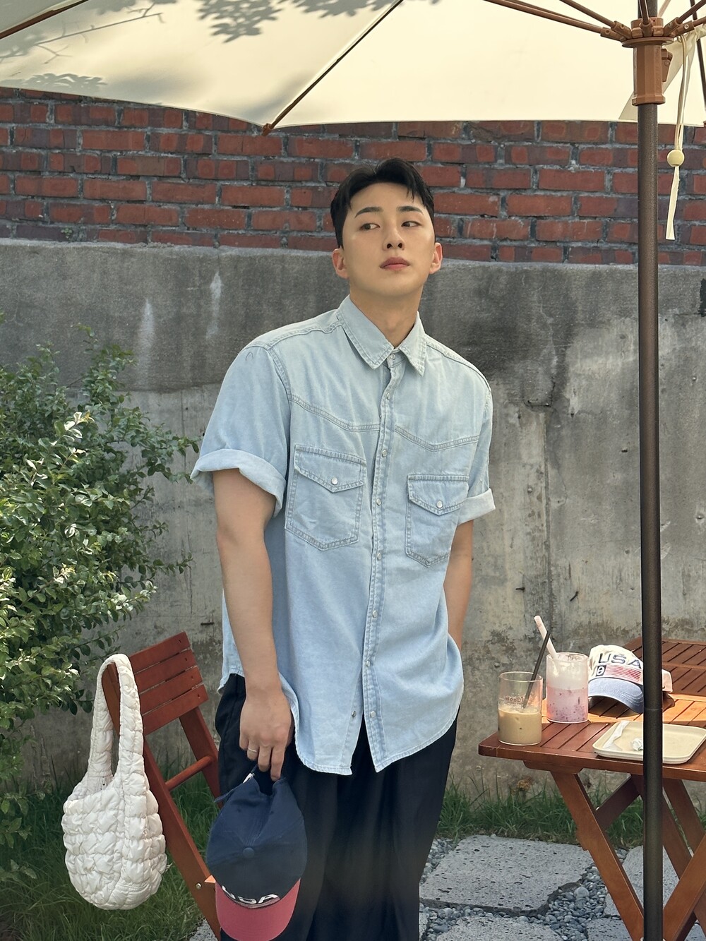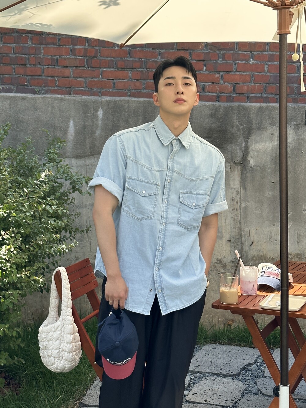 웨스턴 사이드 데님 하프 셔츠 (2 color)