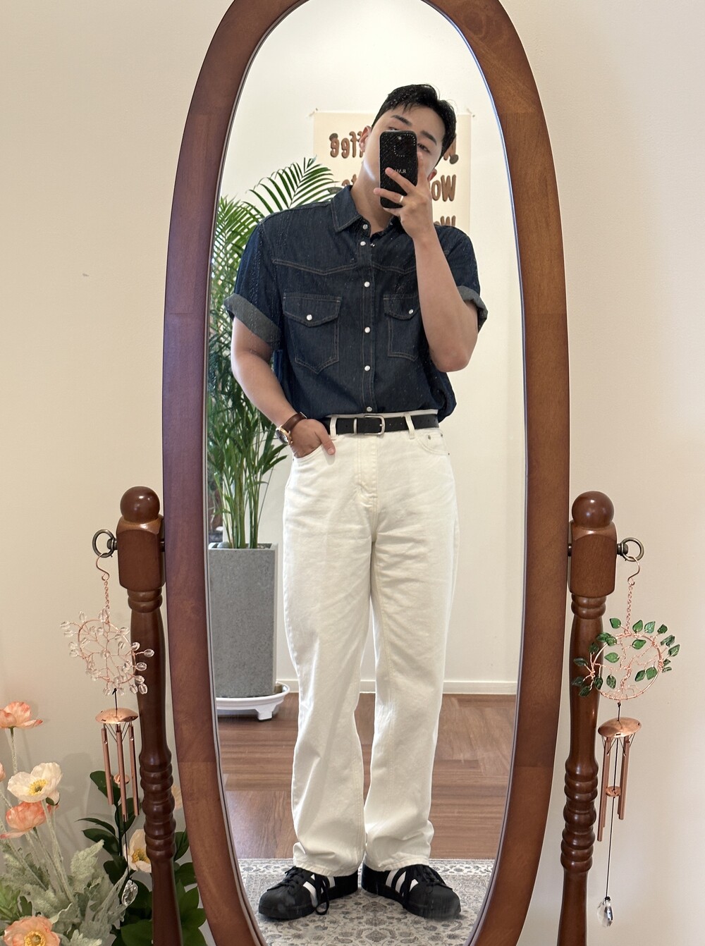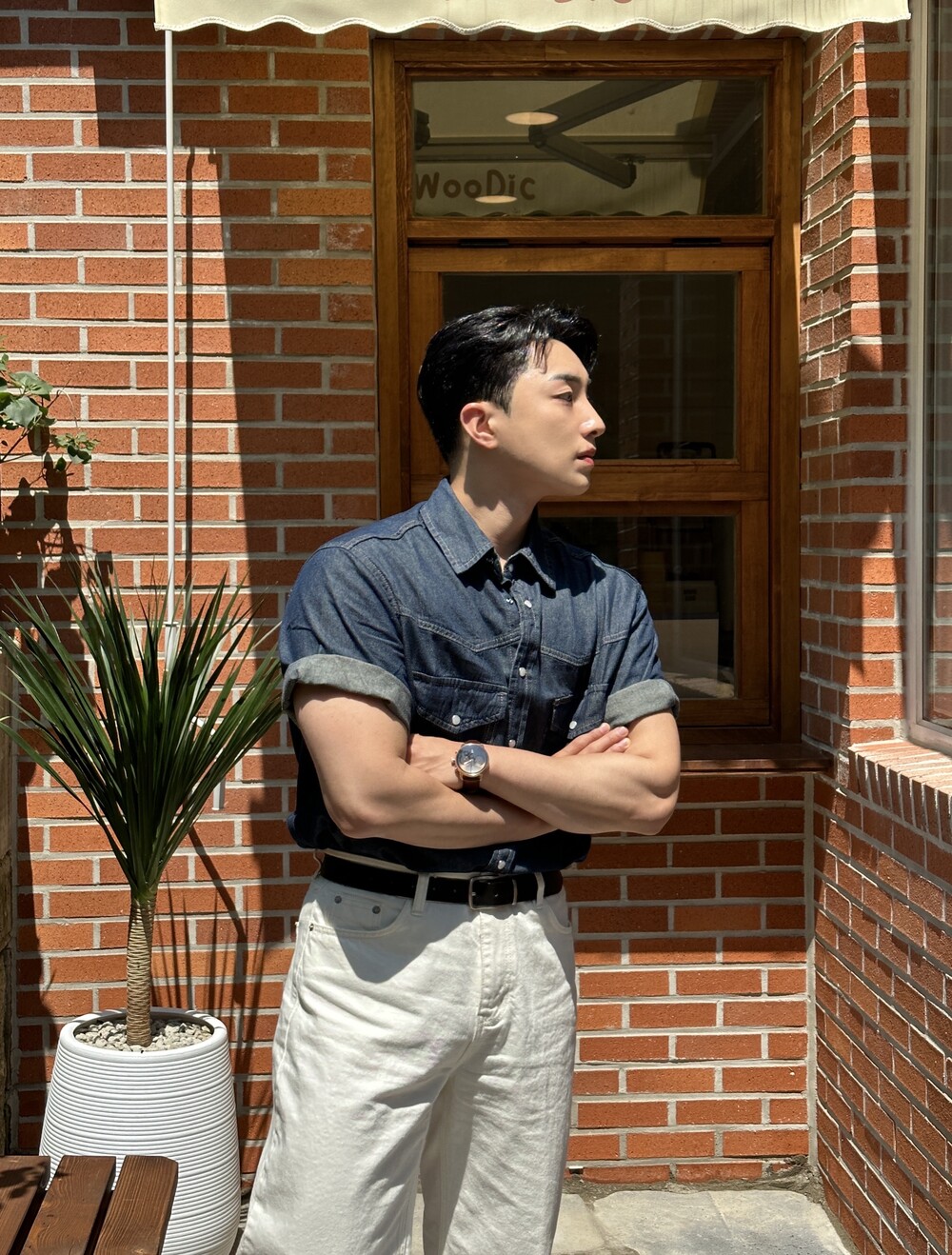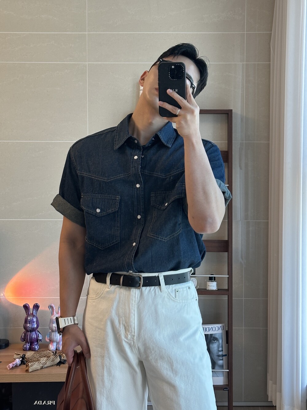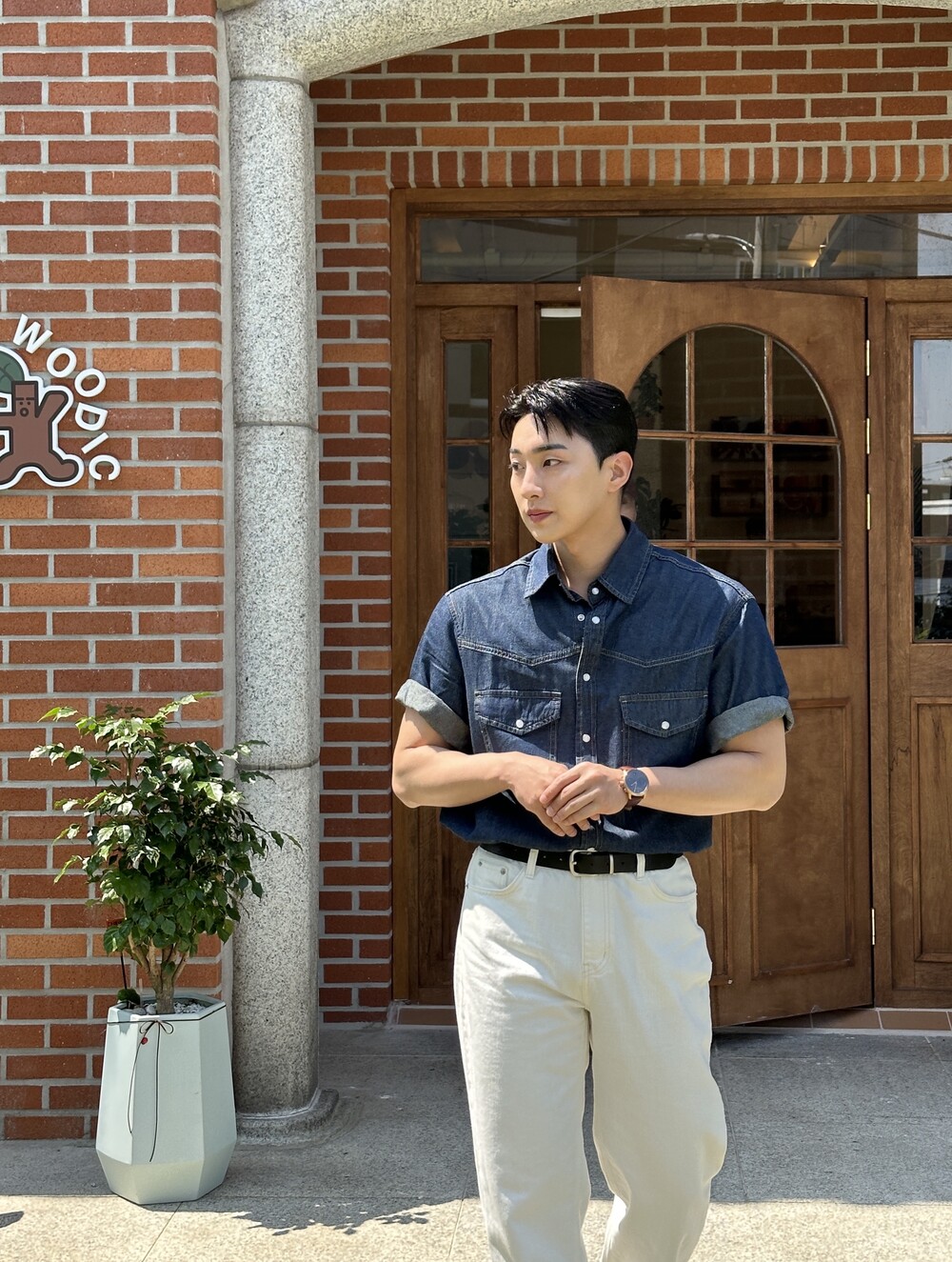 웨스턴 사이드 데님 하프 셔츠 (2 color)
