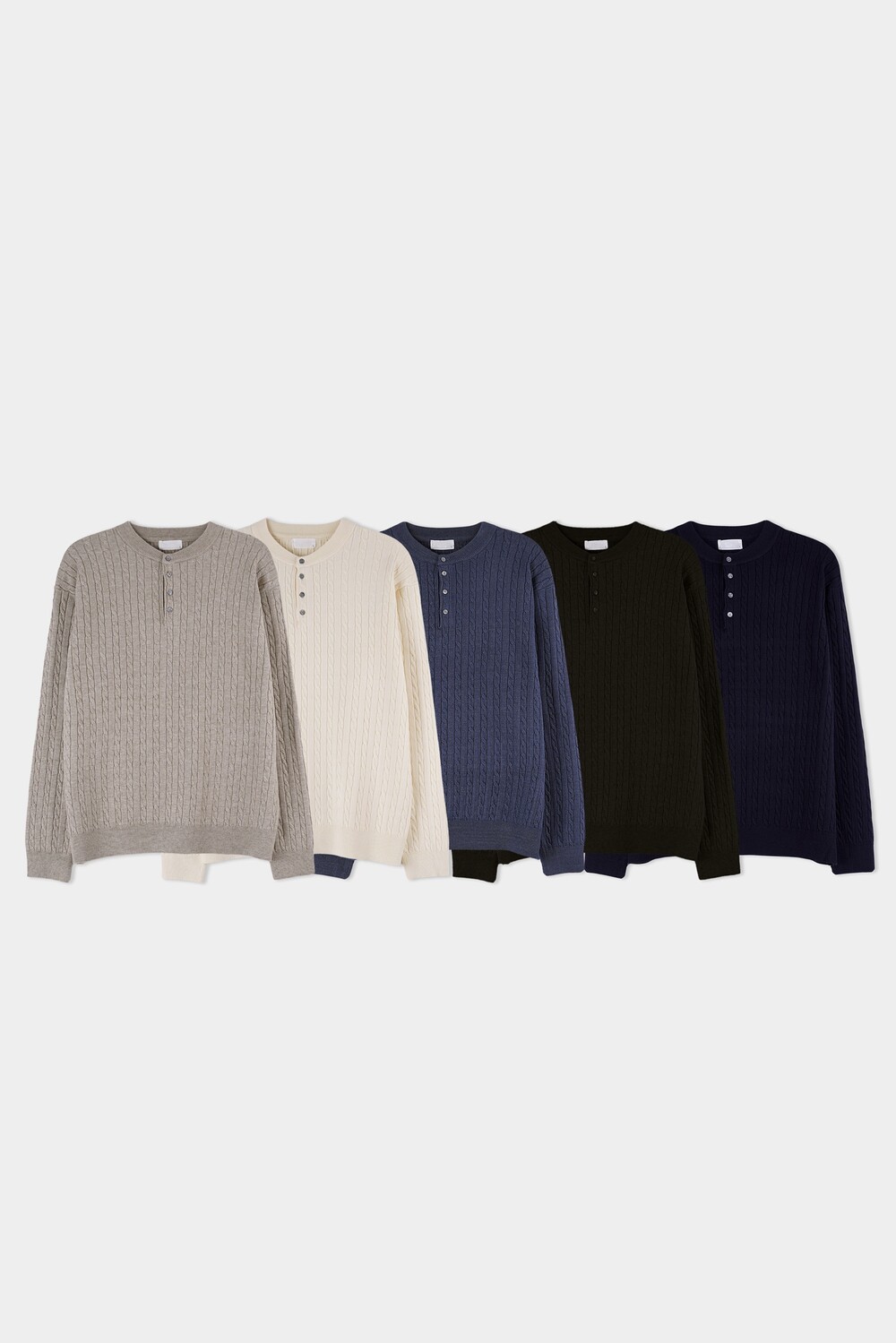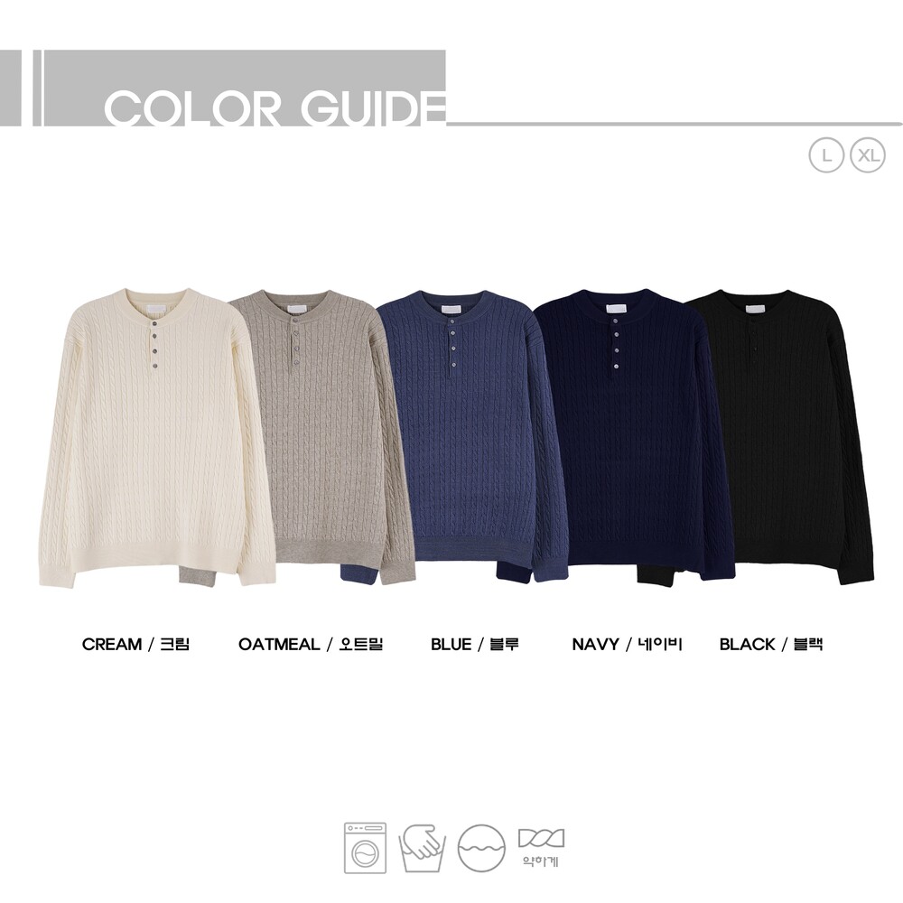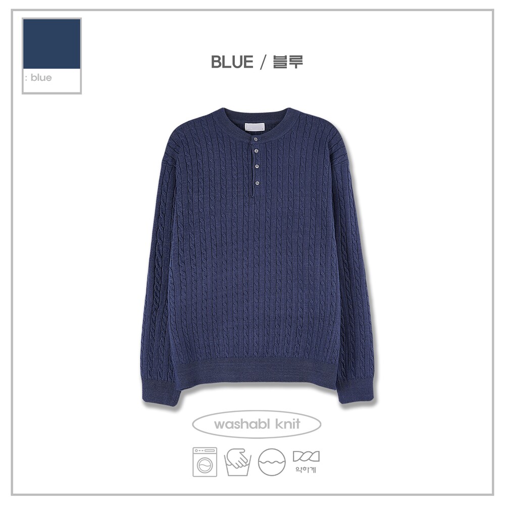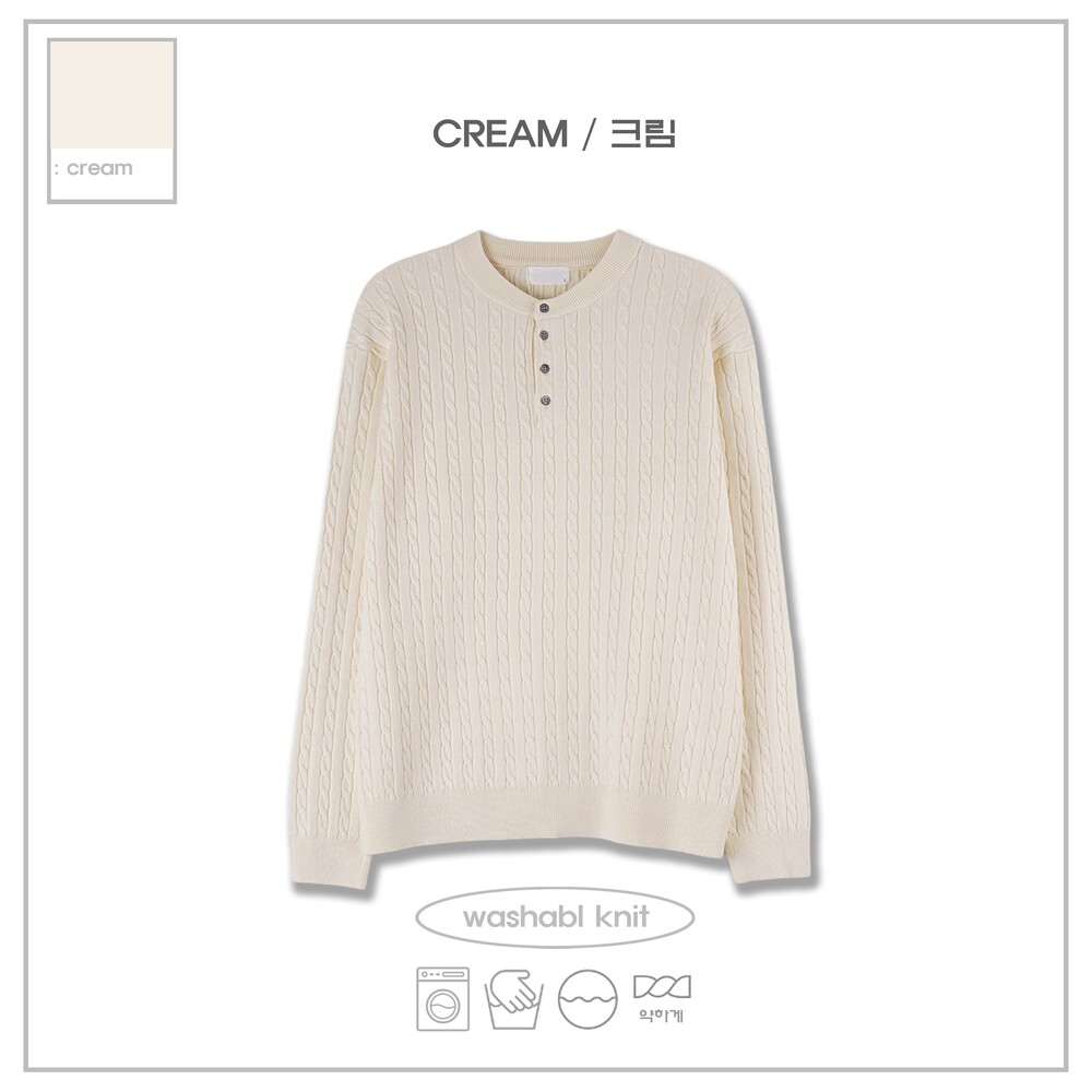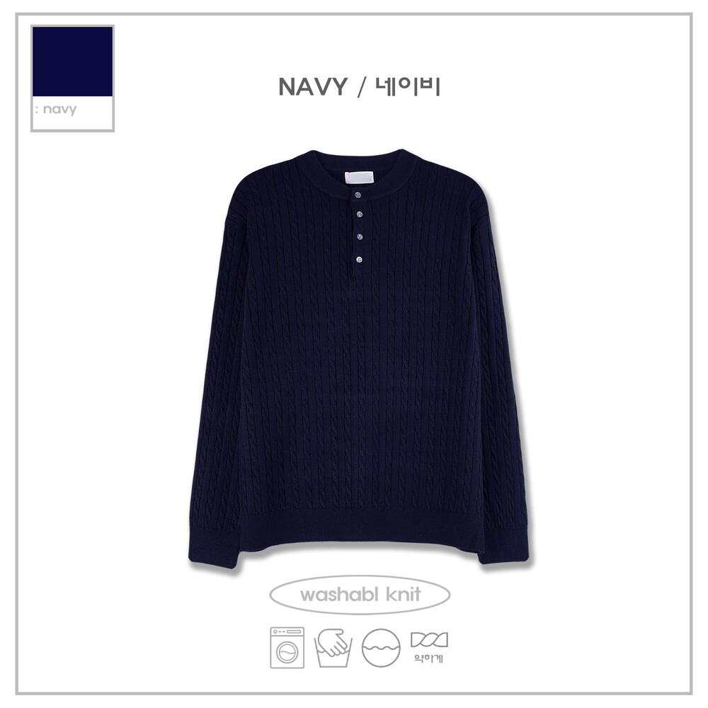 워셔블 케이블 헨리넥 라운드 니트 (5 Color)