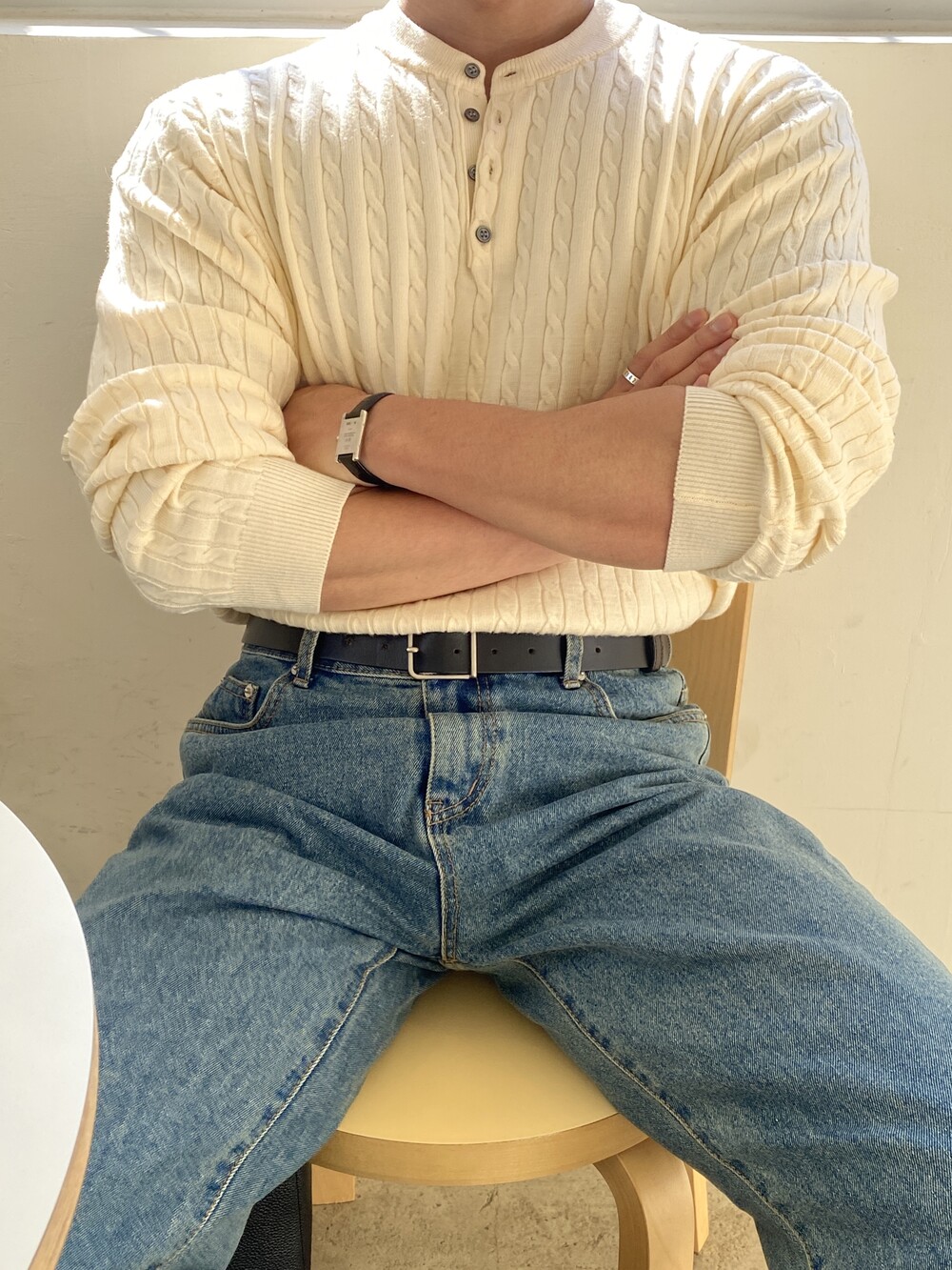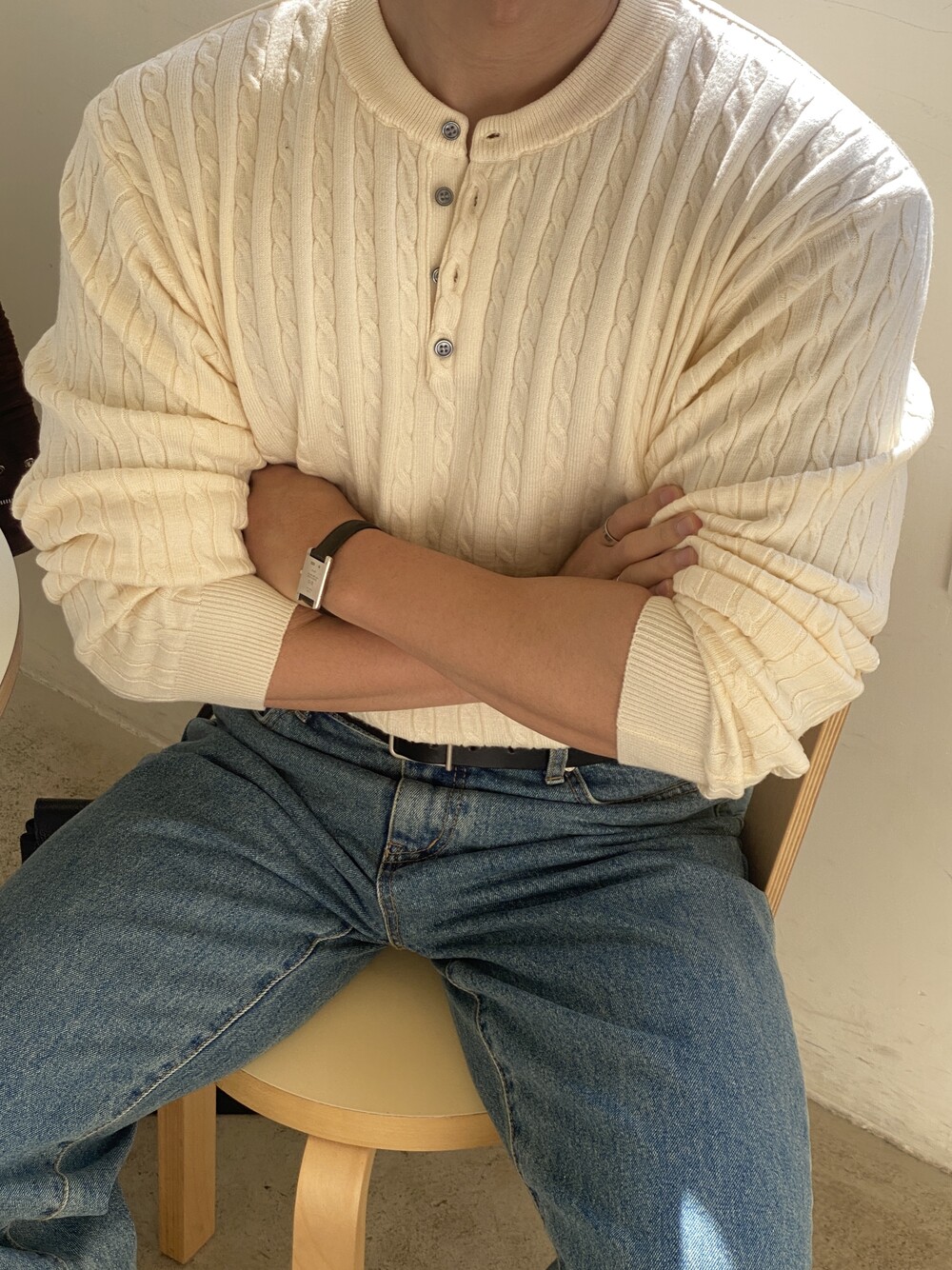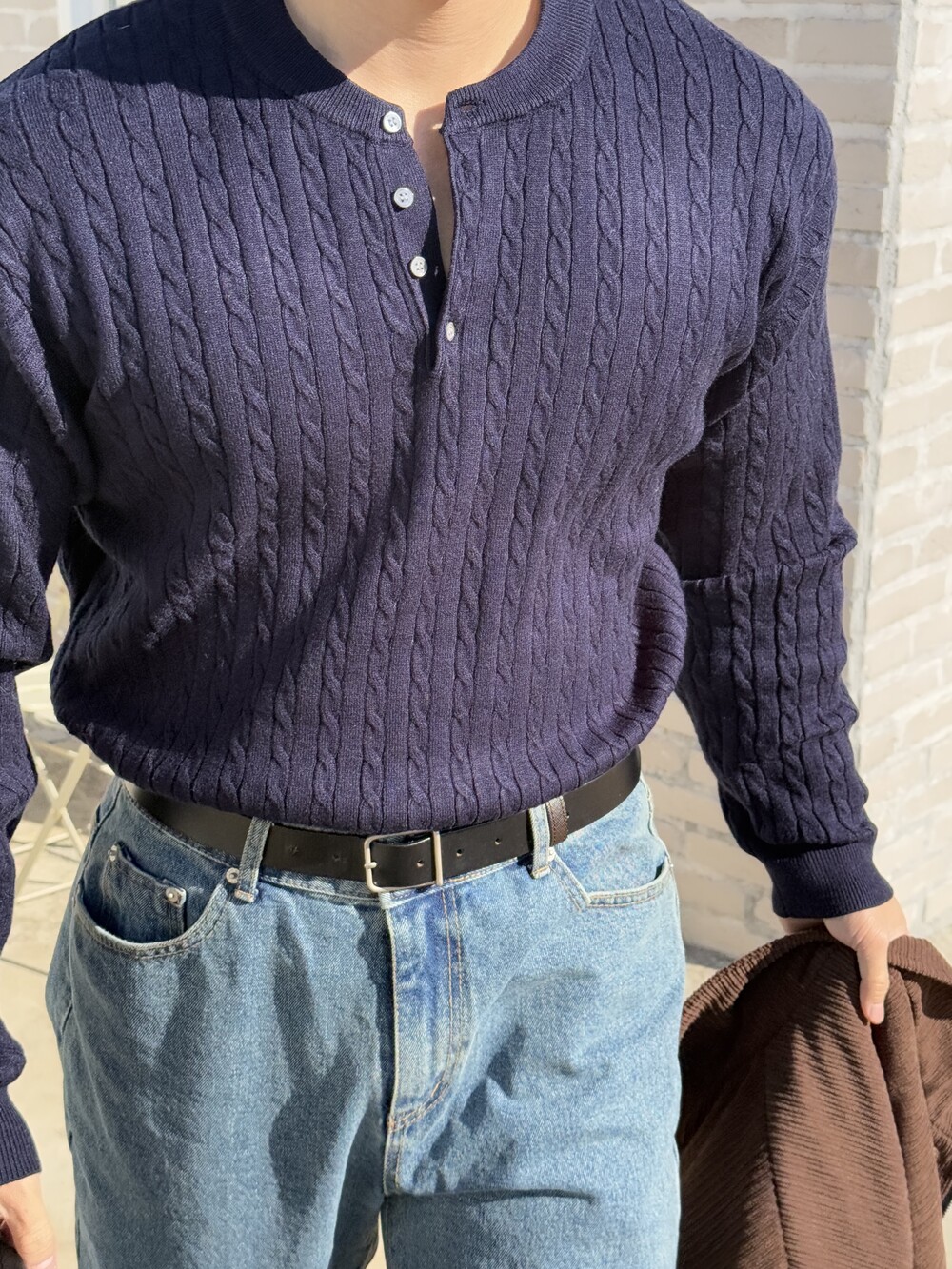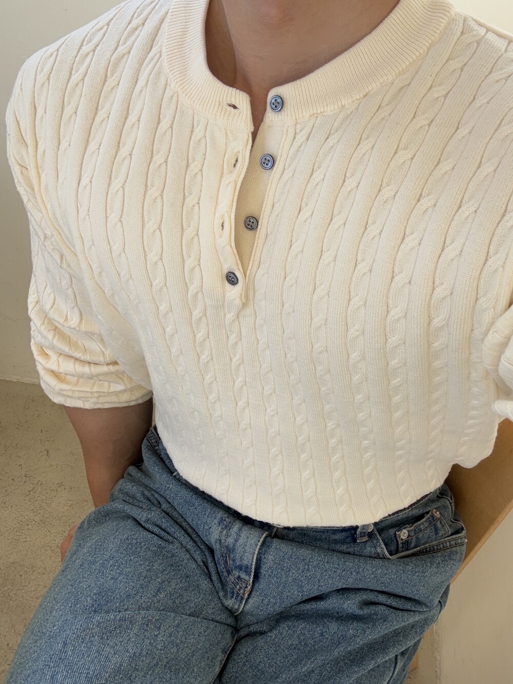 워셔블 케이블 헨리넥 라운드 니트 (5 Color)