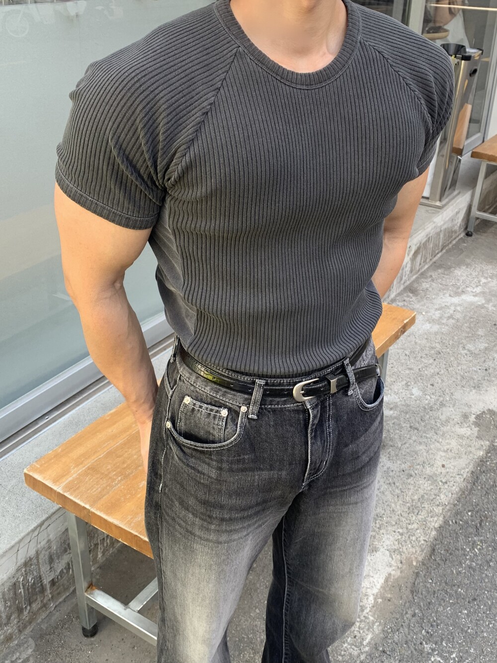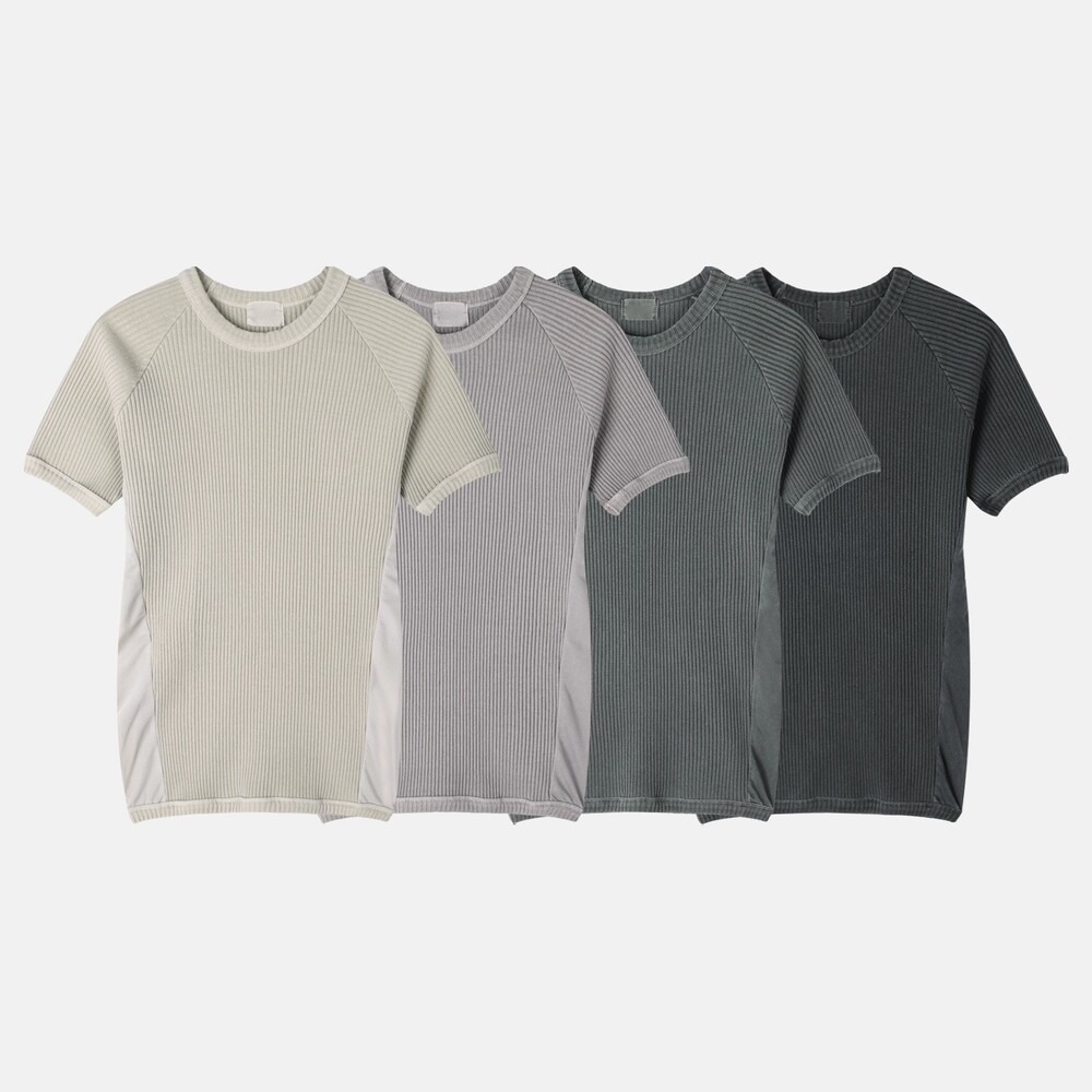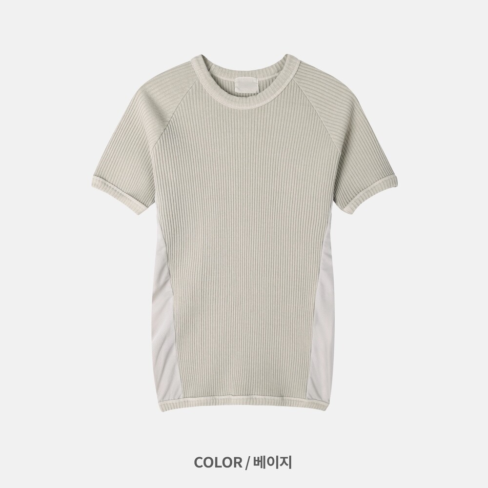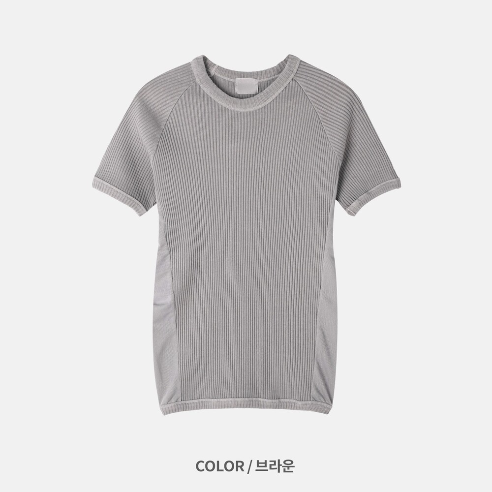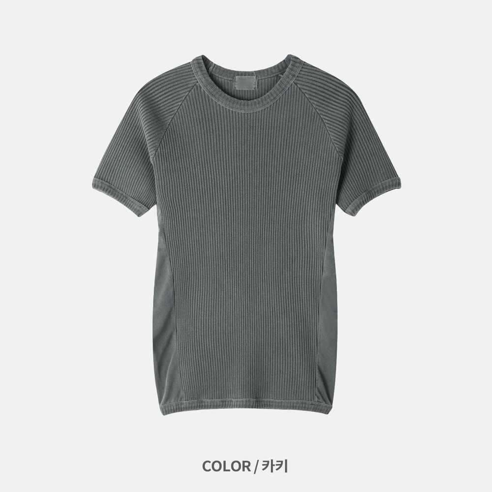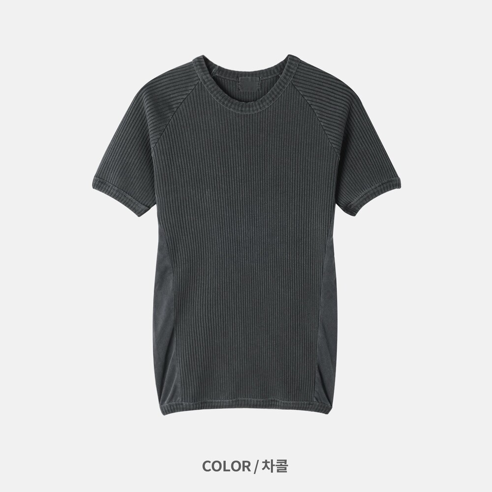 배색 매쉬 피그먼트 골지 머슬핏 반팔 (4 Color)