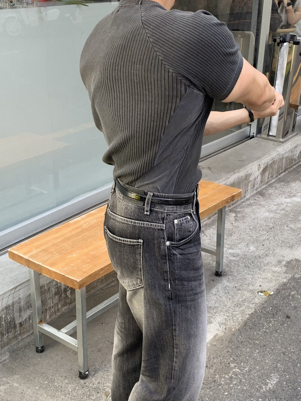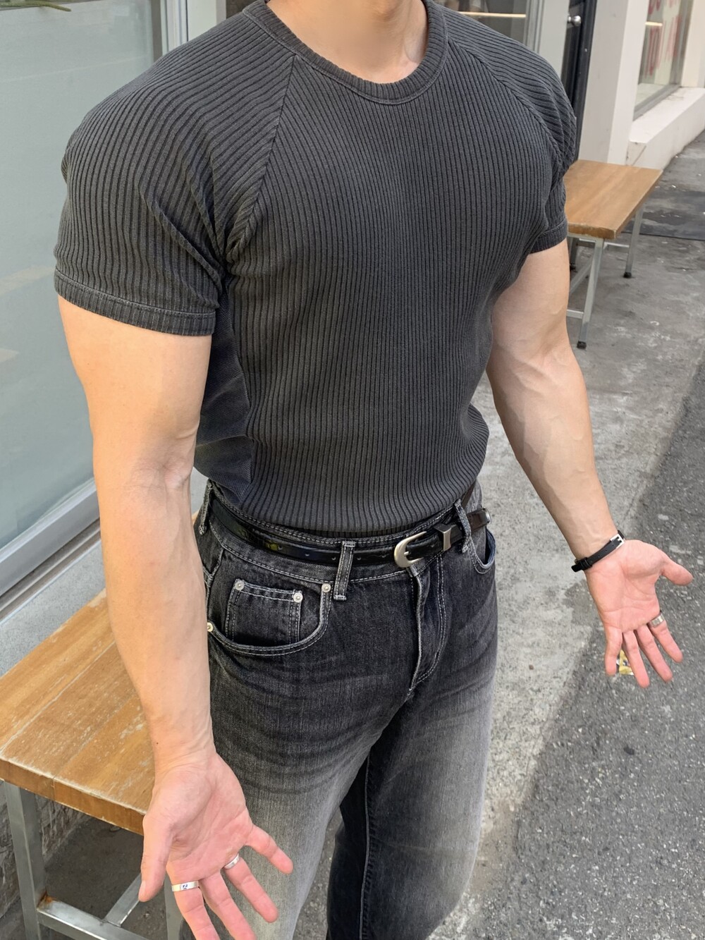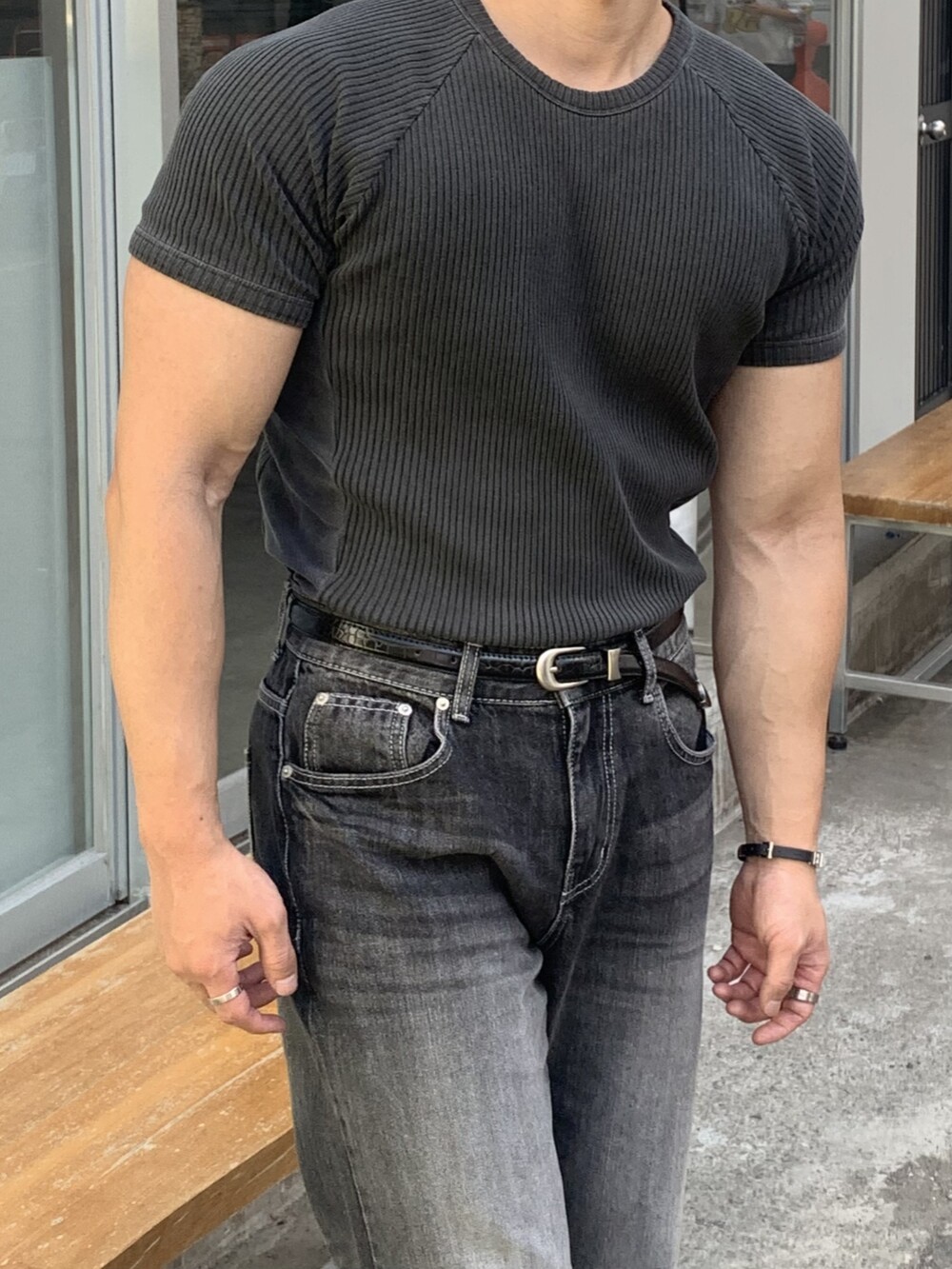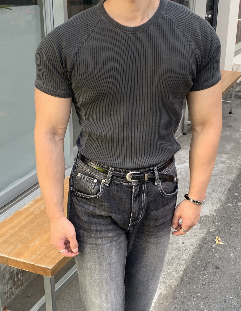 배색 매쉬 피그먼트 골지 머슬핏 반팔 (4 Color)