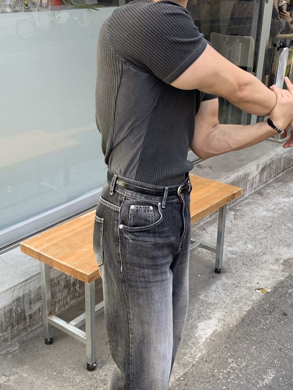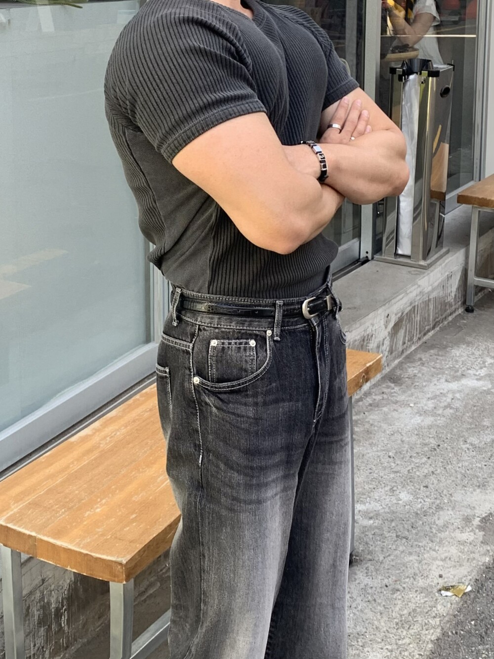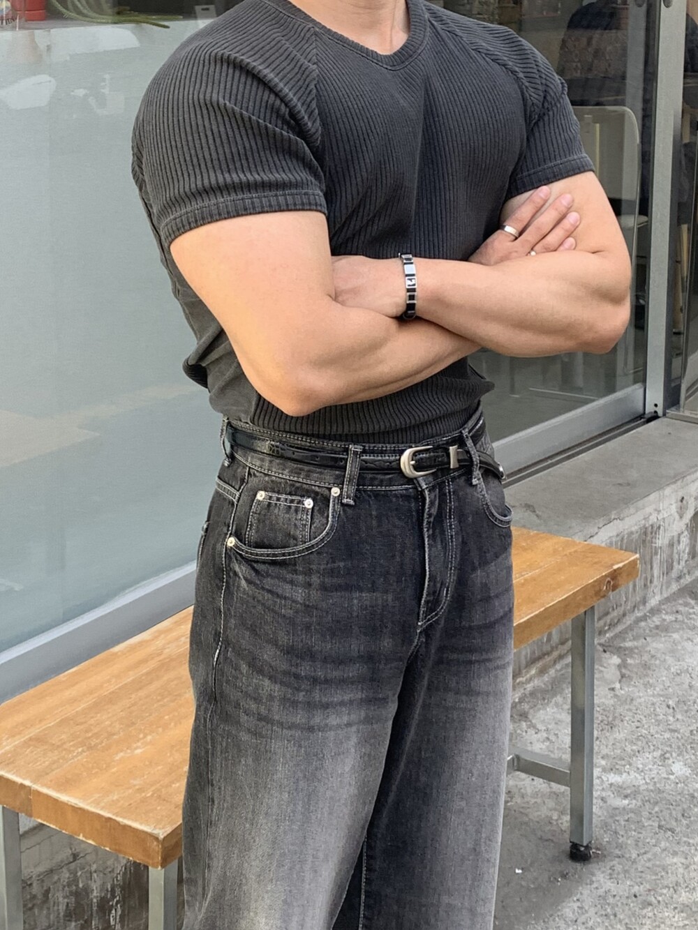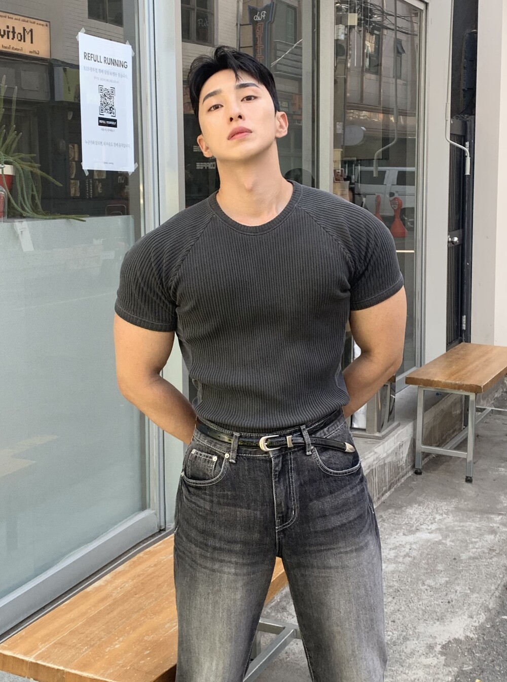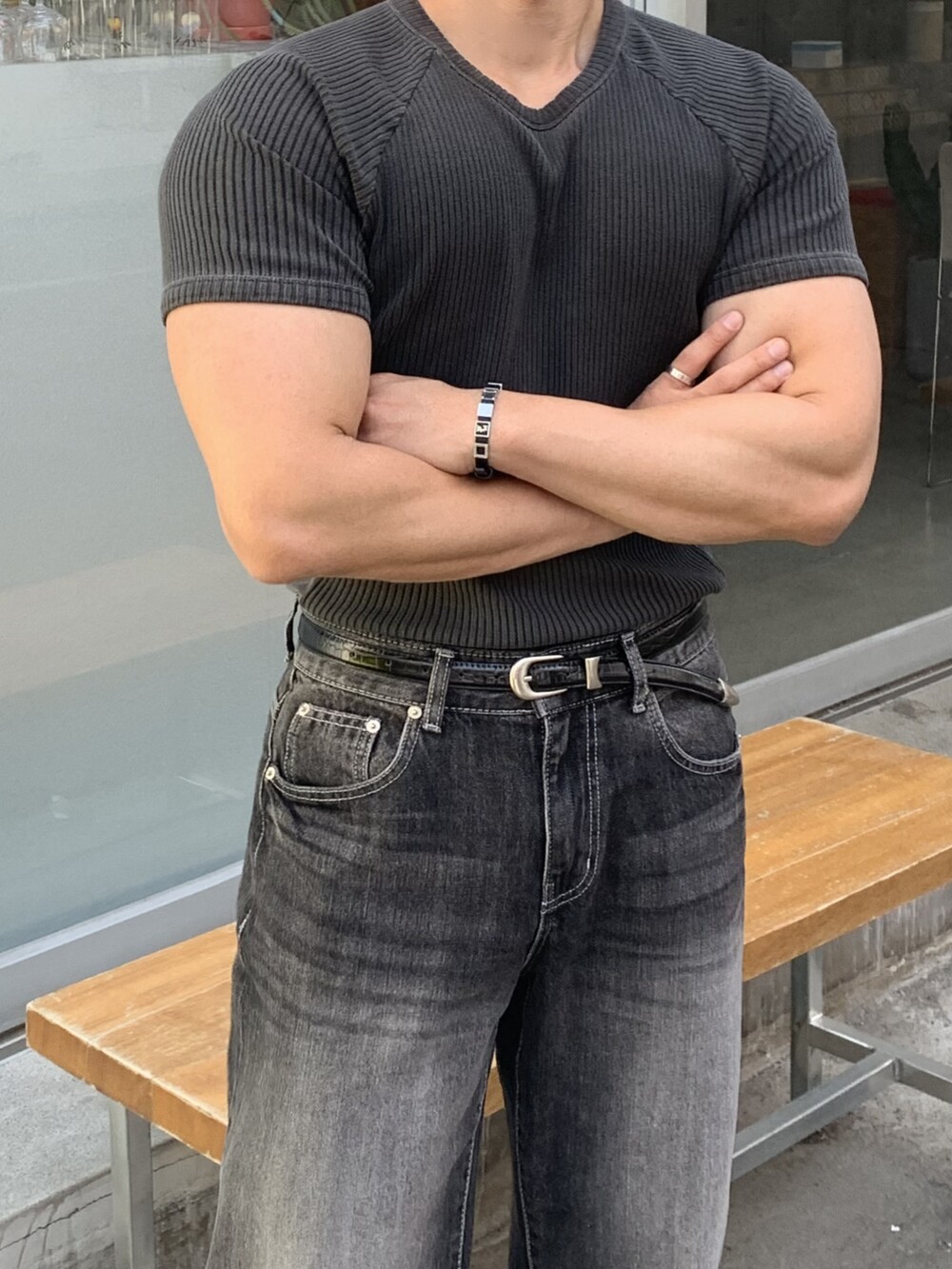 배색 매쉬 피그먼트 골지 머슬핏 반팔 (4 Color)