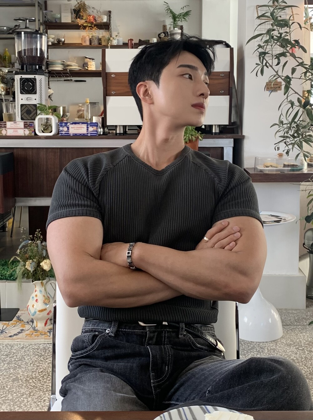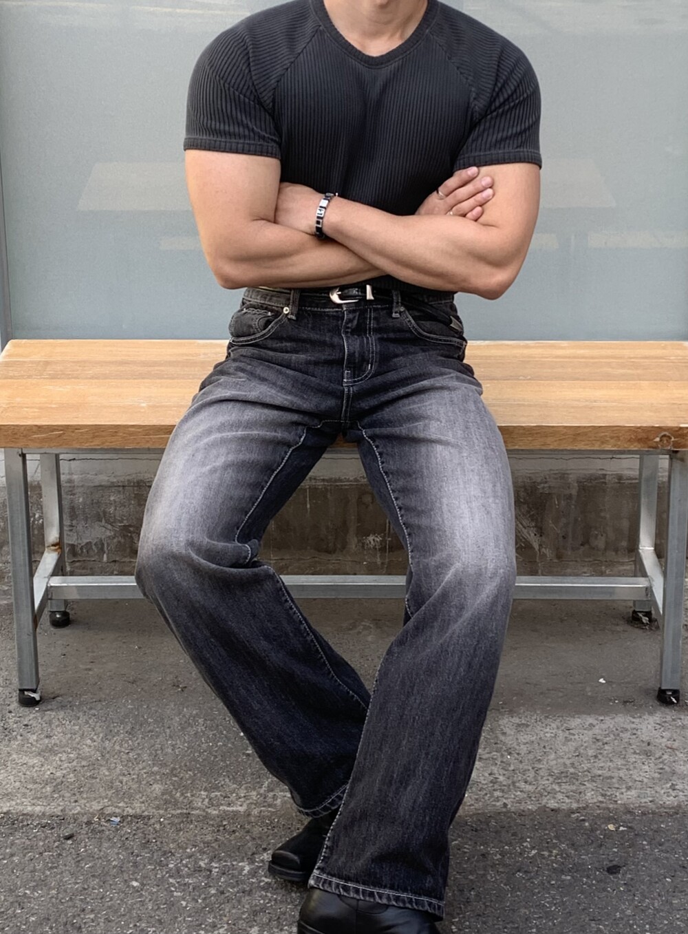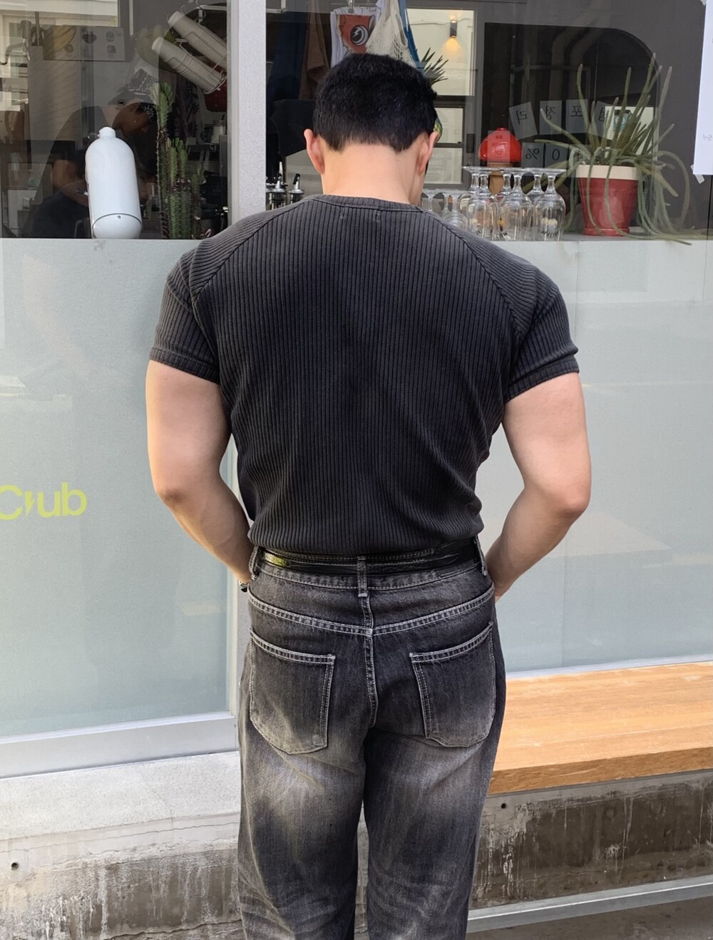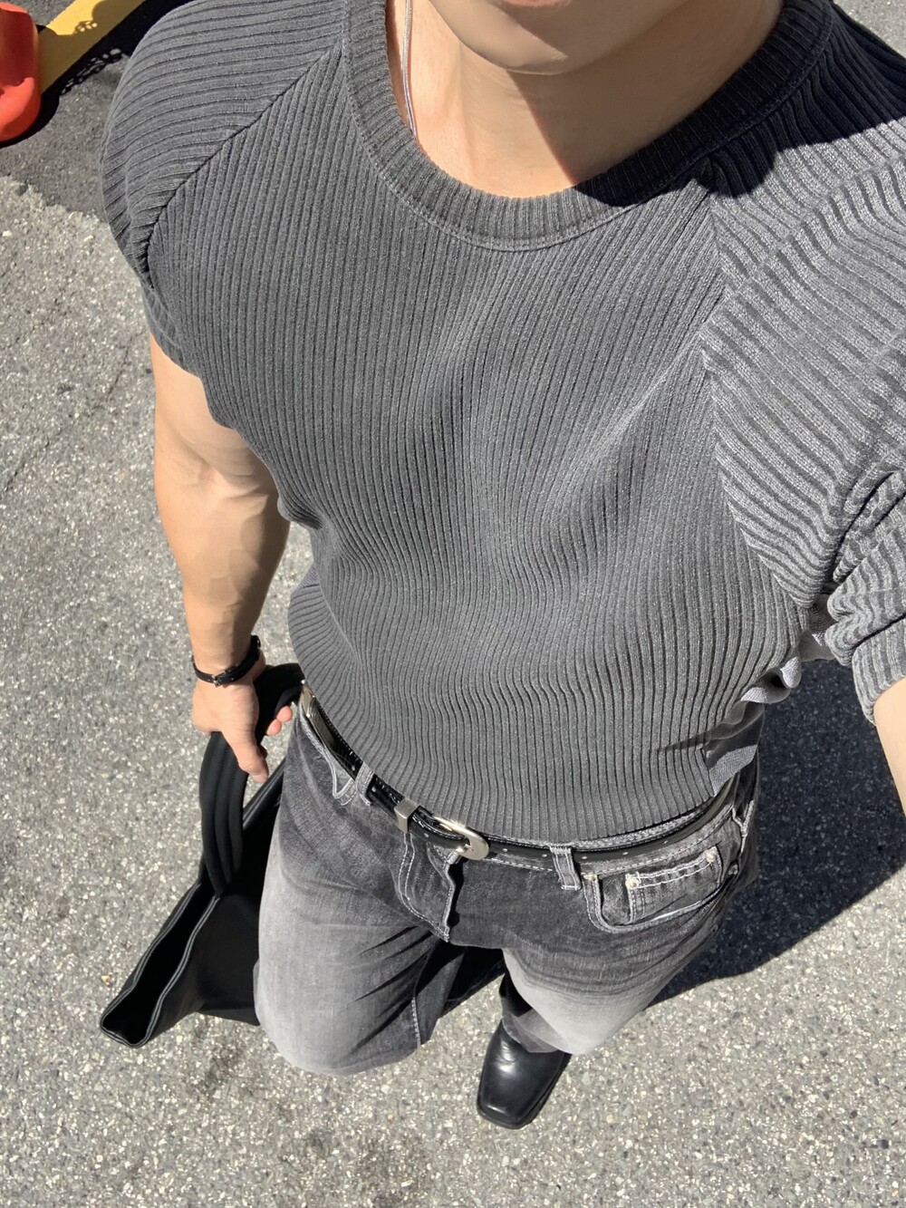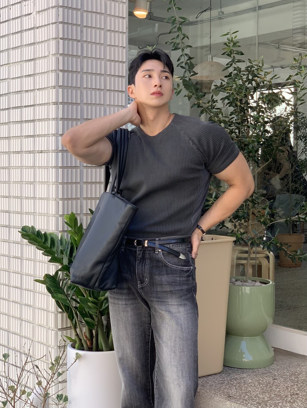 배색 매쉬 피그먼트 골지 머슬핏 반팔 (4 Color)