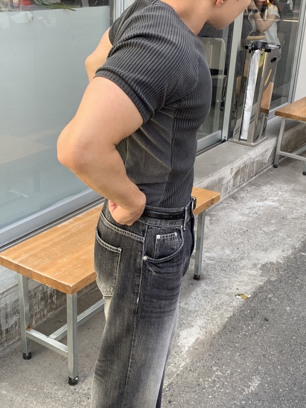 [주문폭주] 배색 매쉬 피그먼트 골지 머슬핏 반팔 (4 Color)