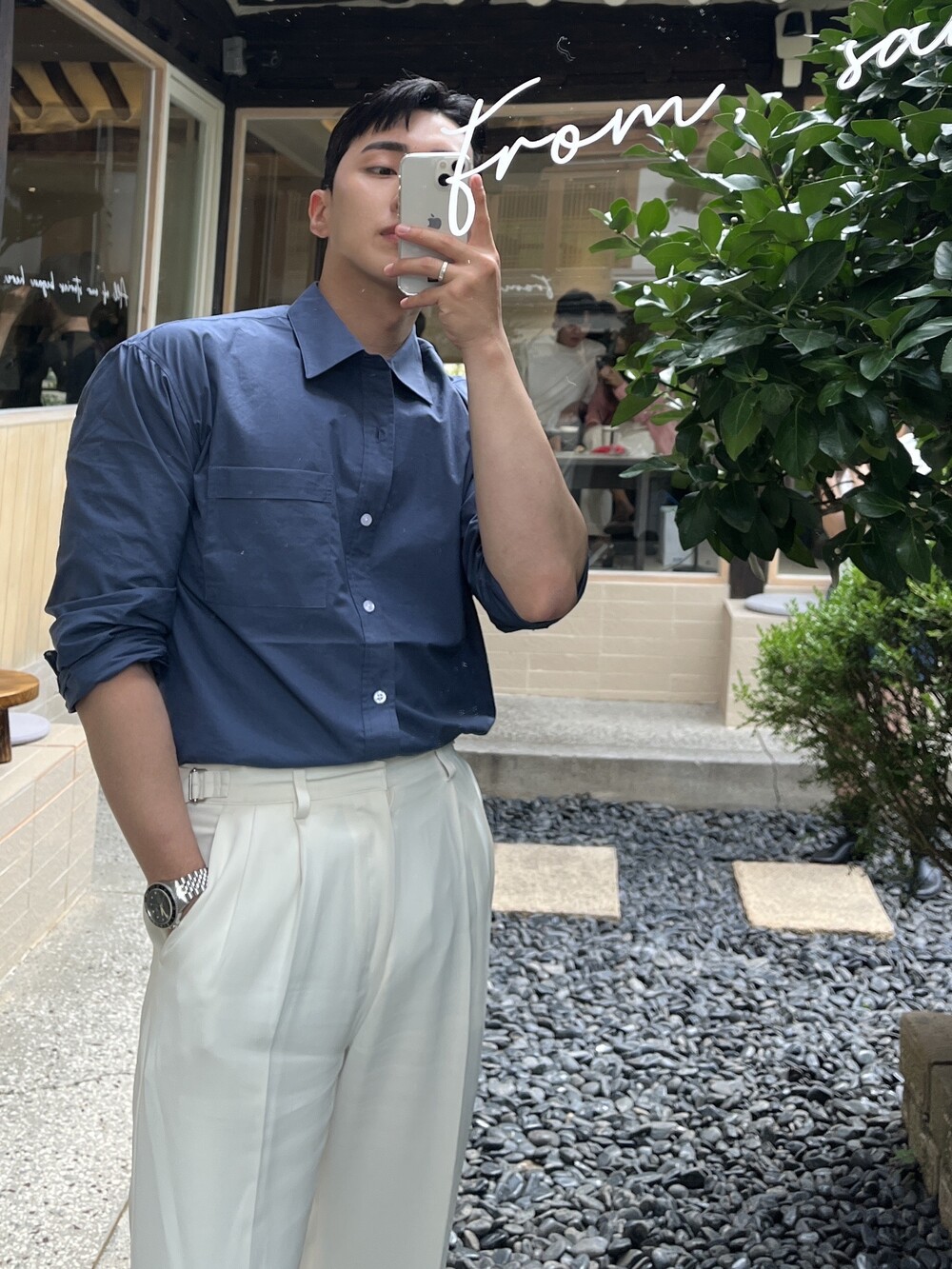 L 사이즈는 핏 하게 잘 맞는 실루엣,
