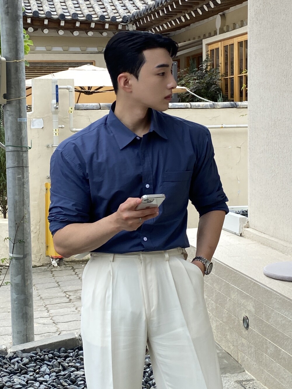-일반 흐물 흐물한 재질이 아닌 탄탄하고 적당히 빳빳한 재질의 프리미엄 셔츠