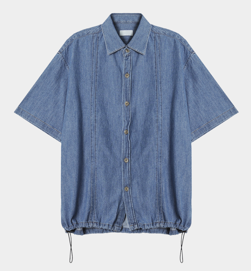 콜먼 데님 스트링 반팔 셔츠