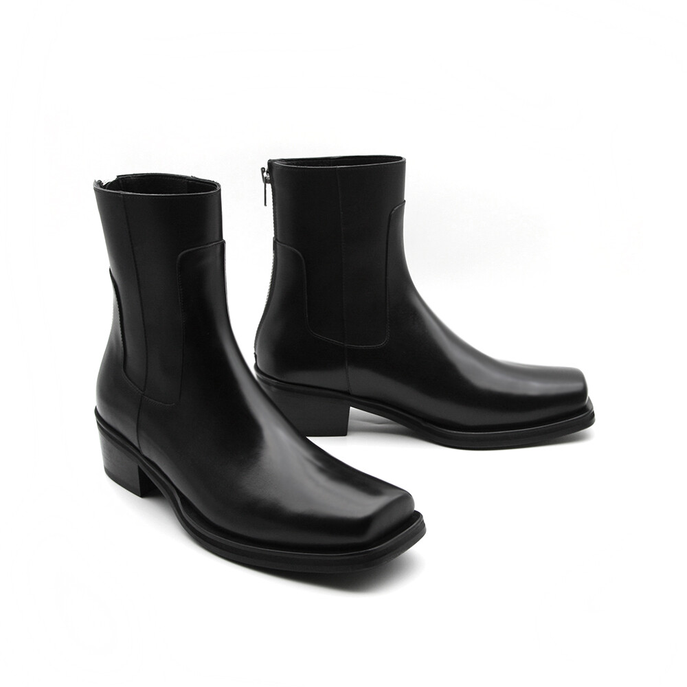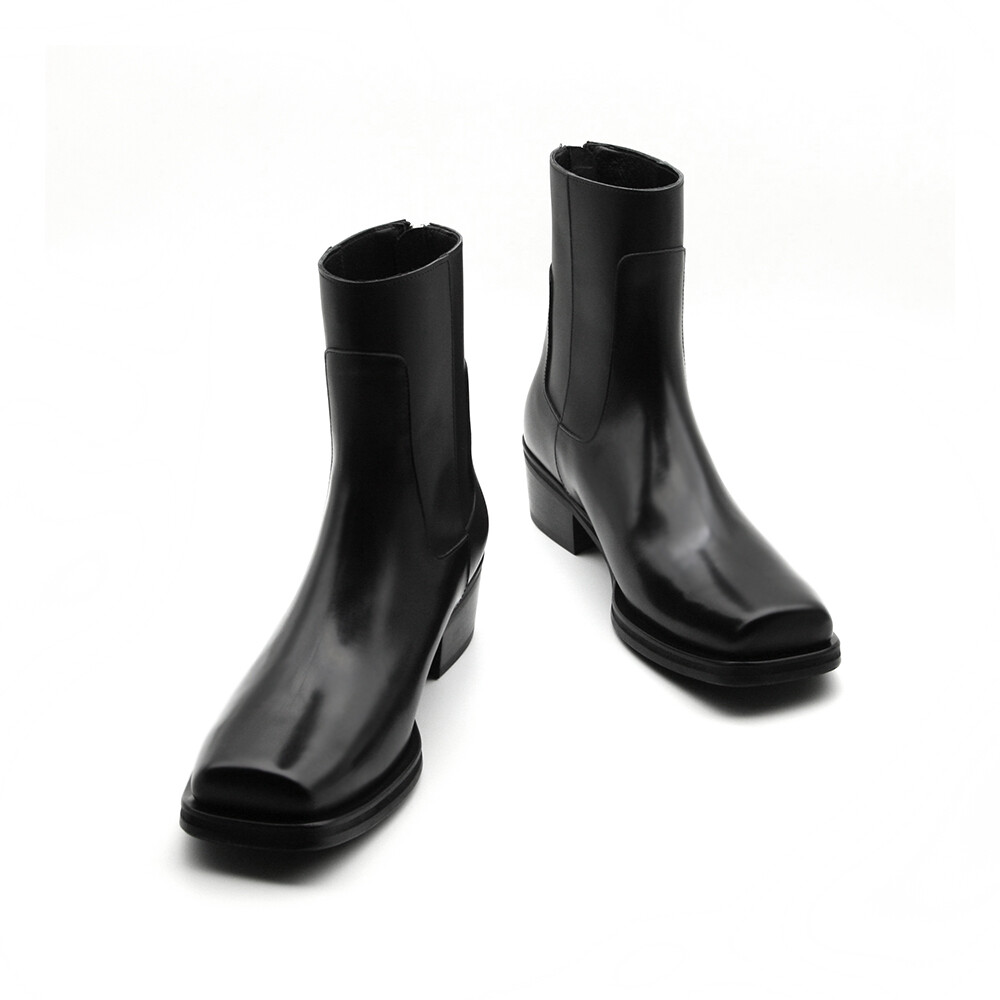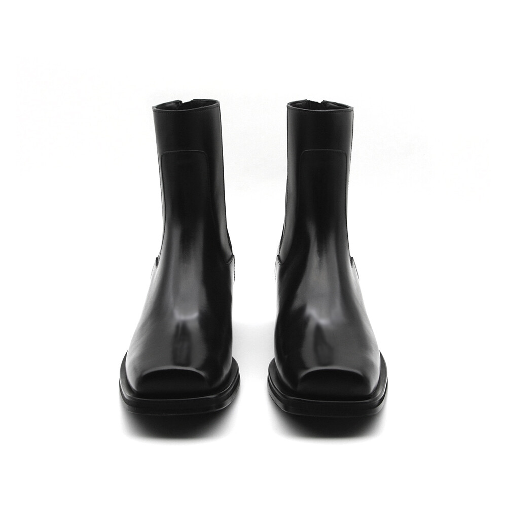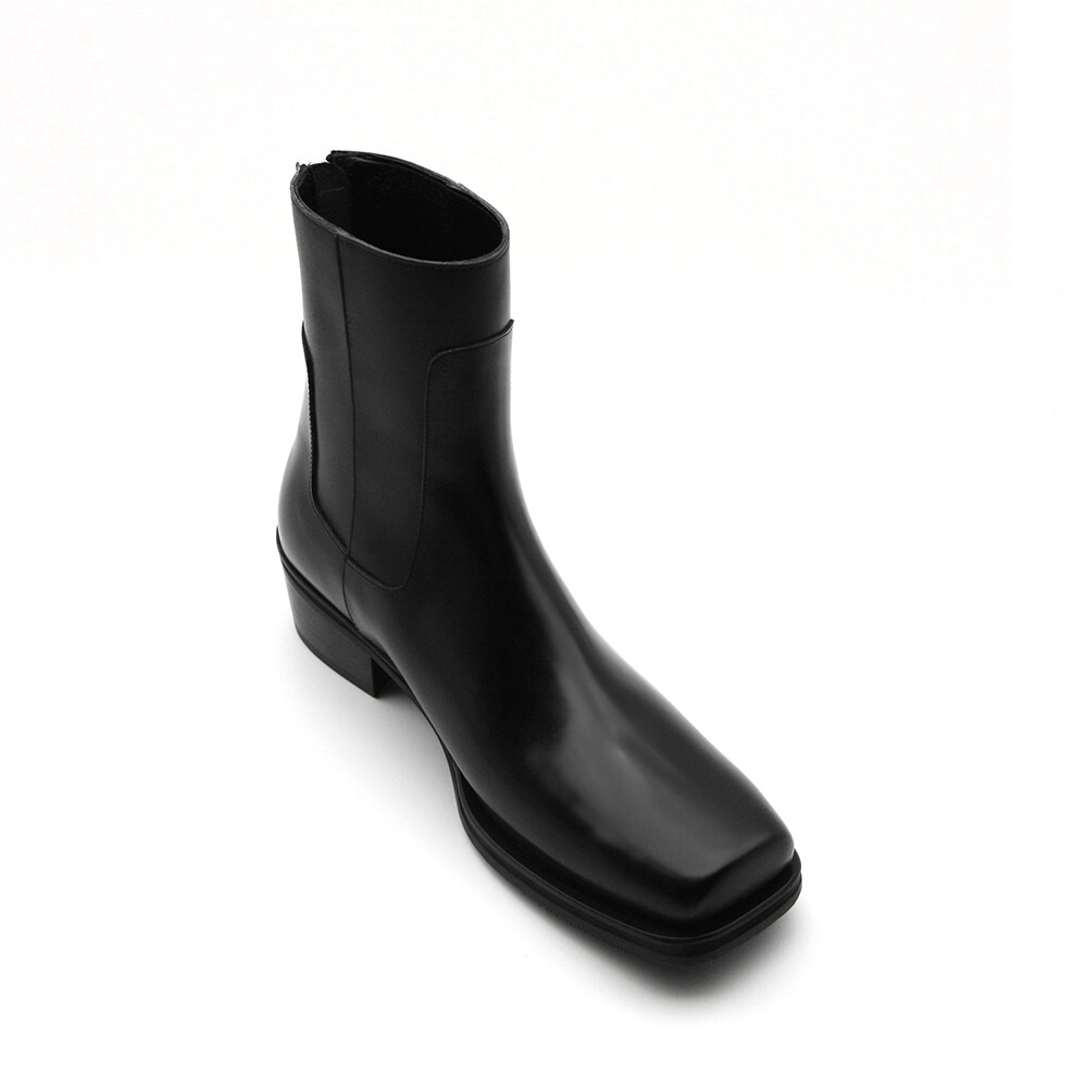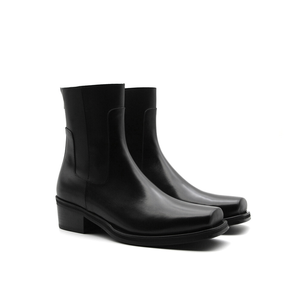 마르 수제 소가죽 앵클 부츠 - Black (굽 5.3cm)
