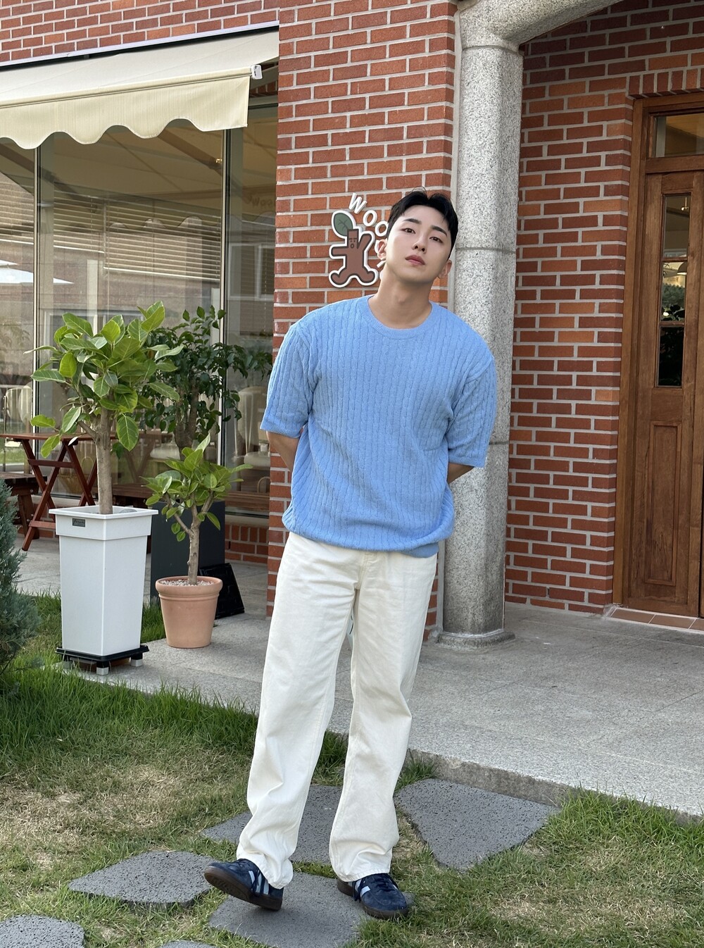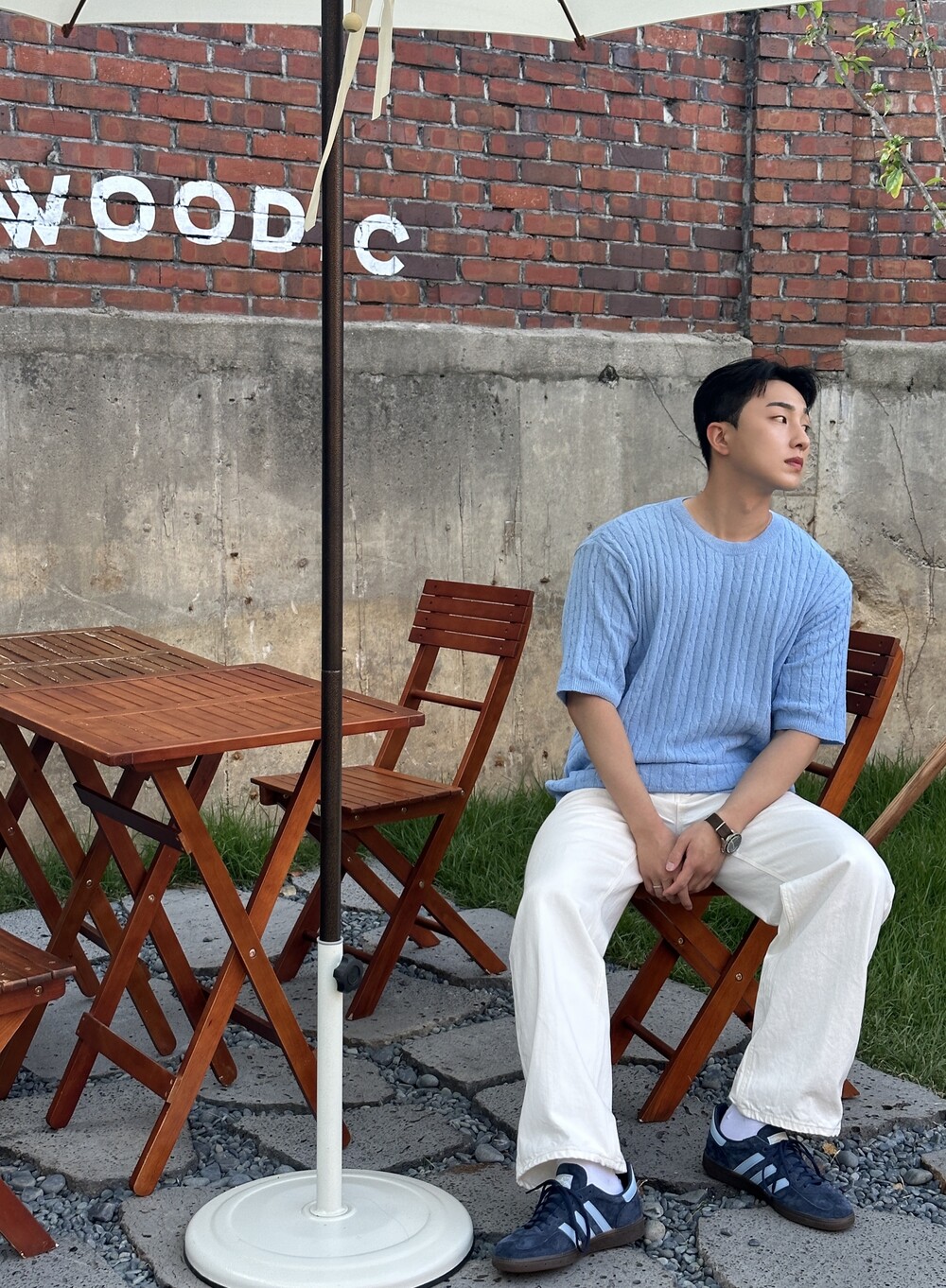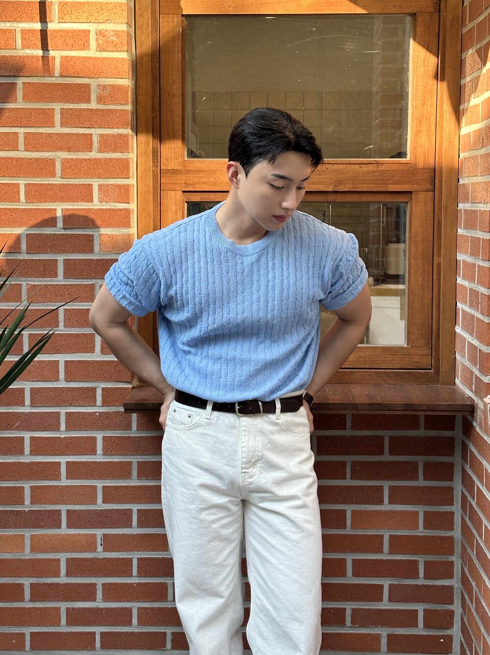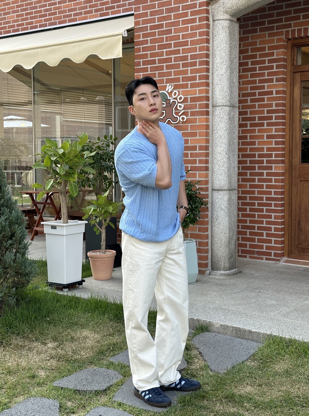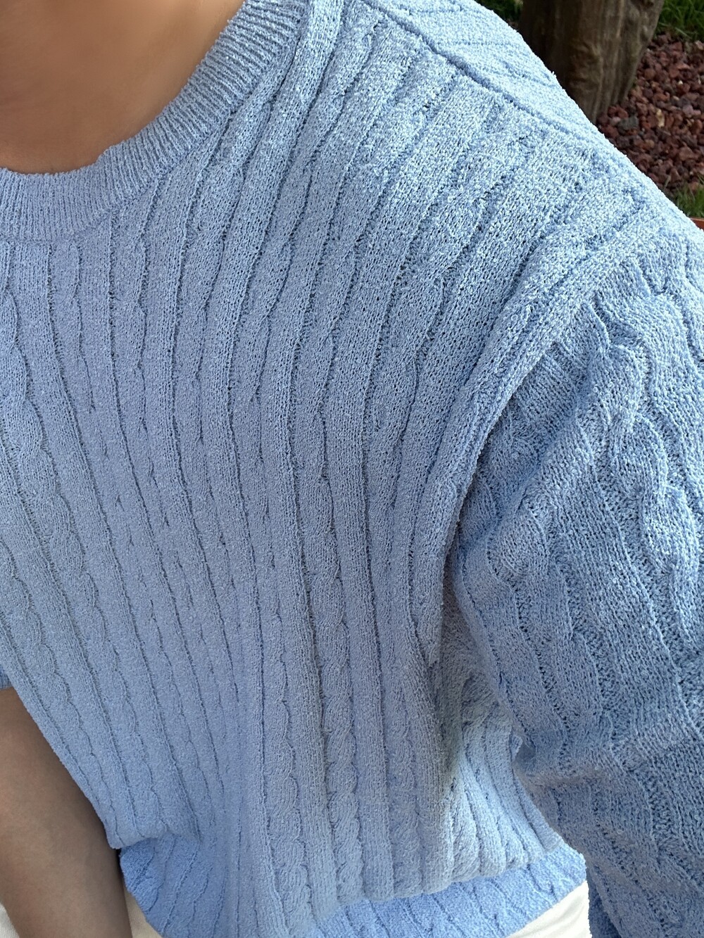 -얇은 원사실의 부클실로 시원한 느낌을 잘 살린 니트