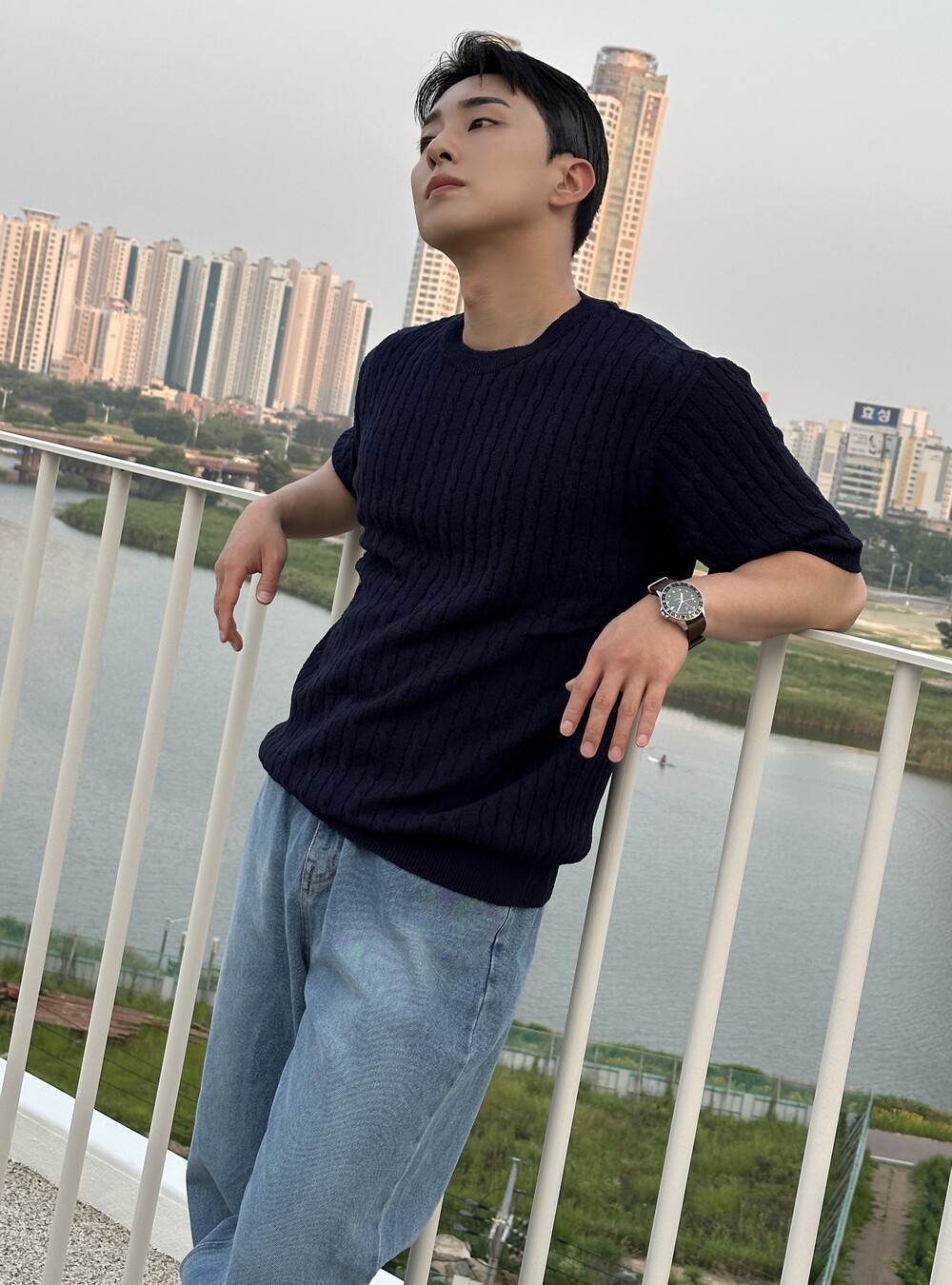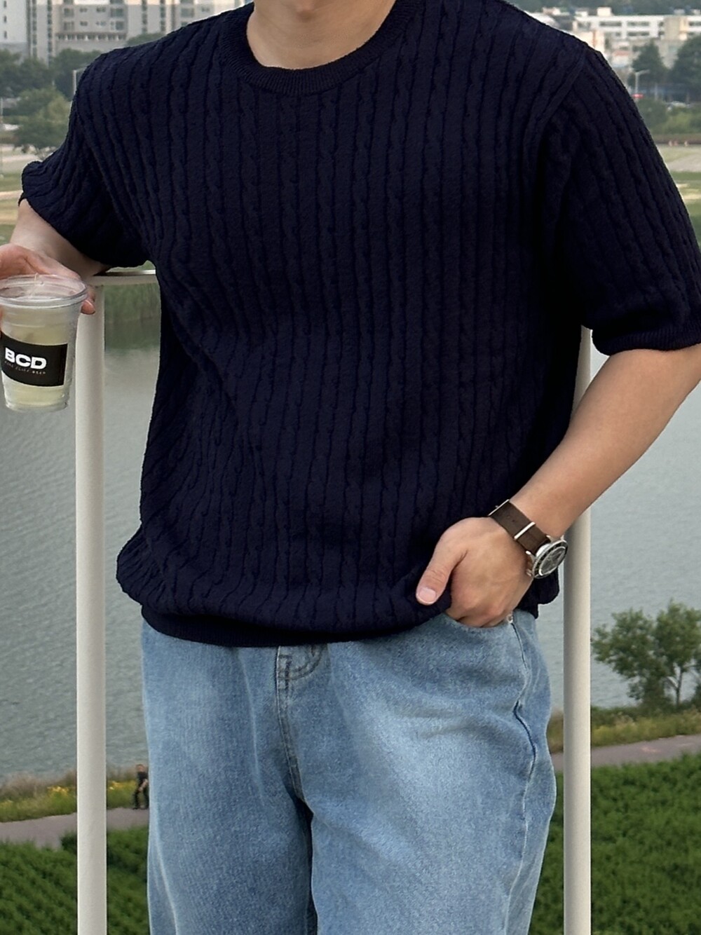 -적당한 넓이의 꽈배기 편직으로 포인트