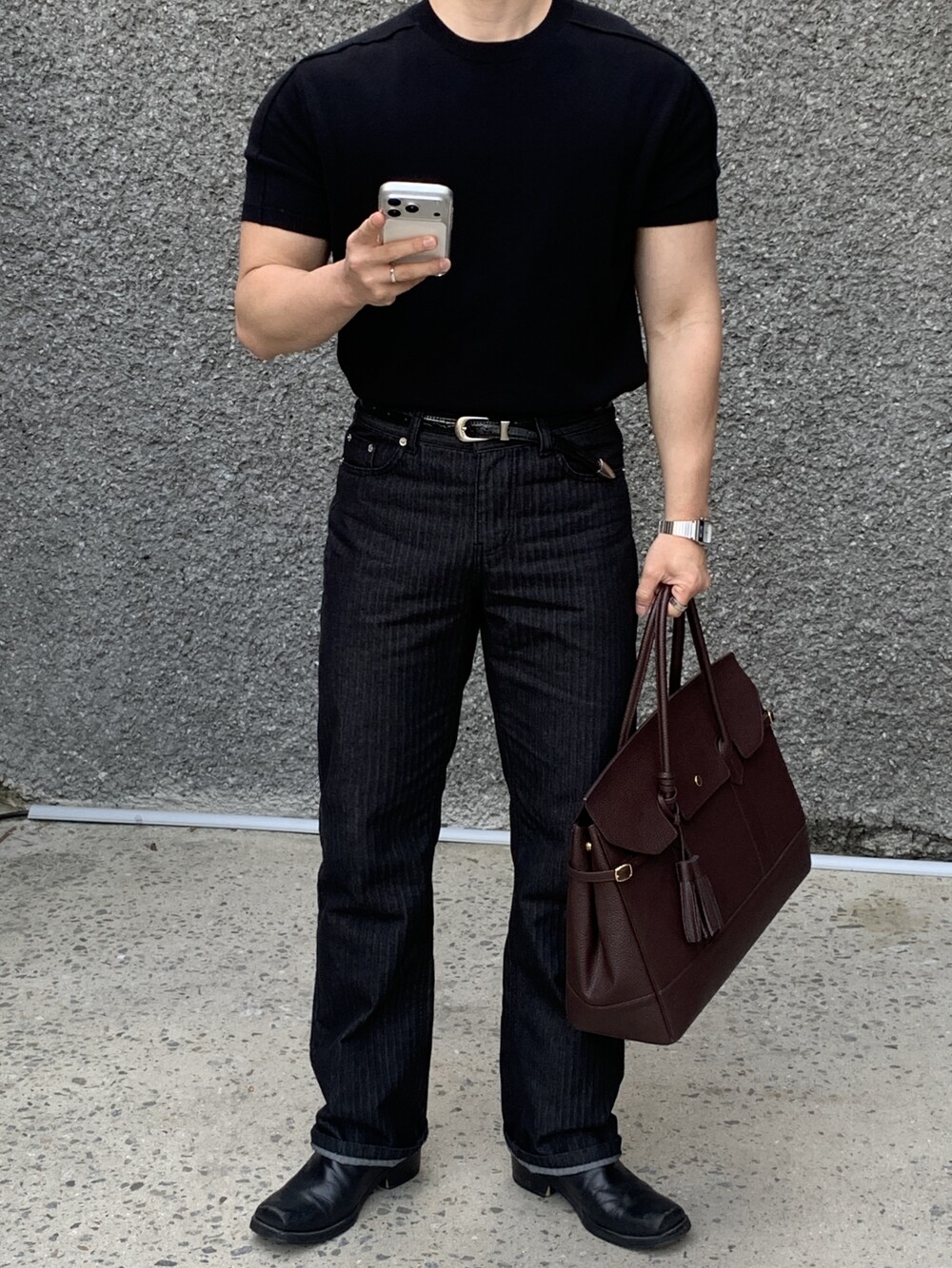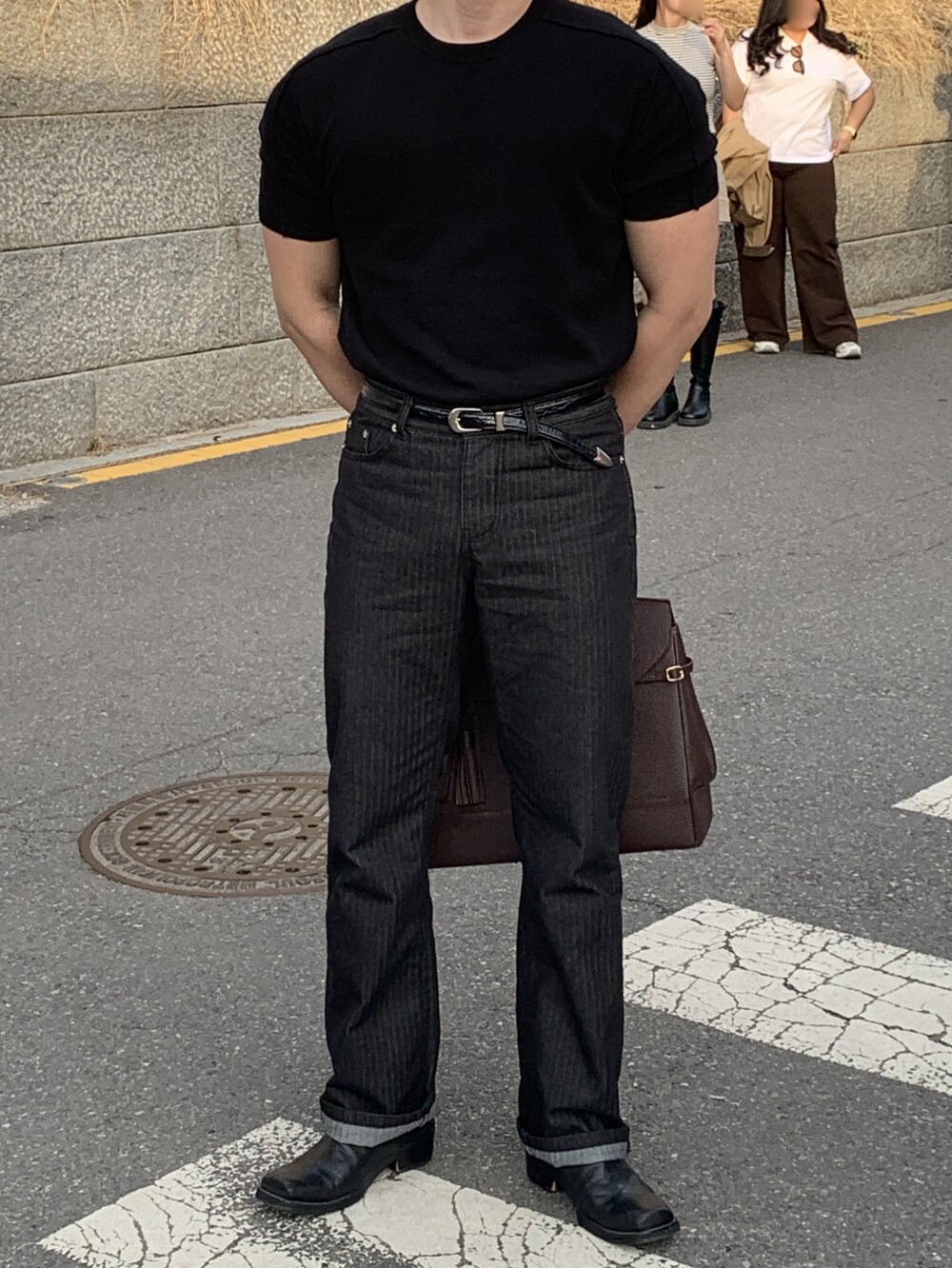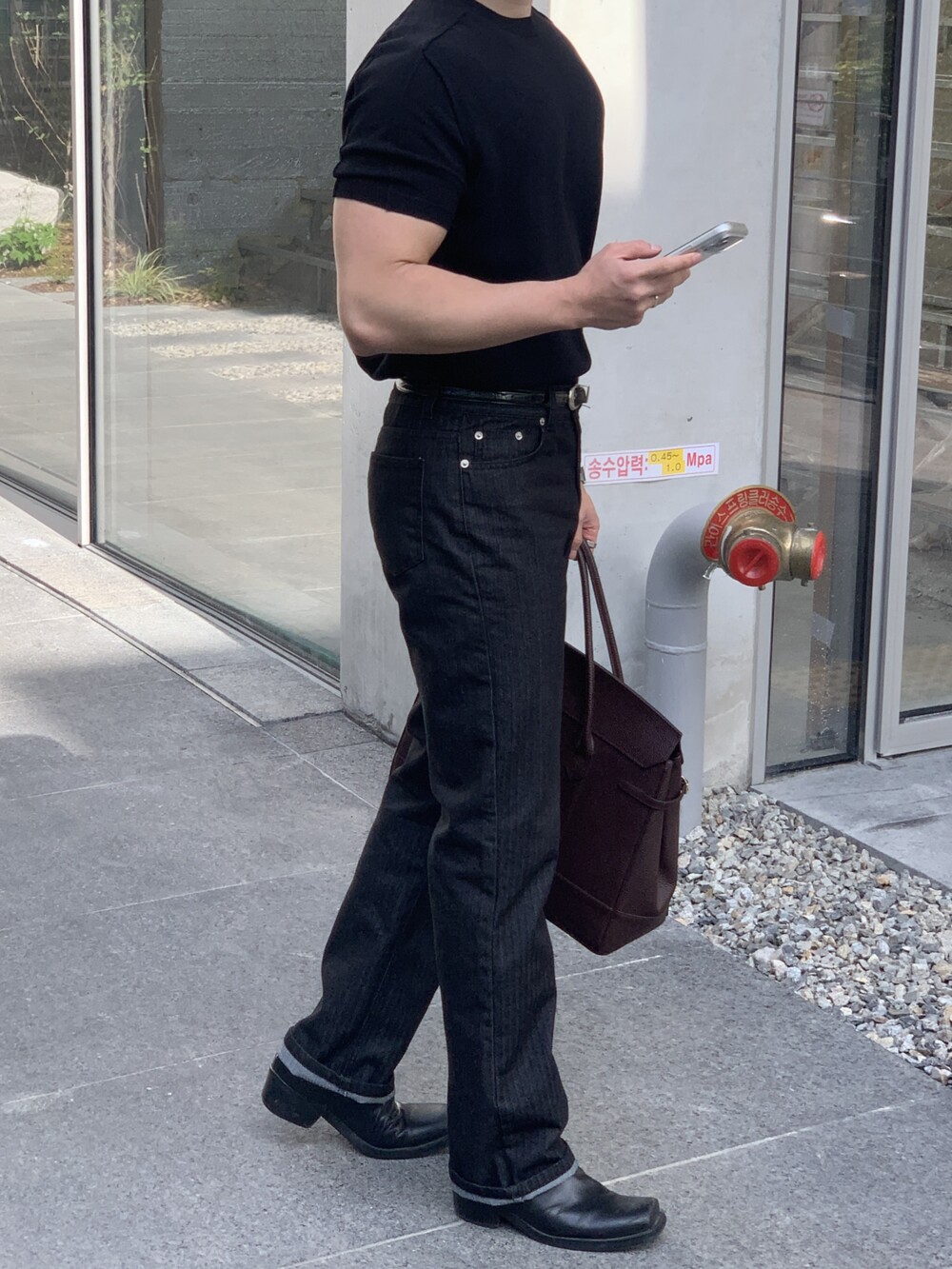 스트레이트로 떨어지는 실루엣이 매력적인 블랙 진