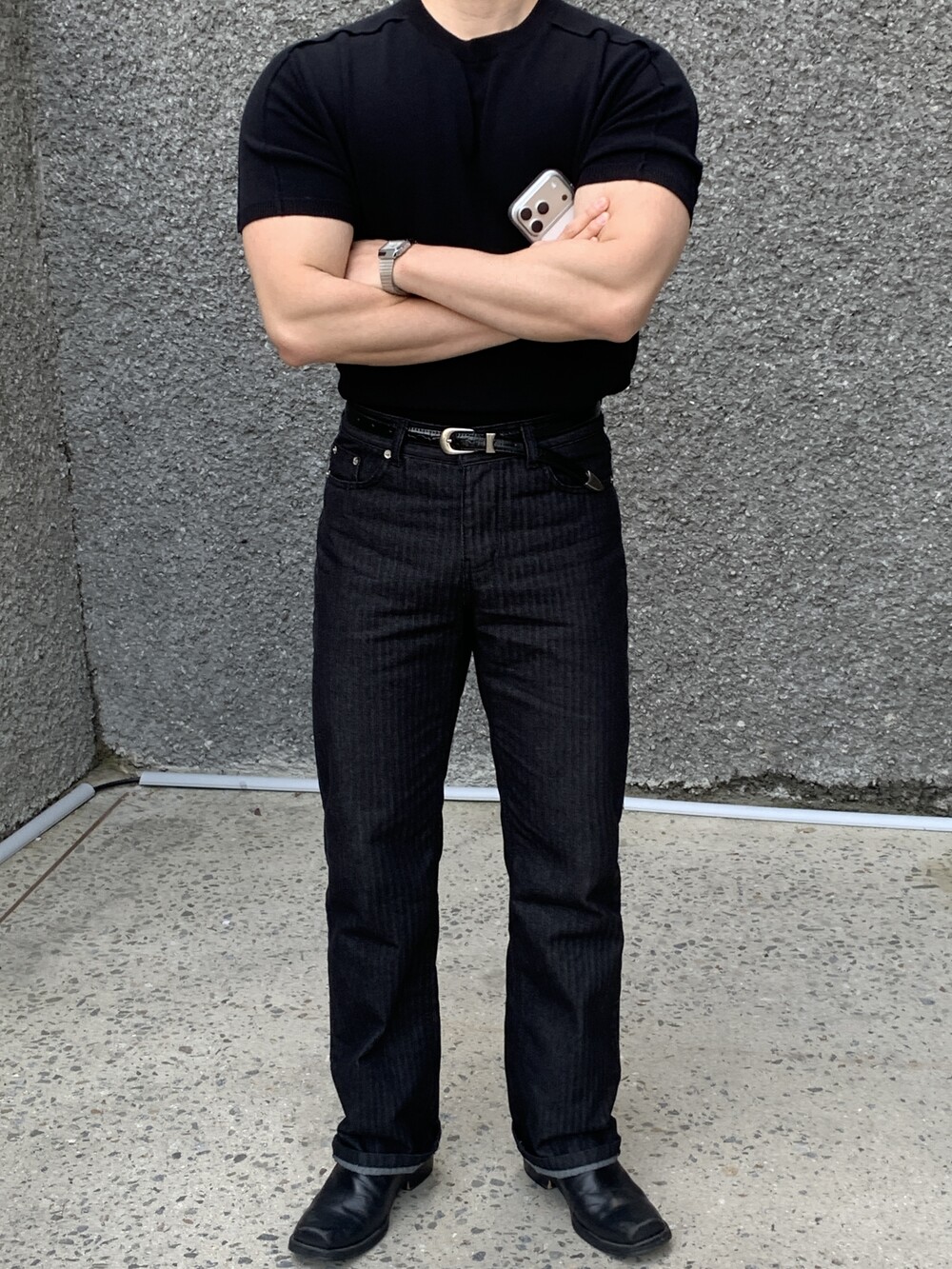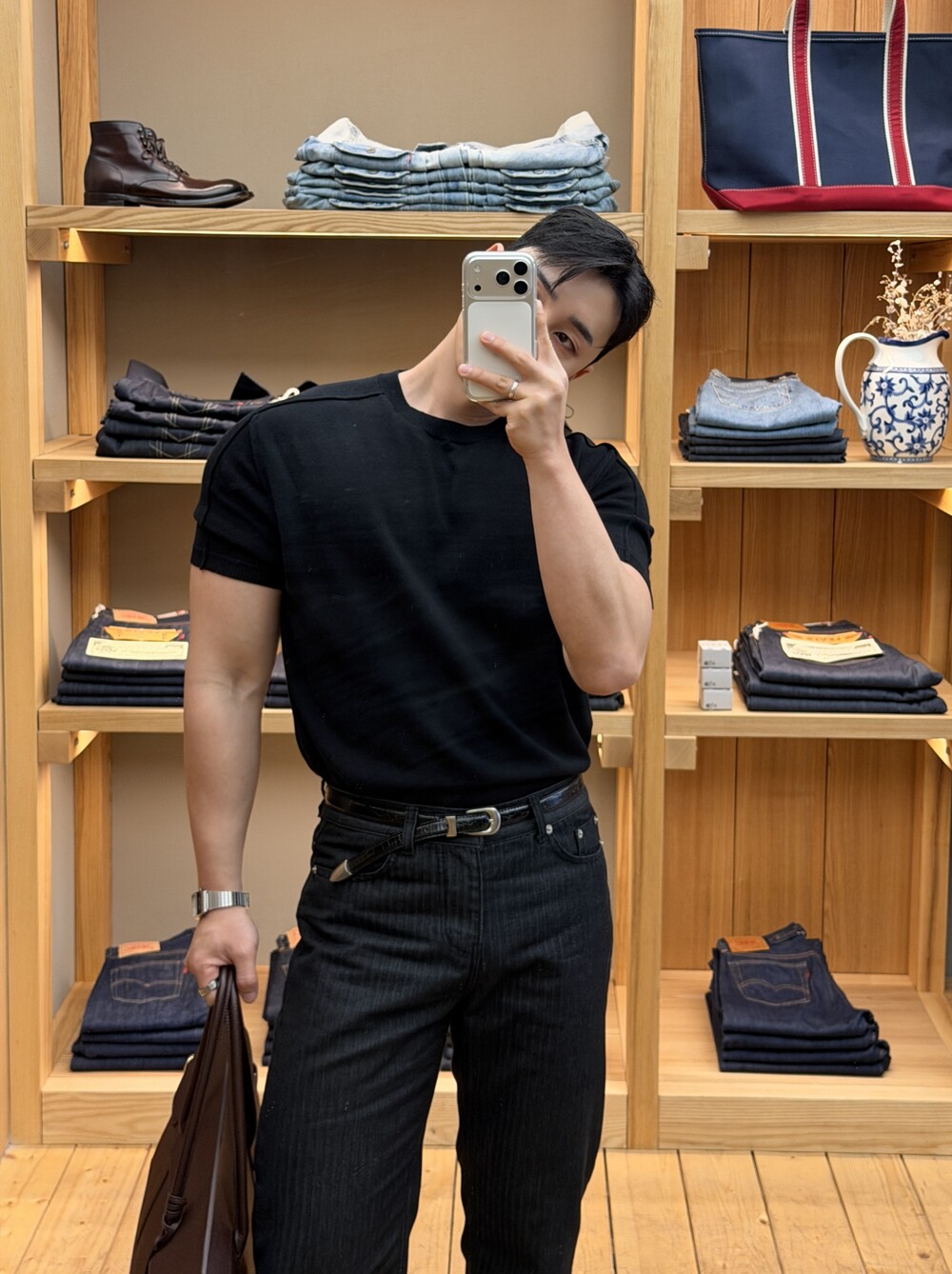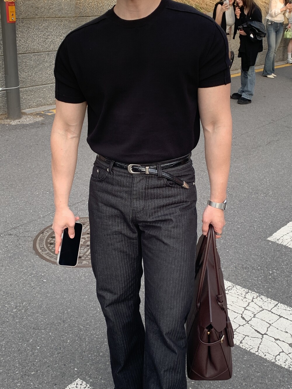 스트레이트로 떨어지는 실루엣이 매력적인 블랙 진