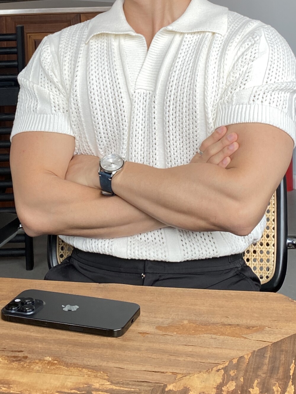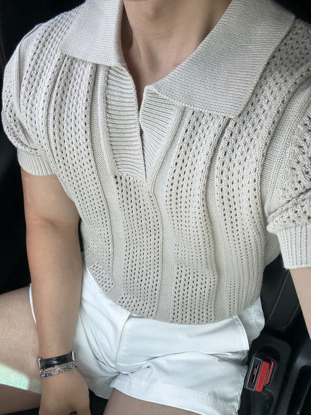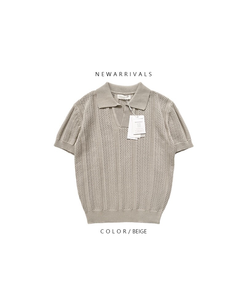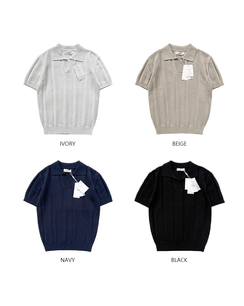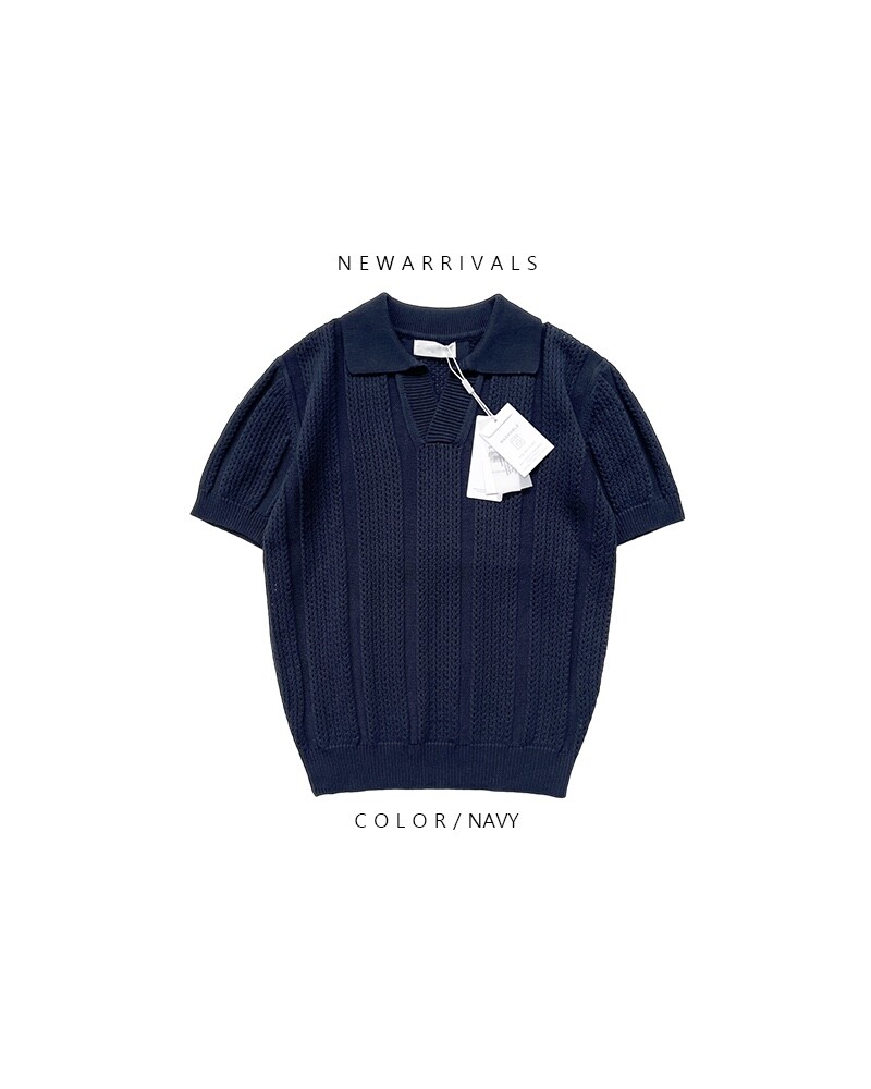 크로쉐 워셔블 스카시 카라 니트 반팔 (4 Color)