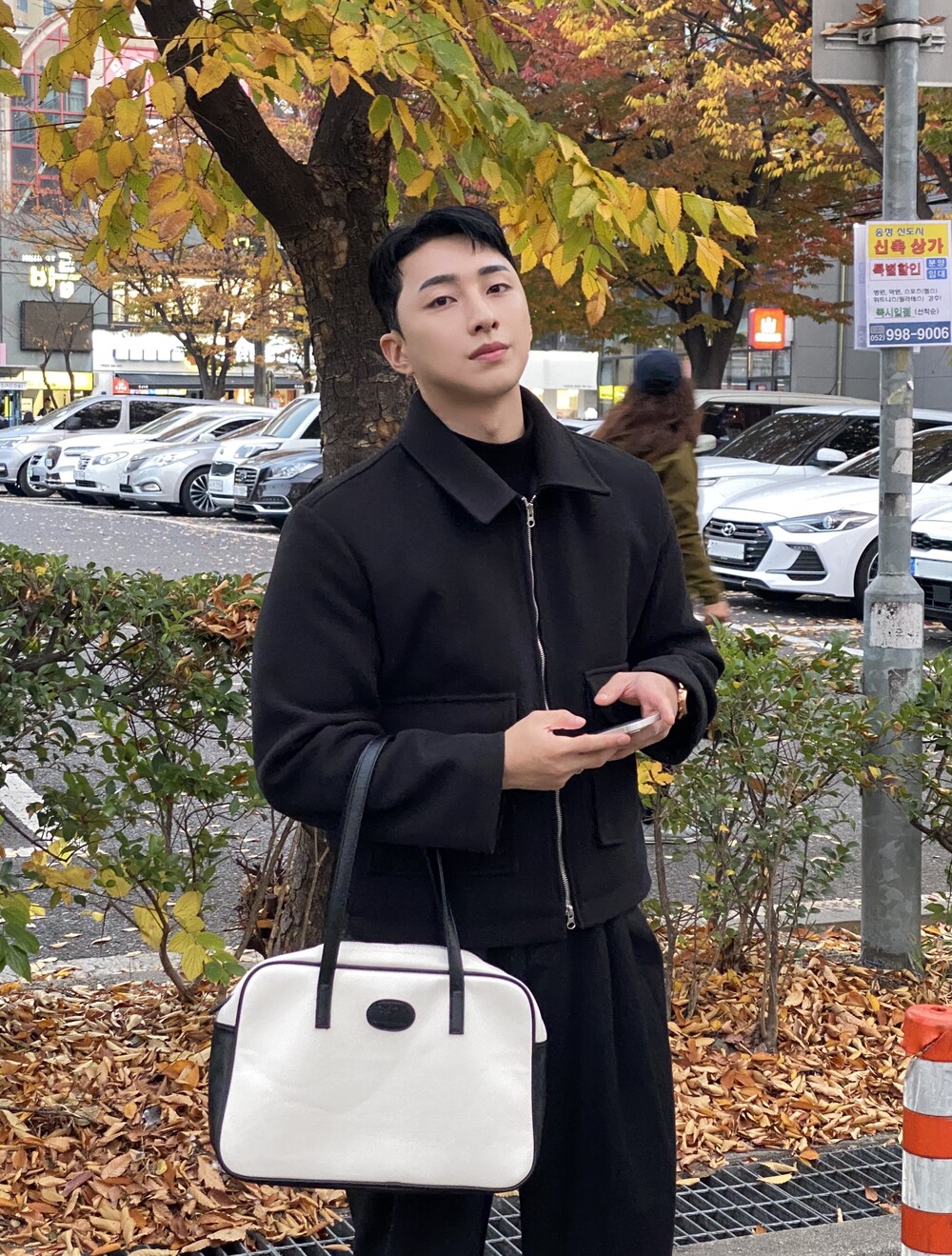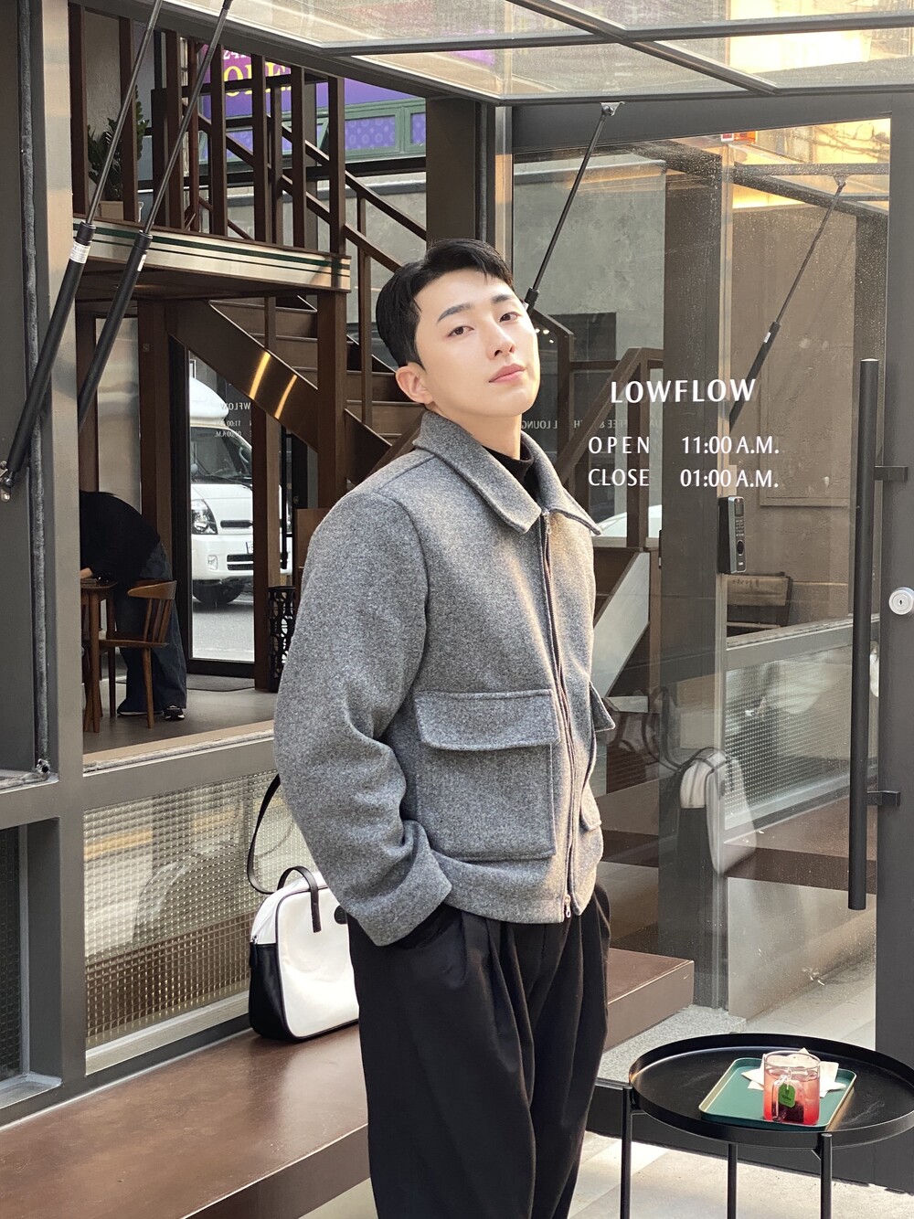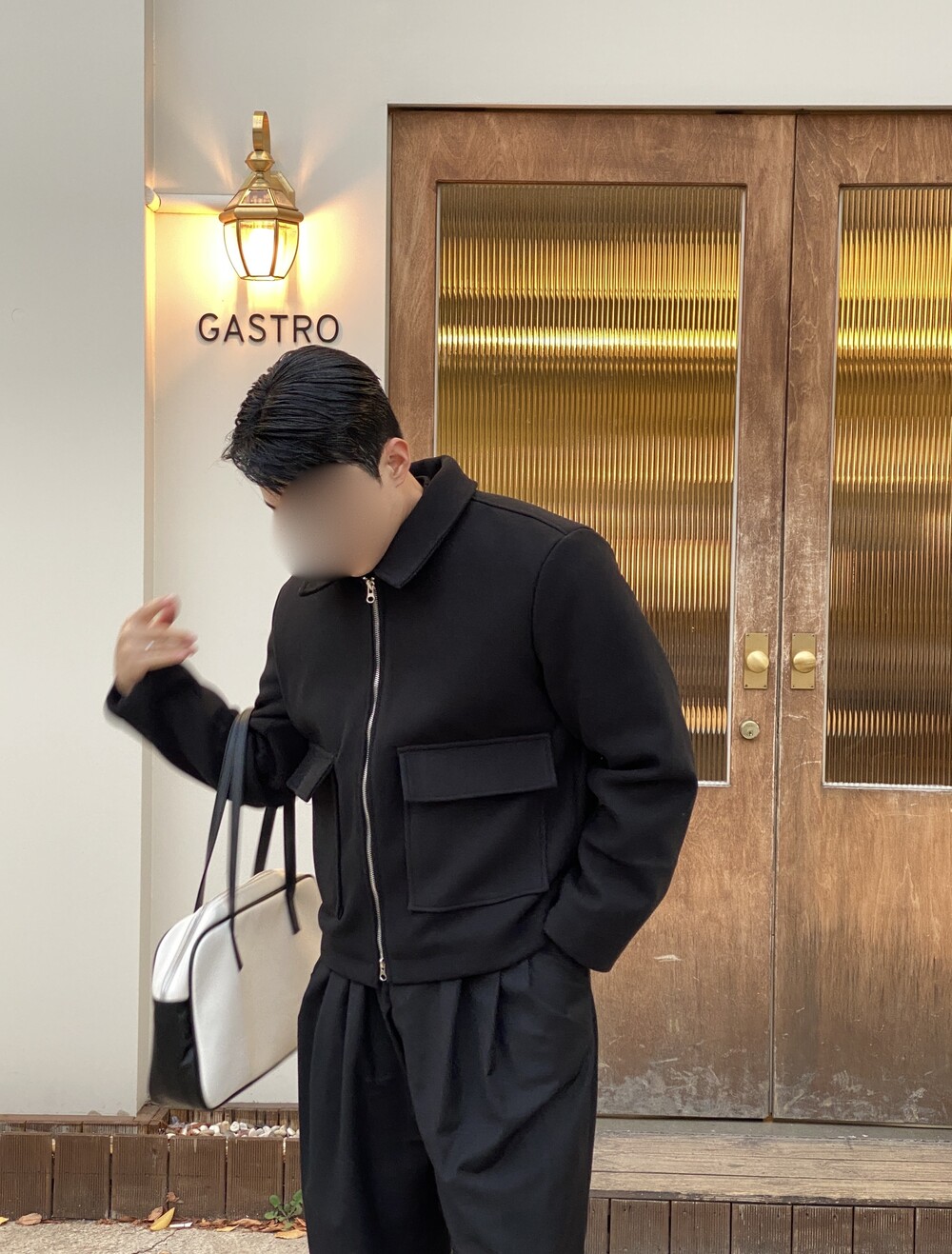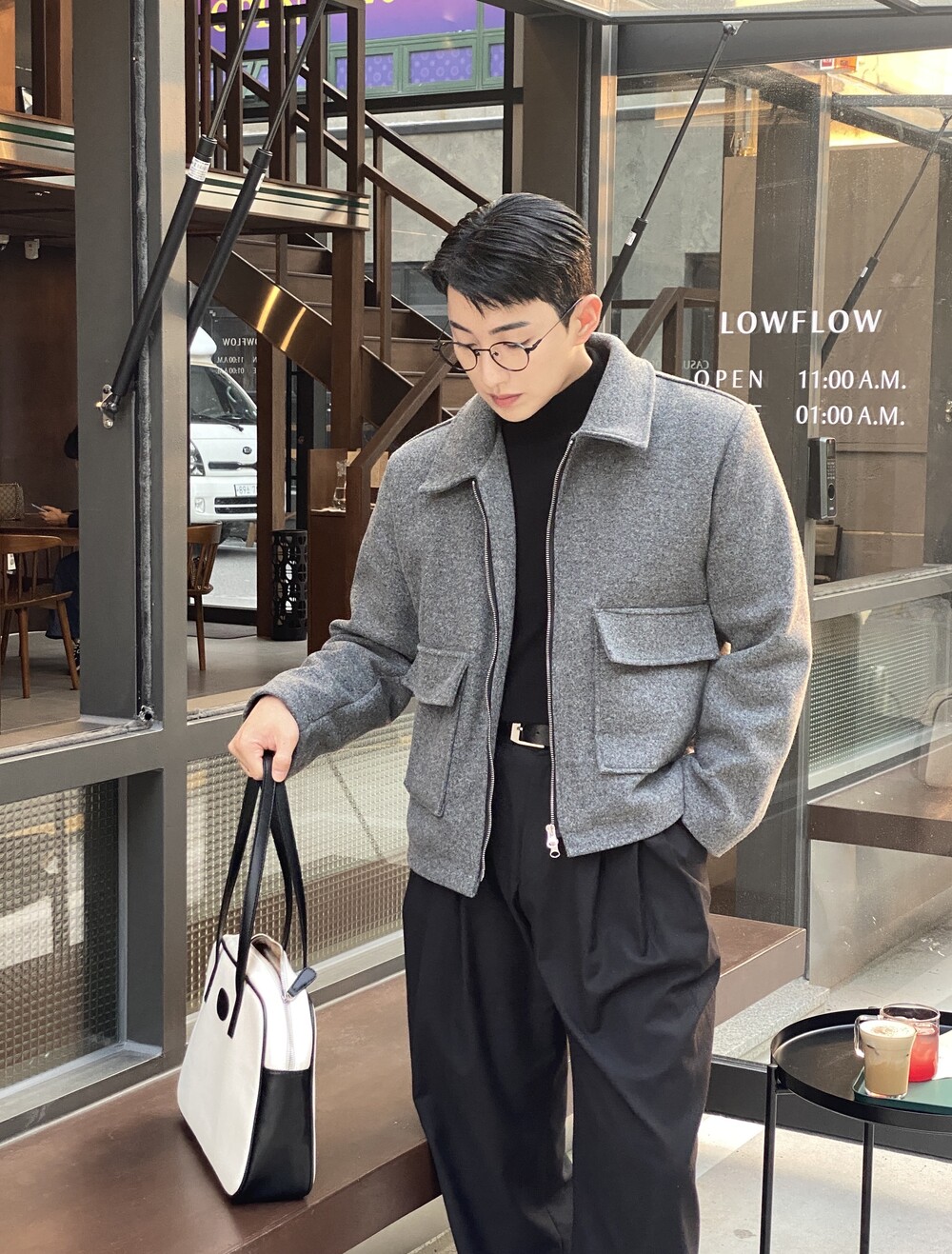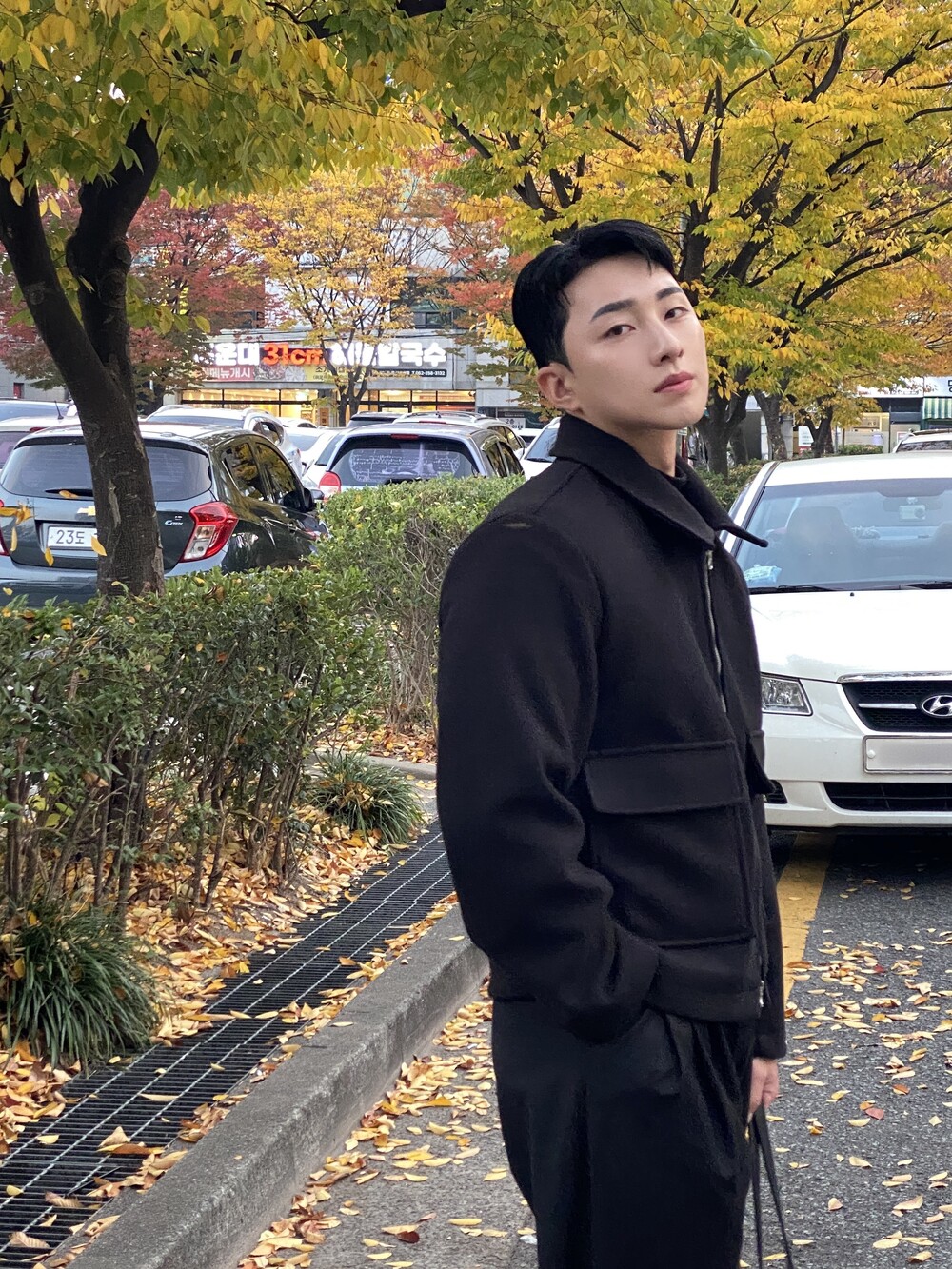 올블랙에 그레이 자켓 걸치면 끝.