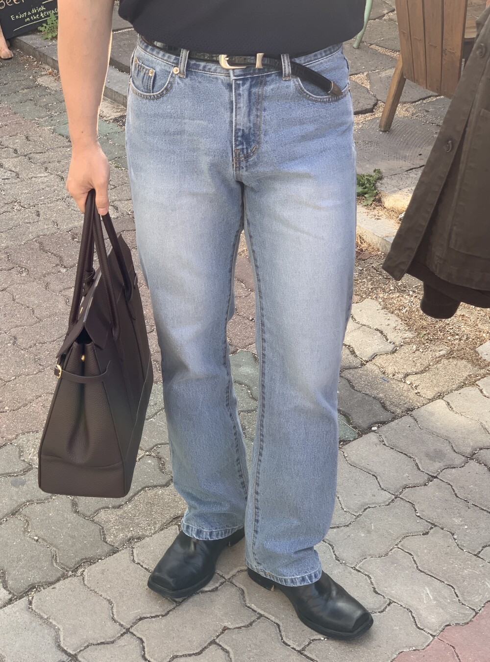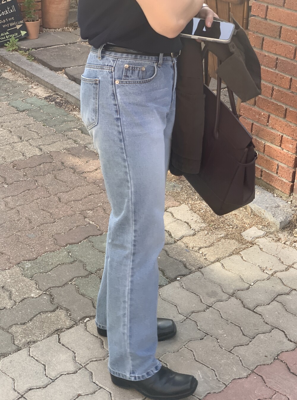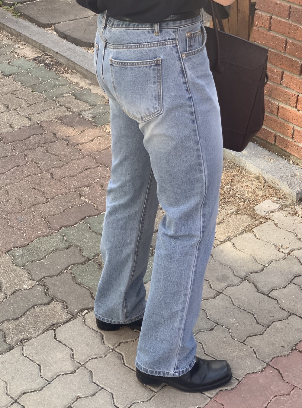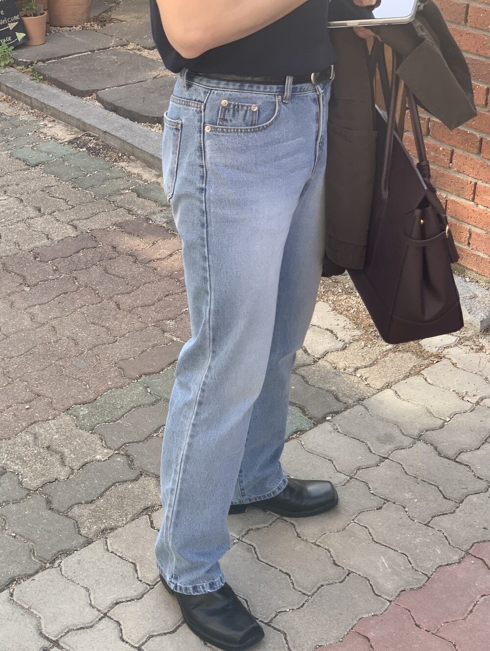 스트레이트로 떨어지는 실루엣이 매력적인 연청 데님