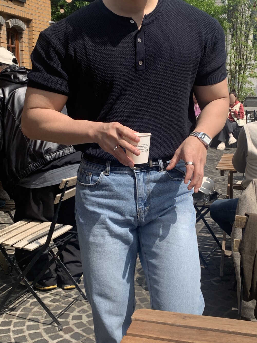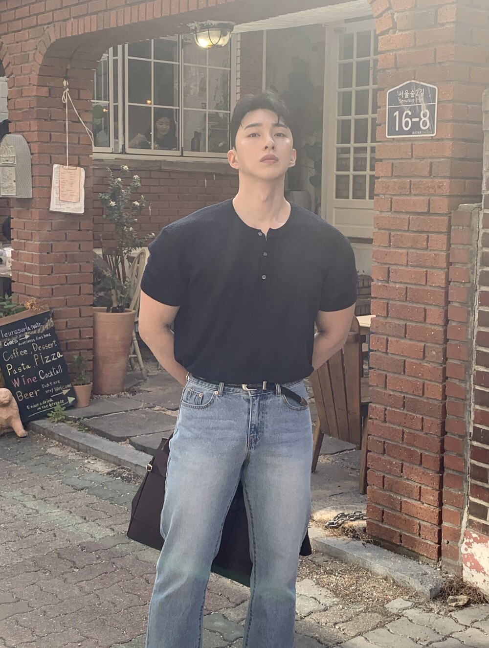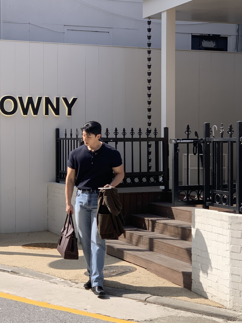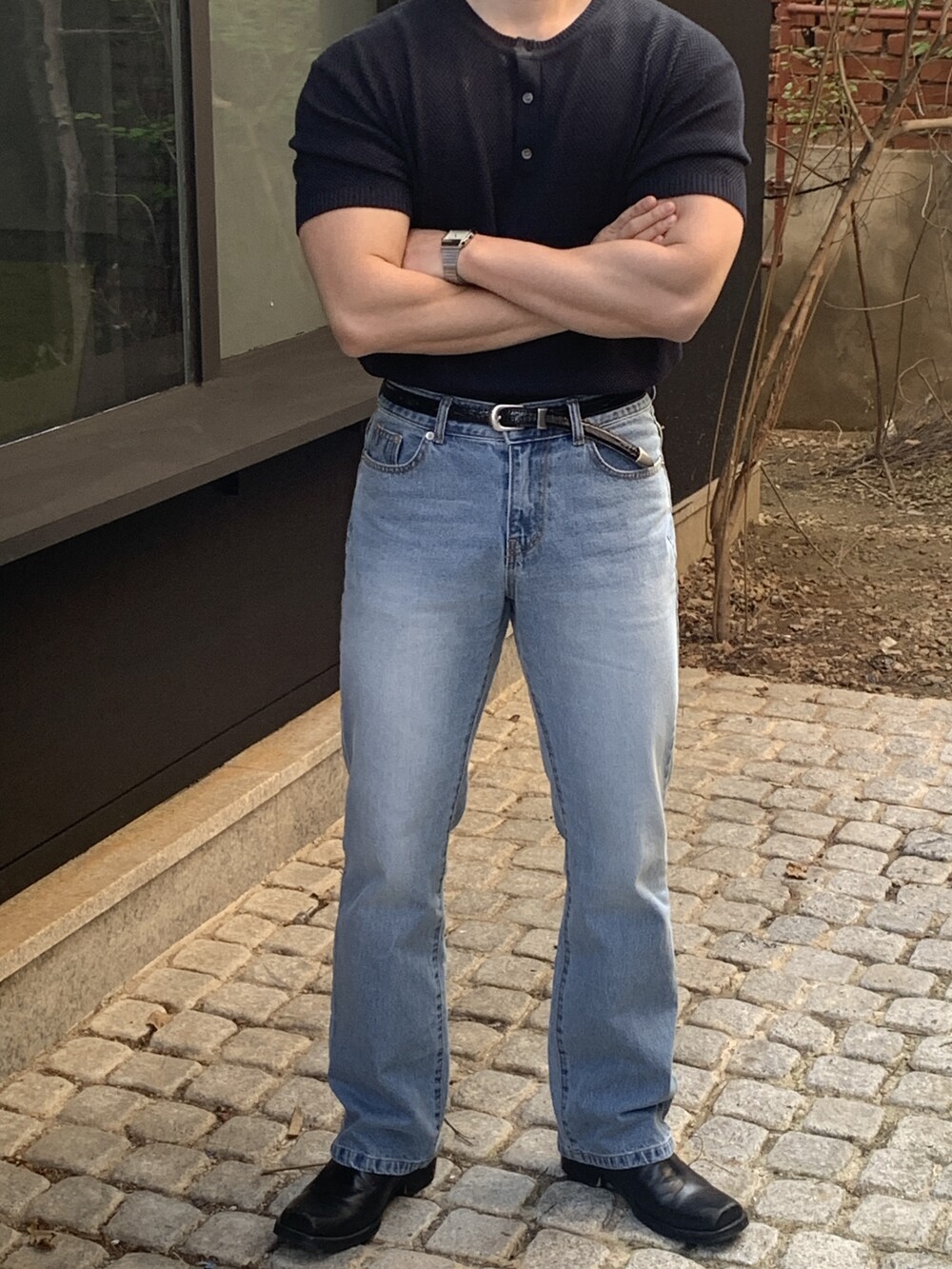 스트레이트로 떨어지는 실루엣이 매력적인 연청 데님
