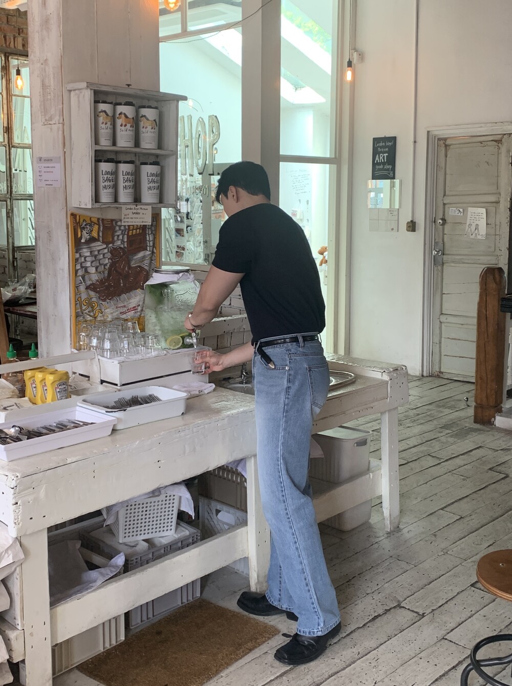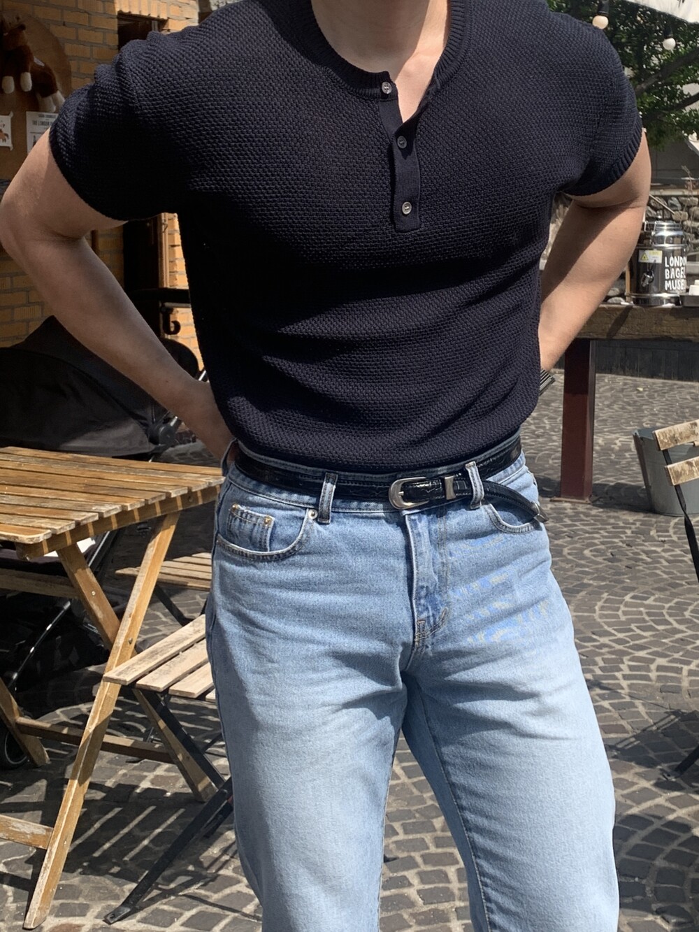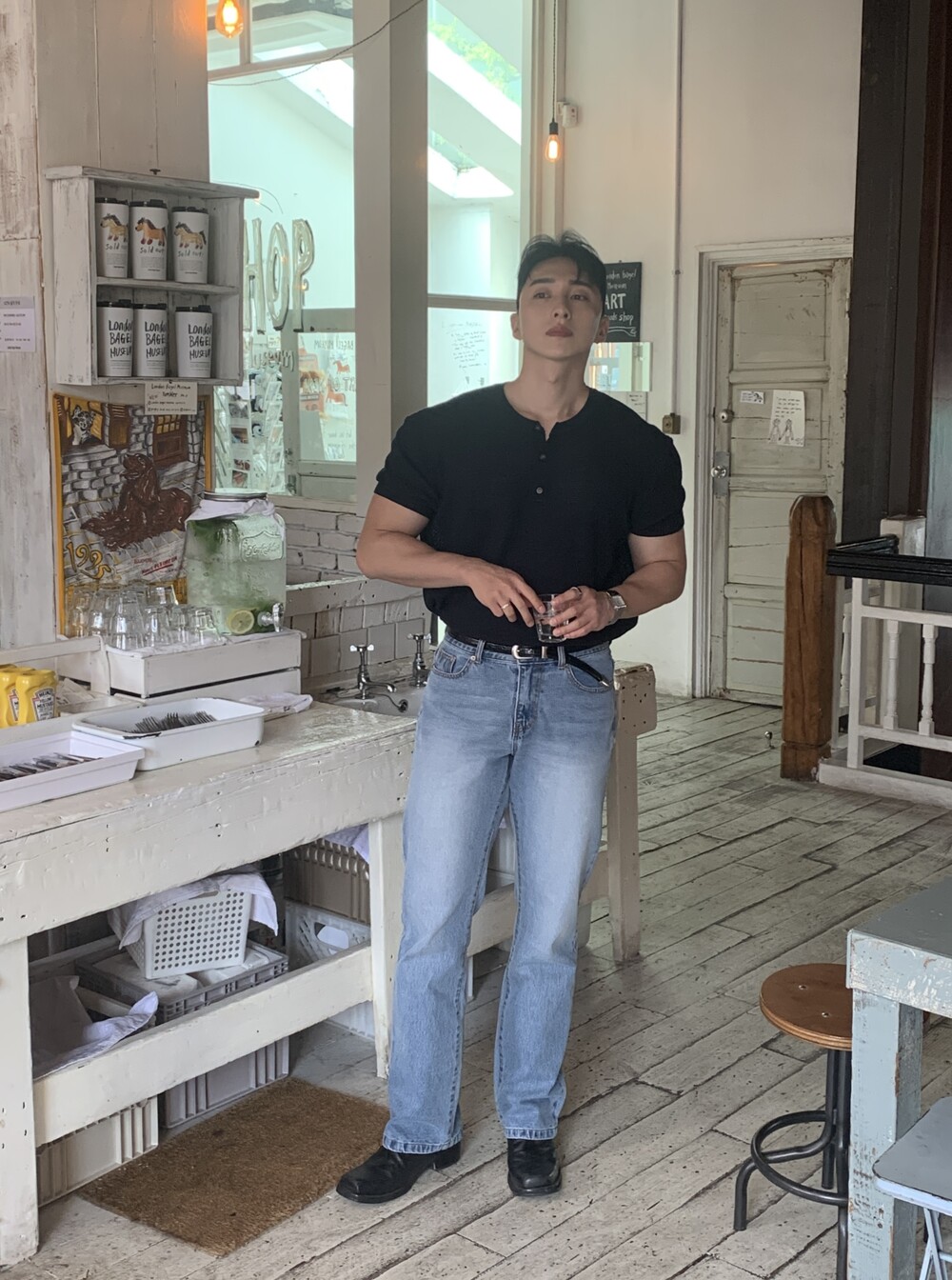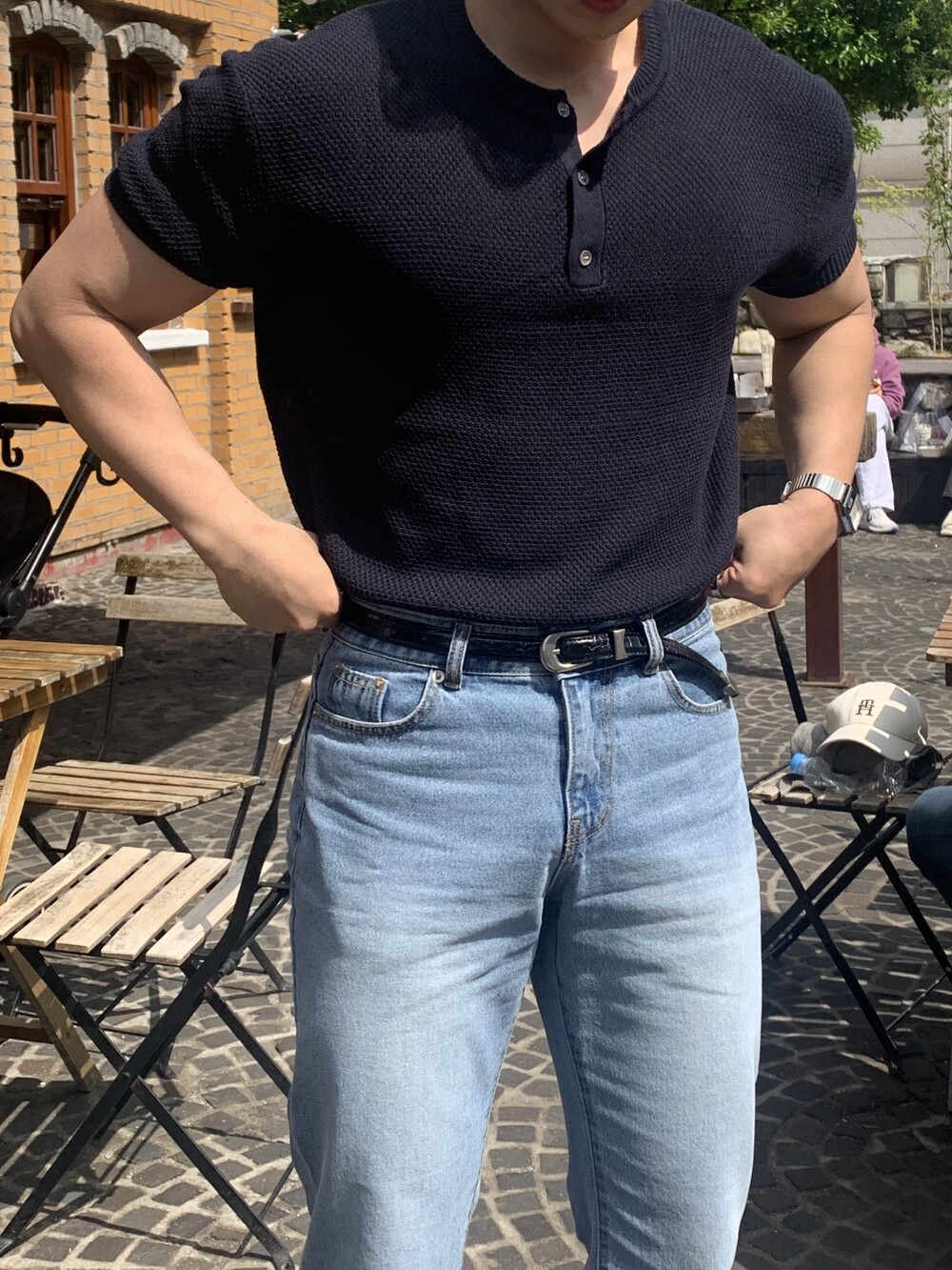 스트레이트로 떨어지는 실루엣이 매력적인 연청 데님
