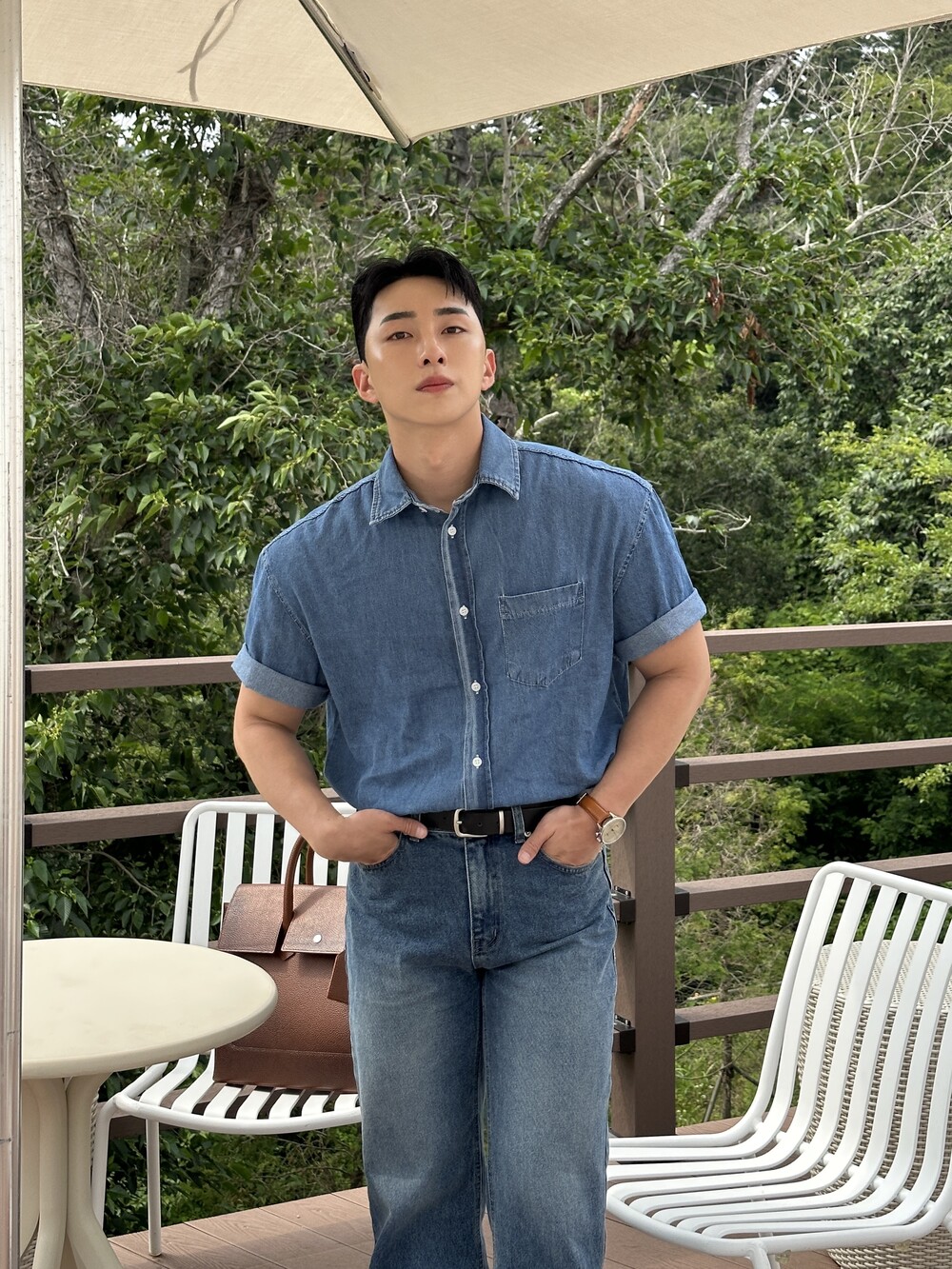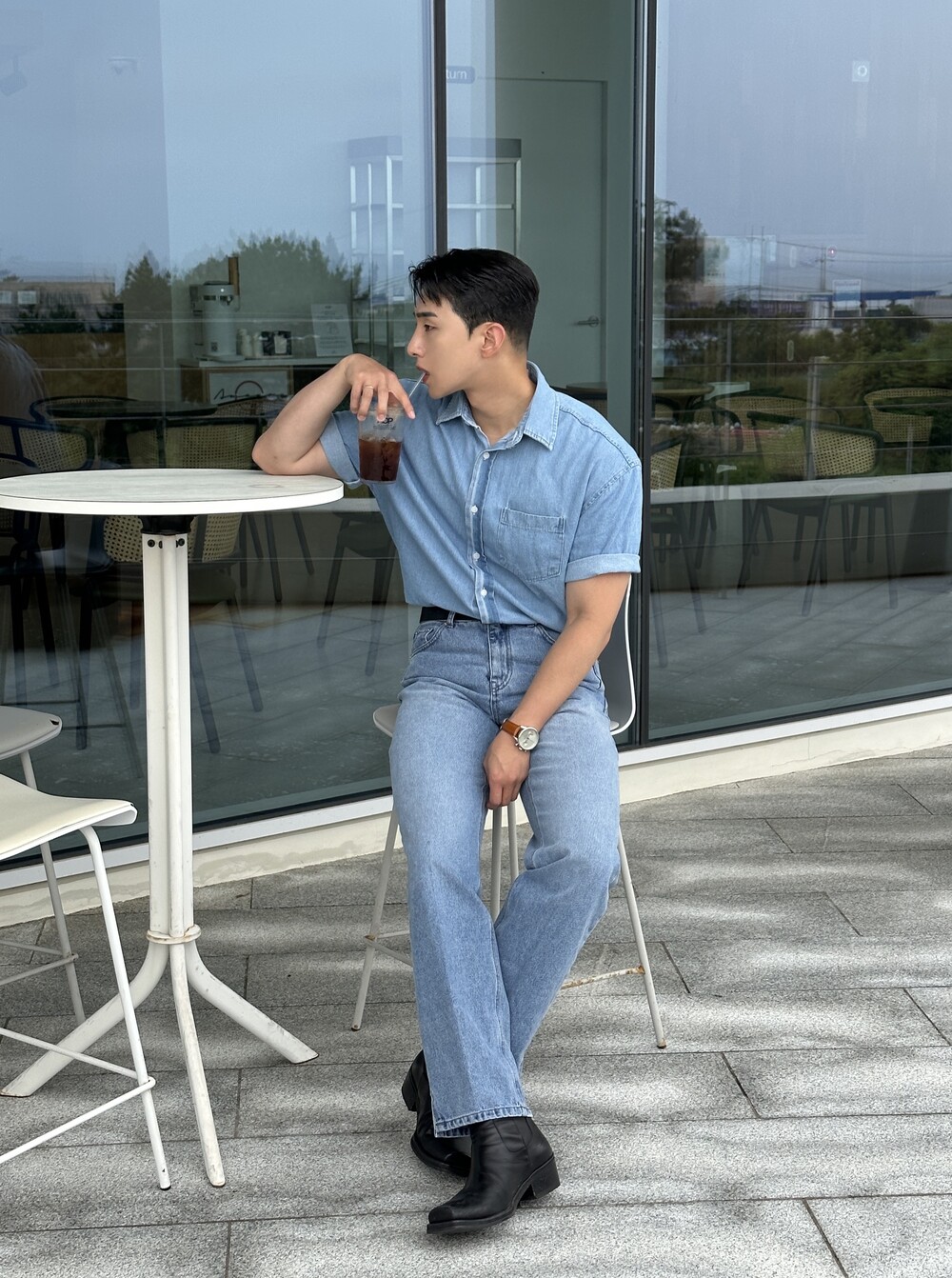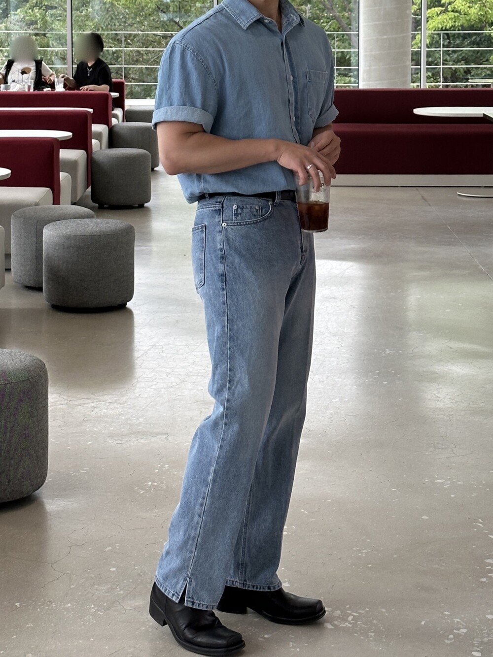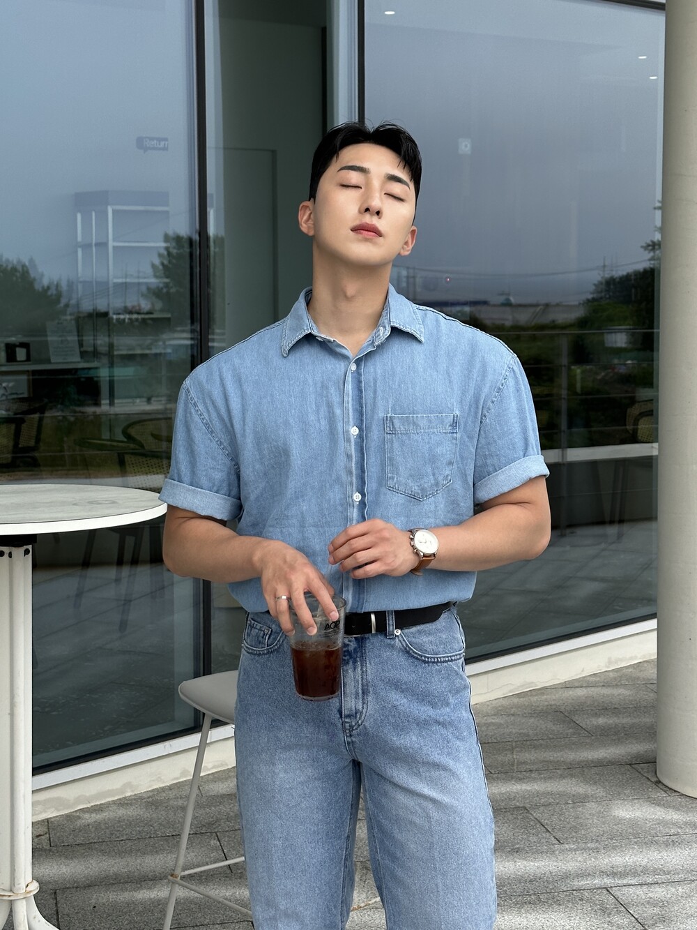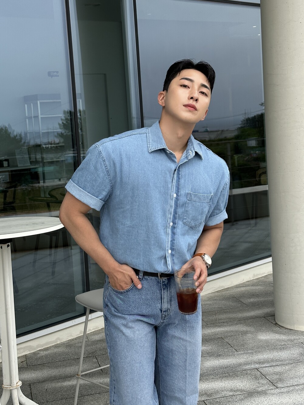 -편하게 데일리로 입기에 좋은 반팔 데님 셔츠