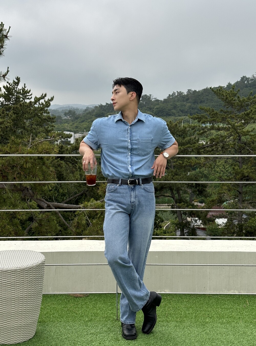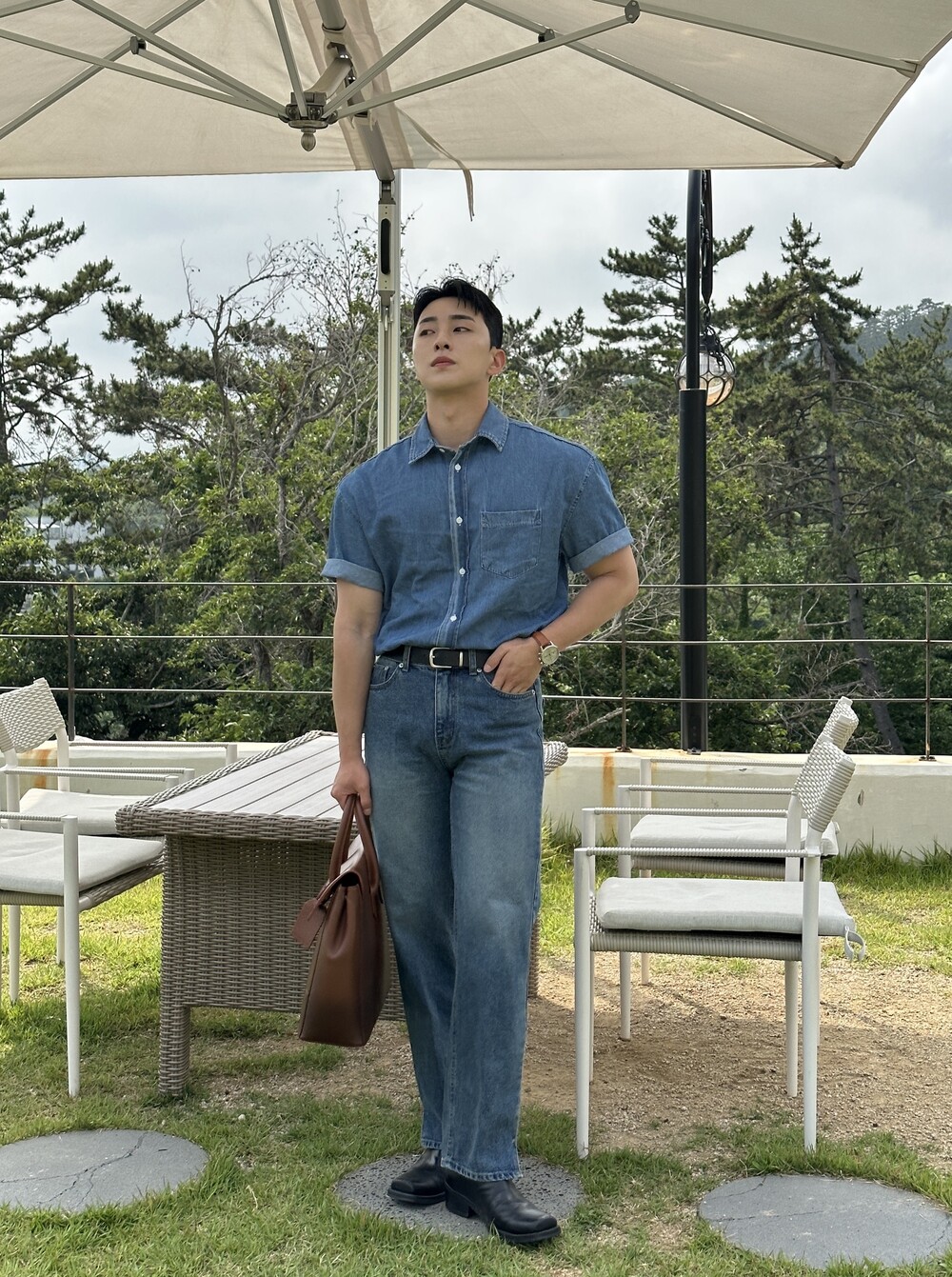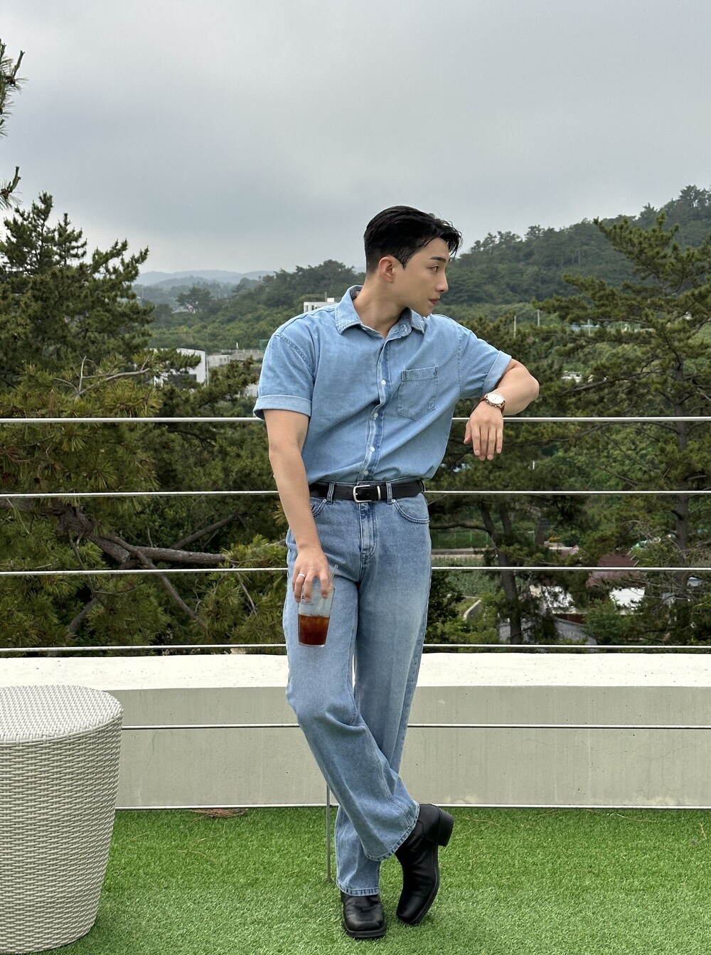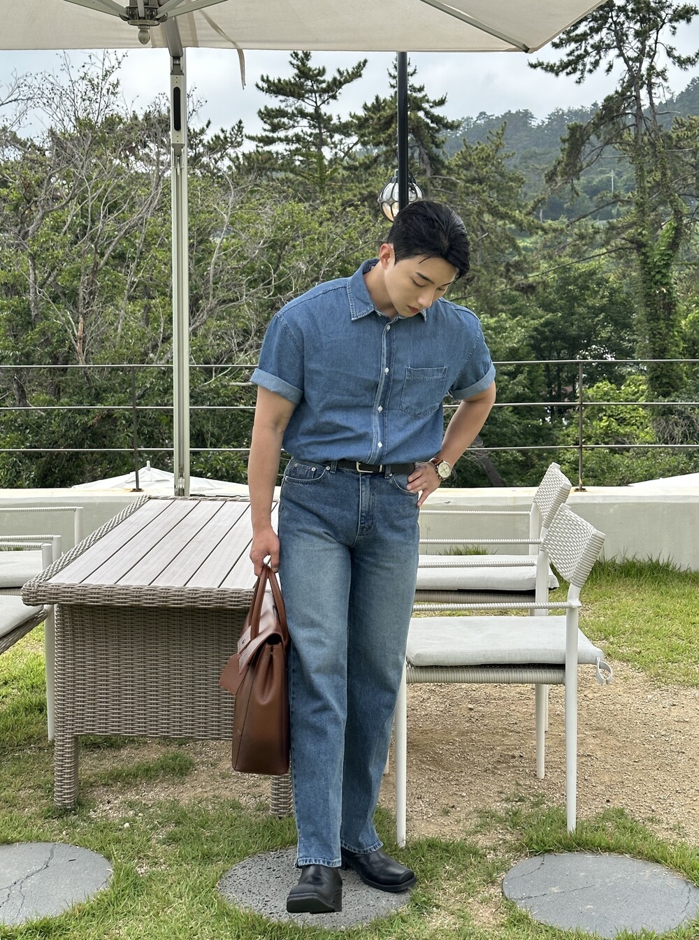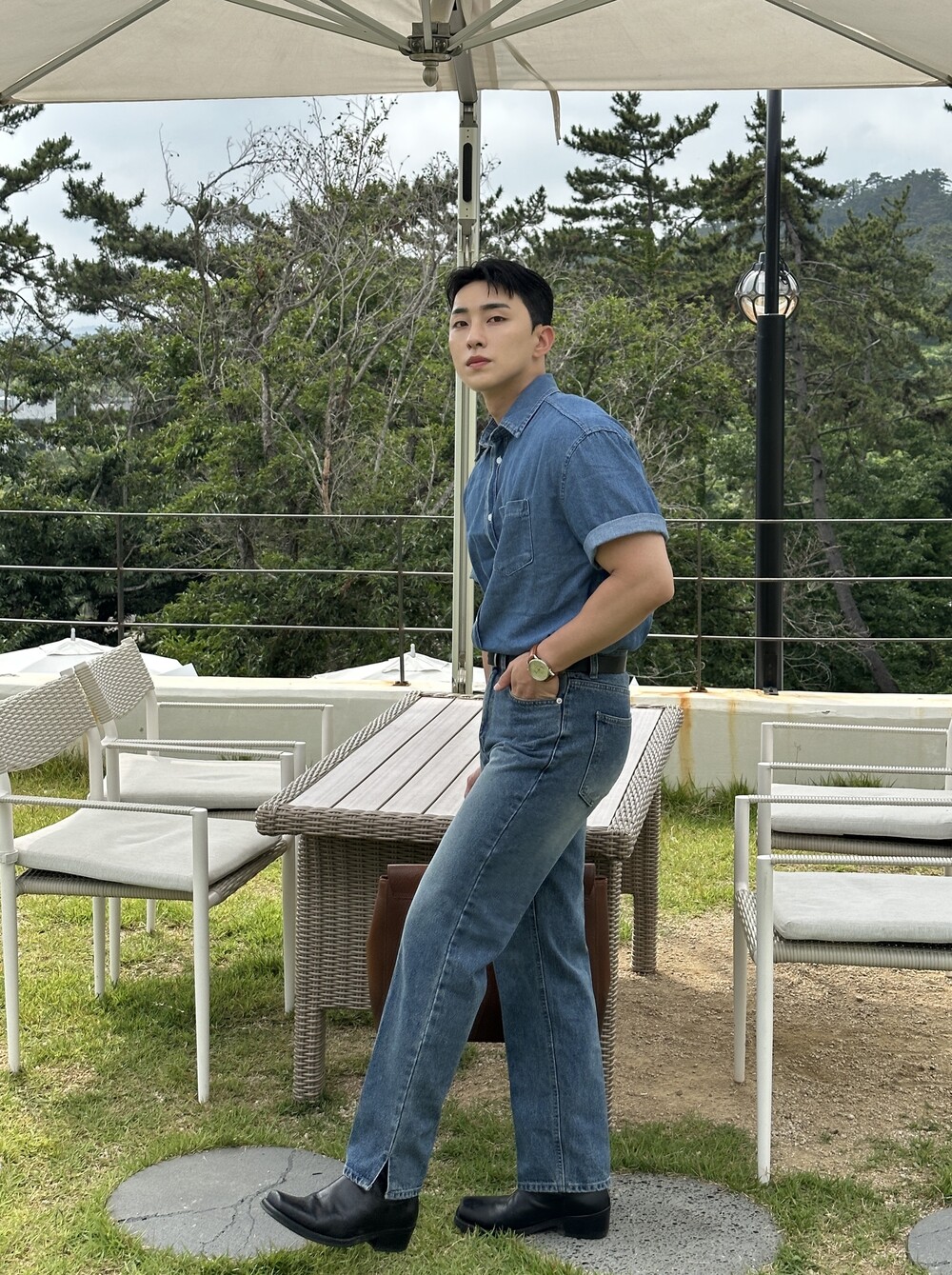 -편하게 데일리로 입기에 좋은 반팔 데님 셔츠