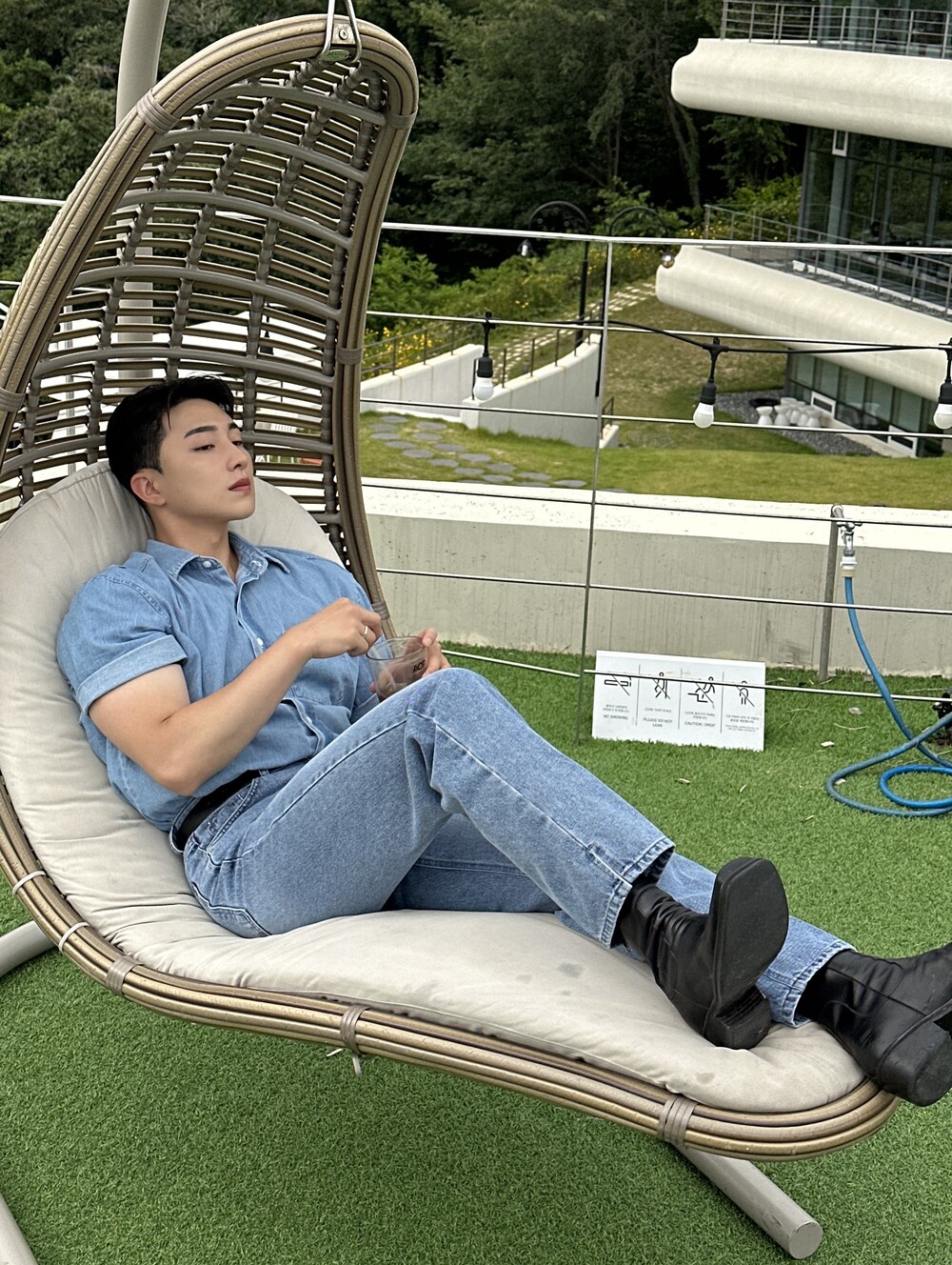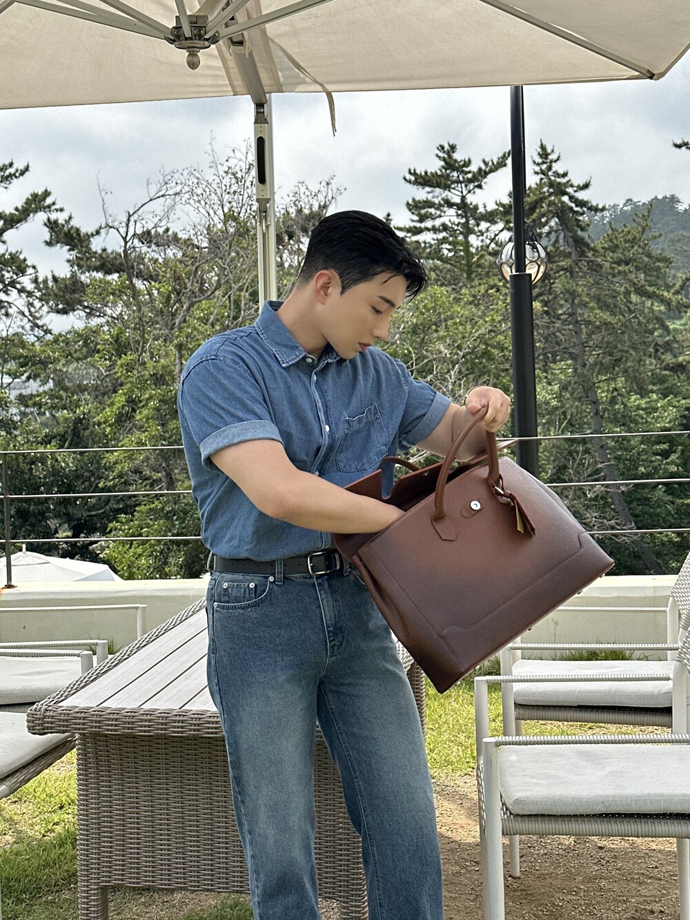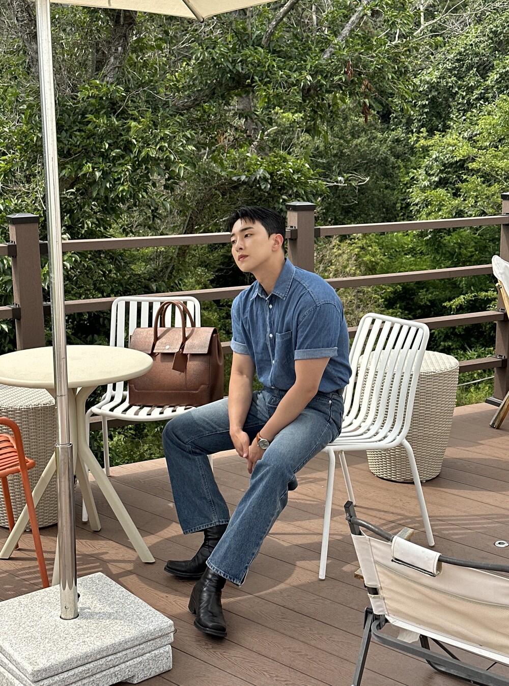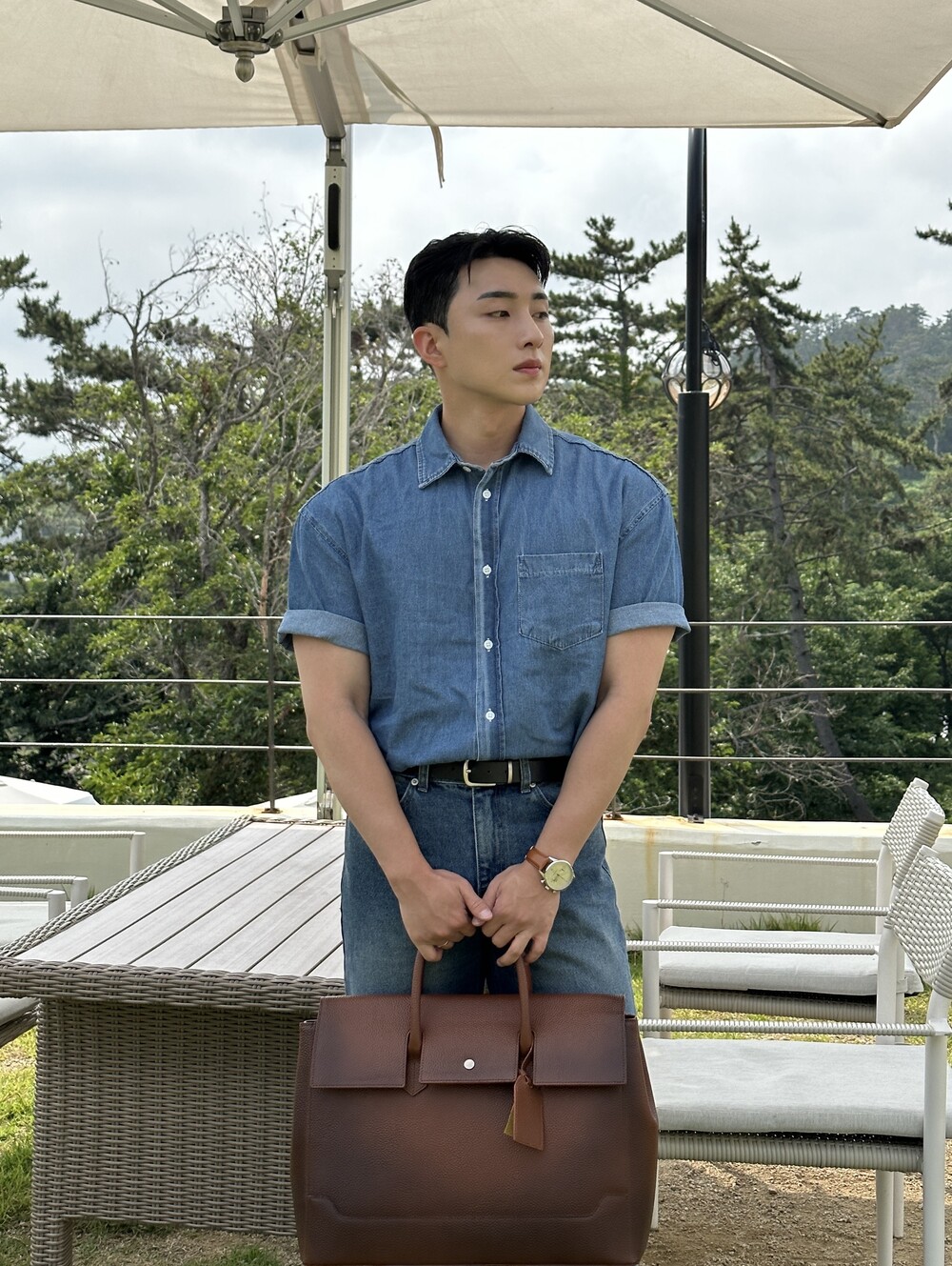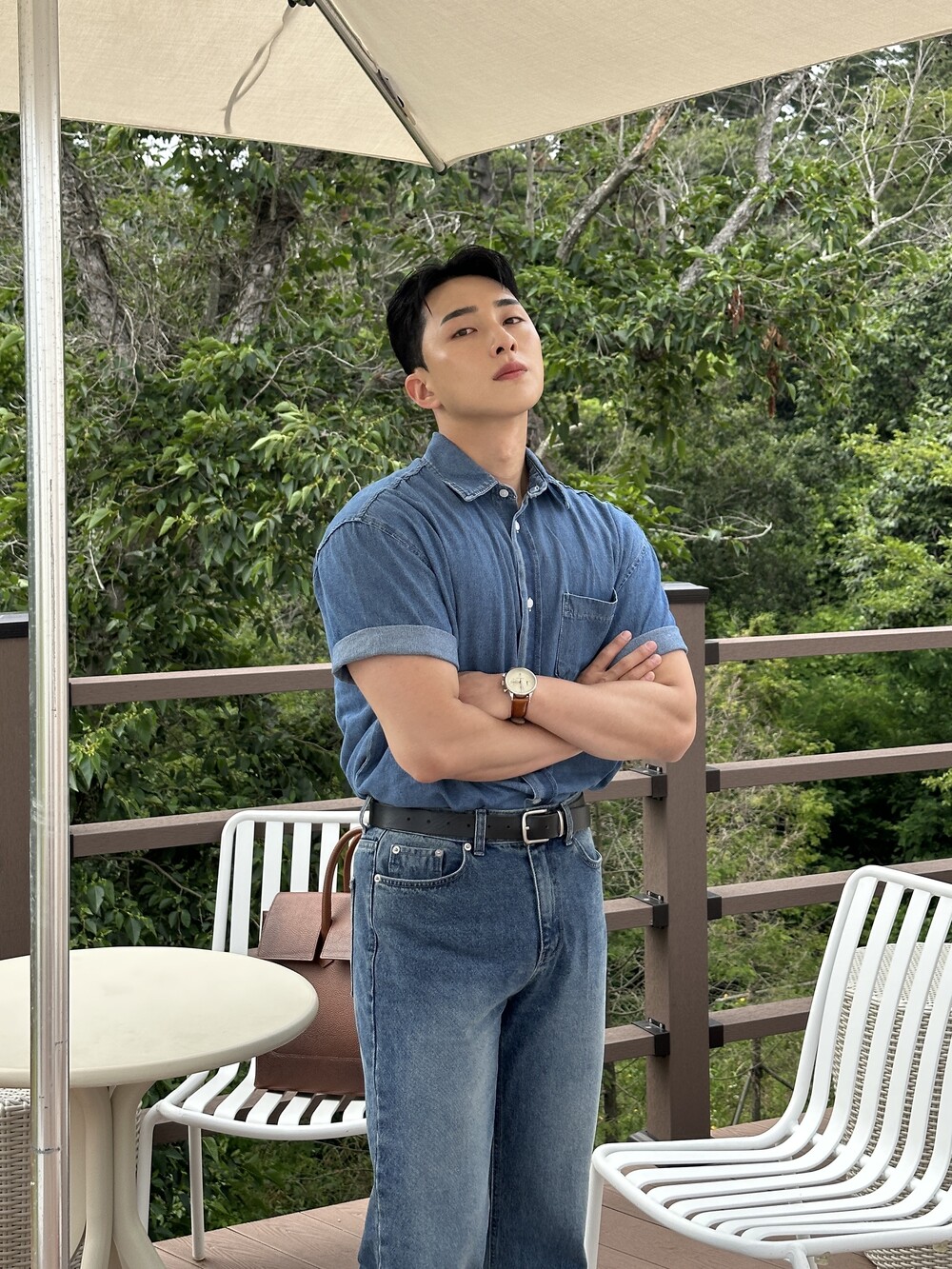 -편하게 데일리로 입기에 좋은 반팔 데님 셔츠