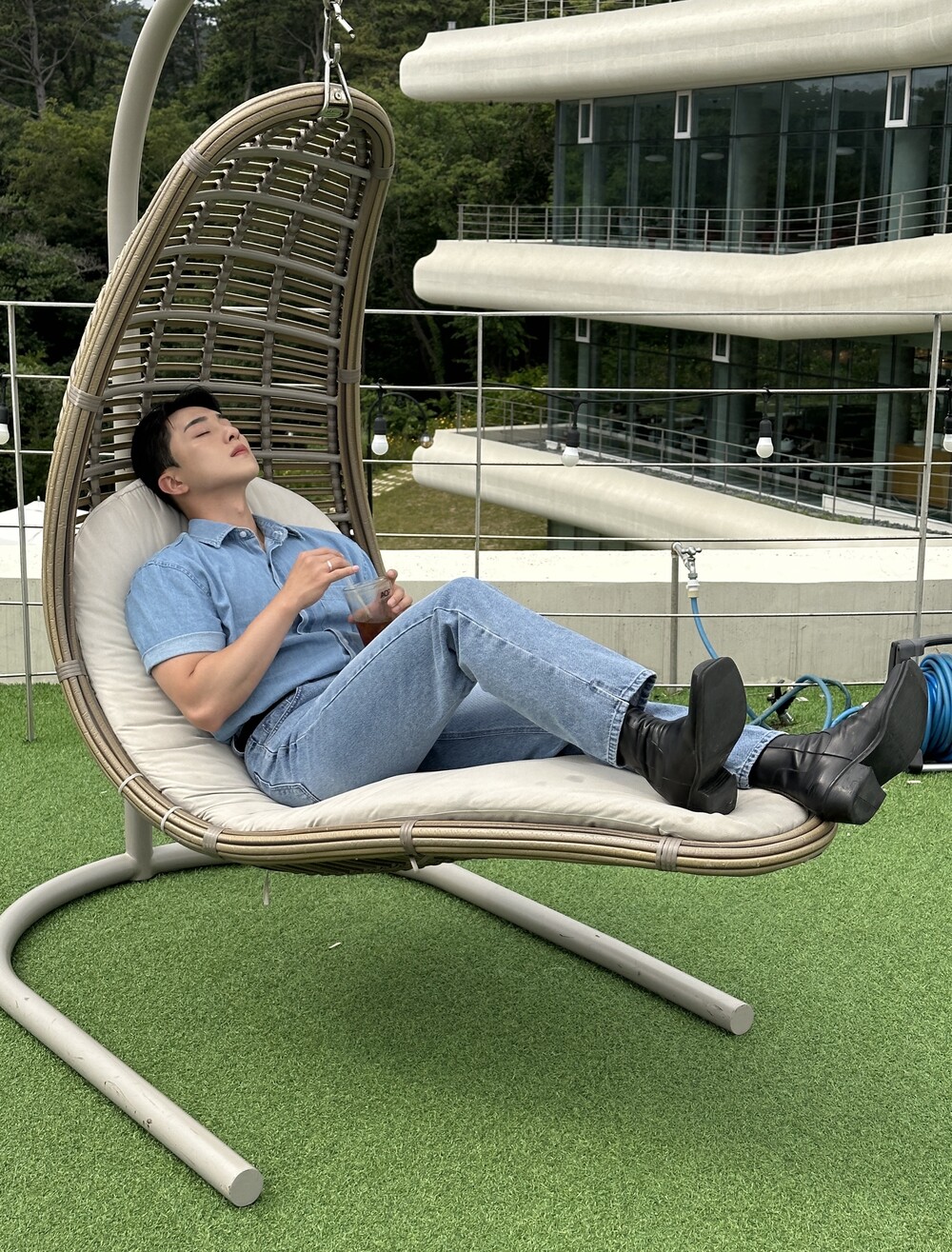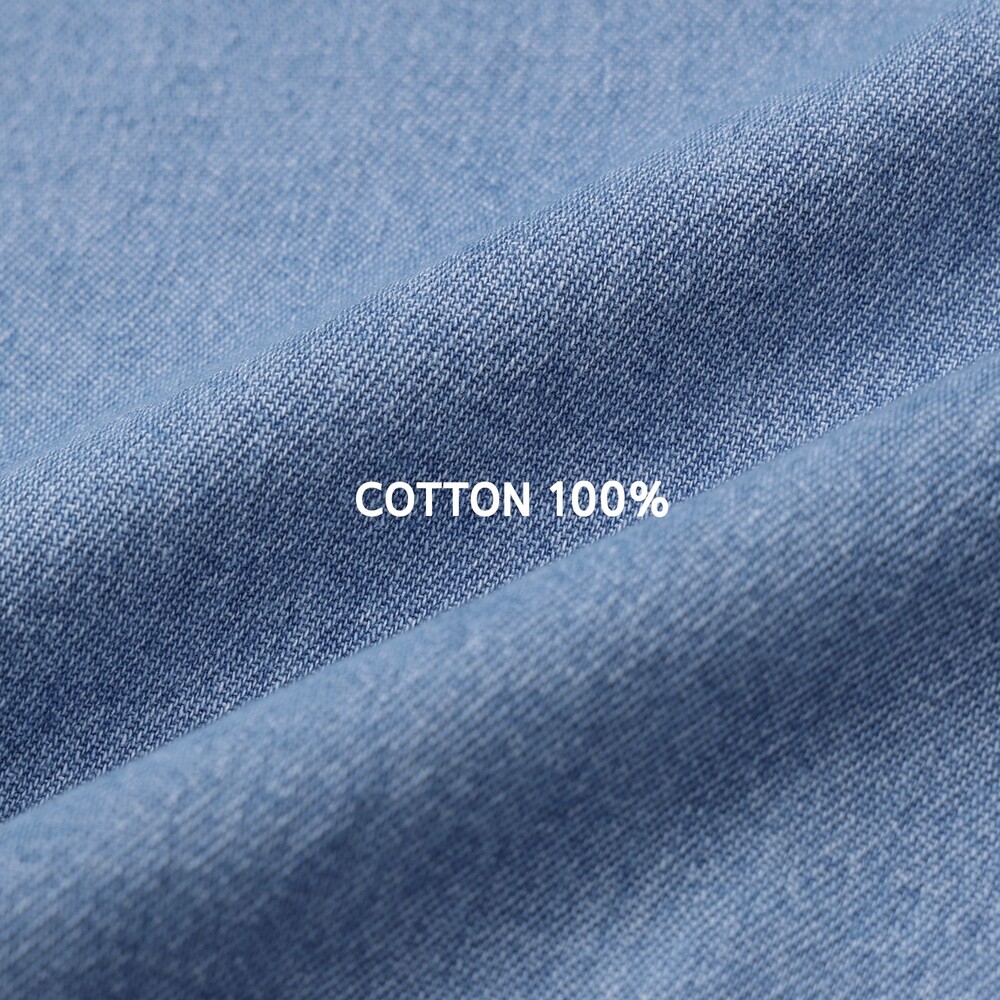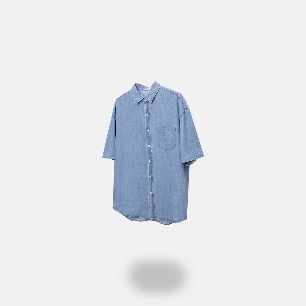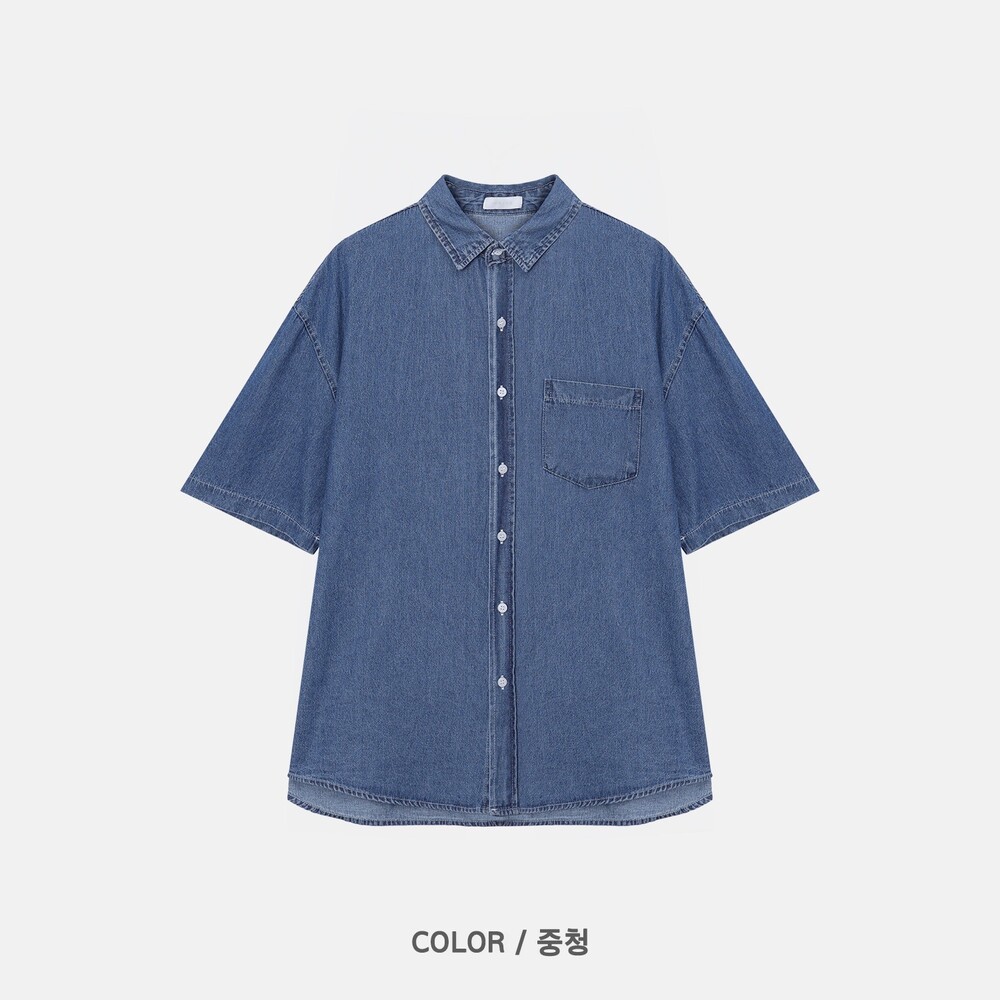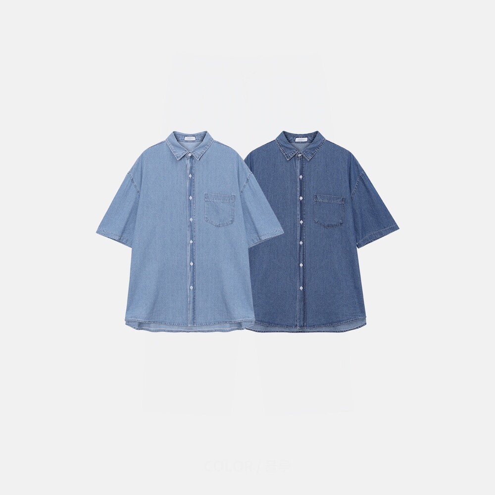 -트렌디한 세미오버핏으로 제작된 반팔 데님 셔츠