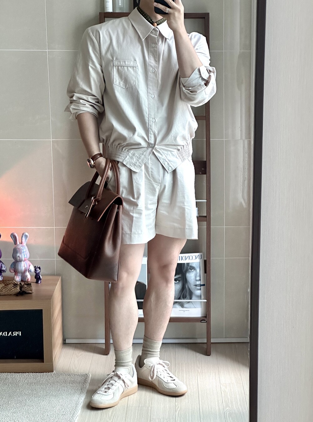 -가볍고 얇지만 탄탄한 옥스포드 코튼 소재로 제작된 셔츠 자켓 셋업