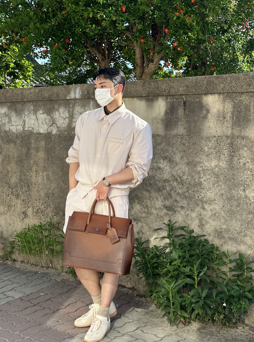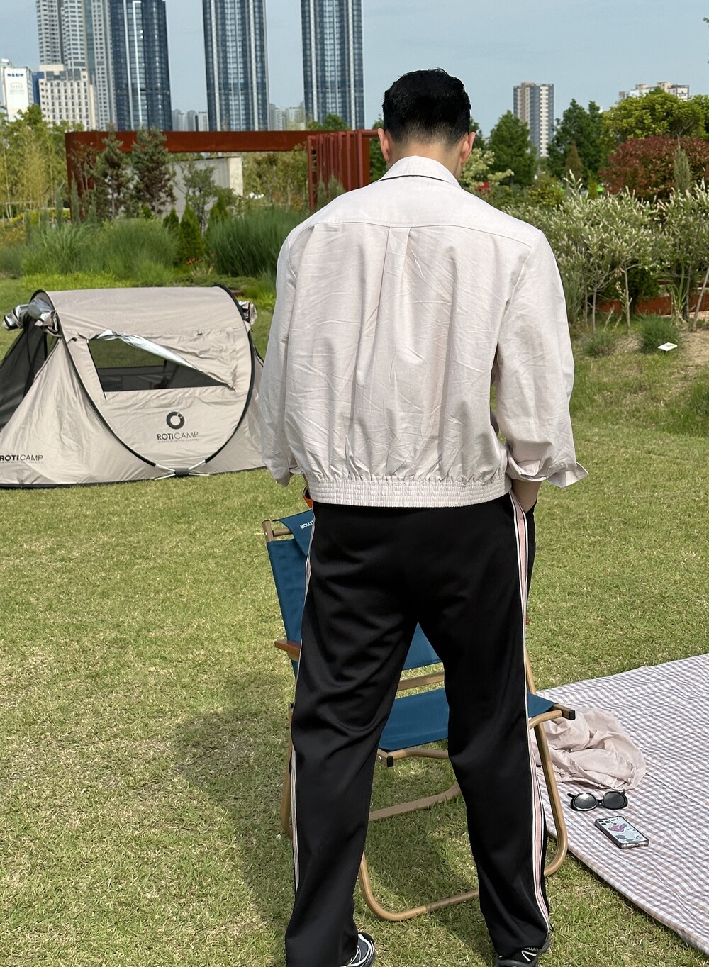 -여유있는 실루엣과 시원한 소재감으로 여름에 착용 가능한 셋업 자켓